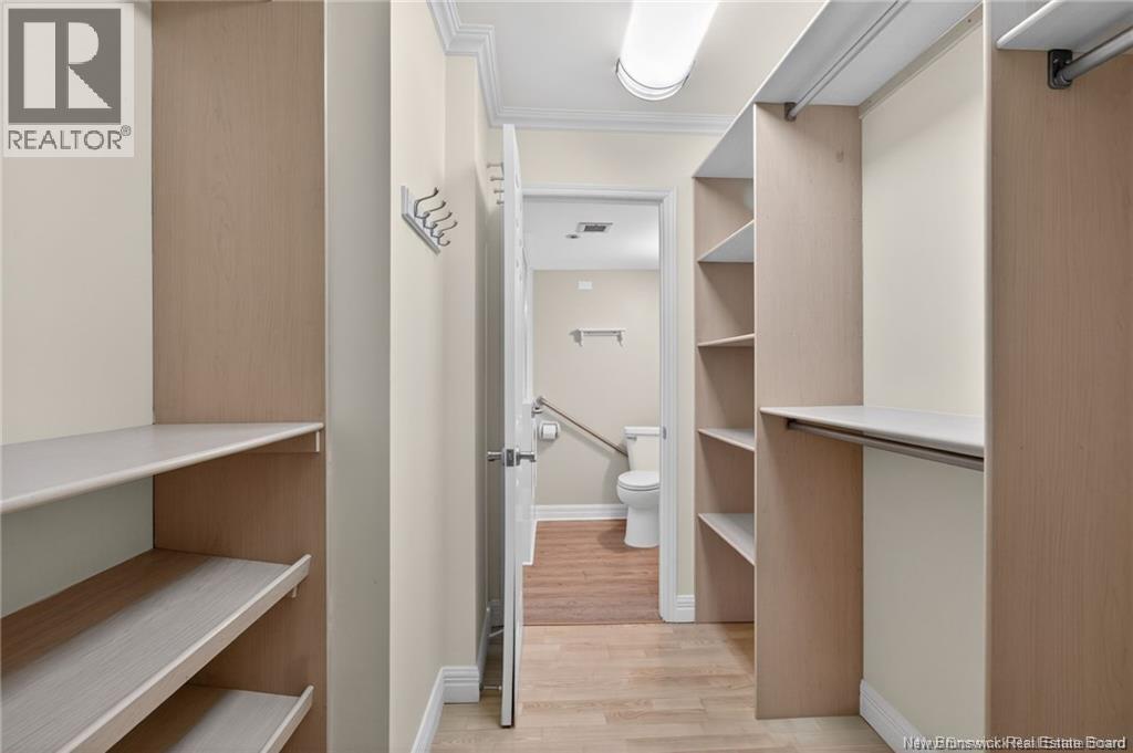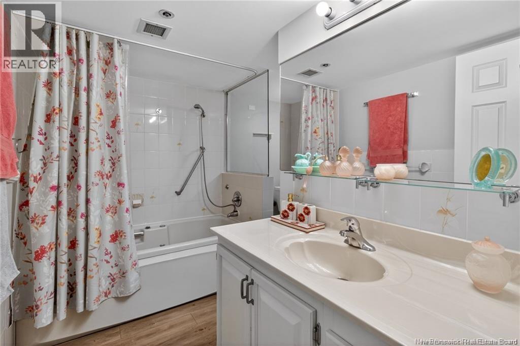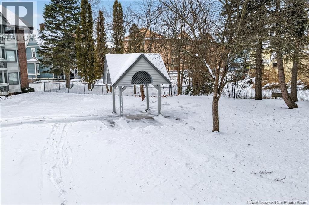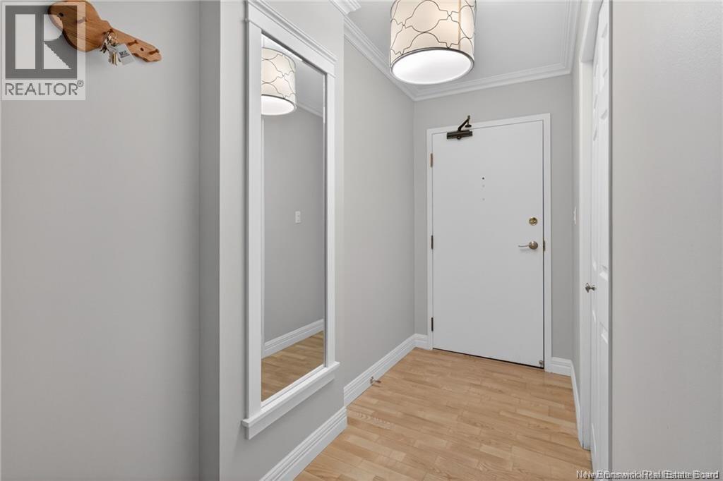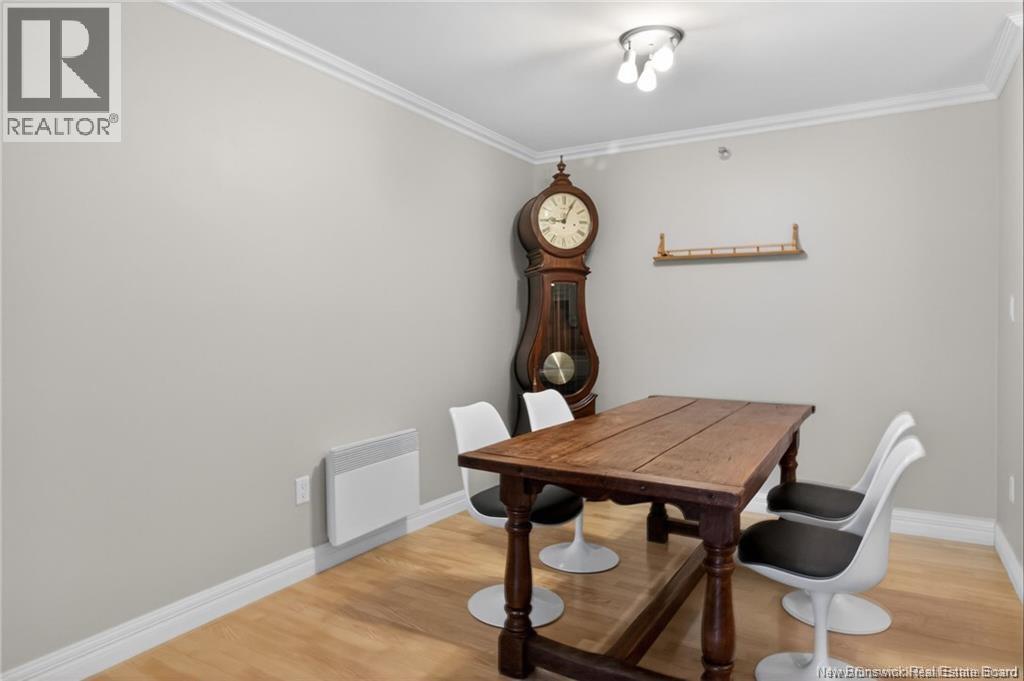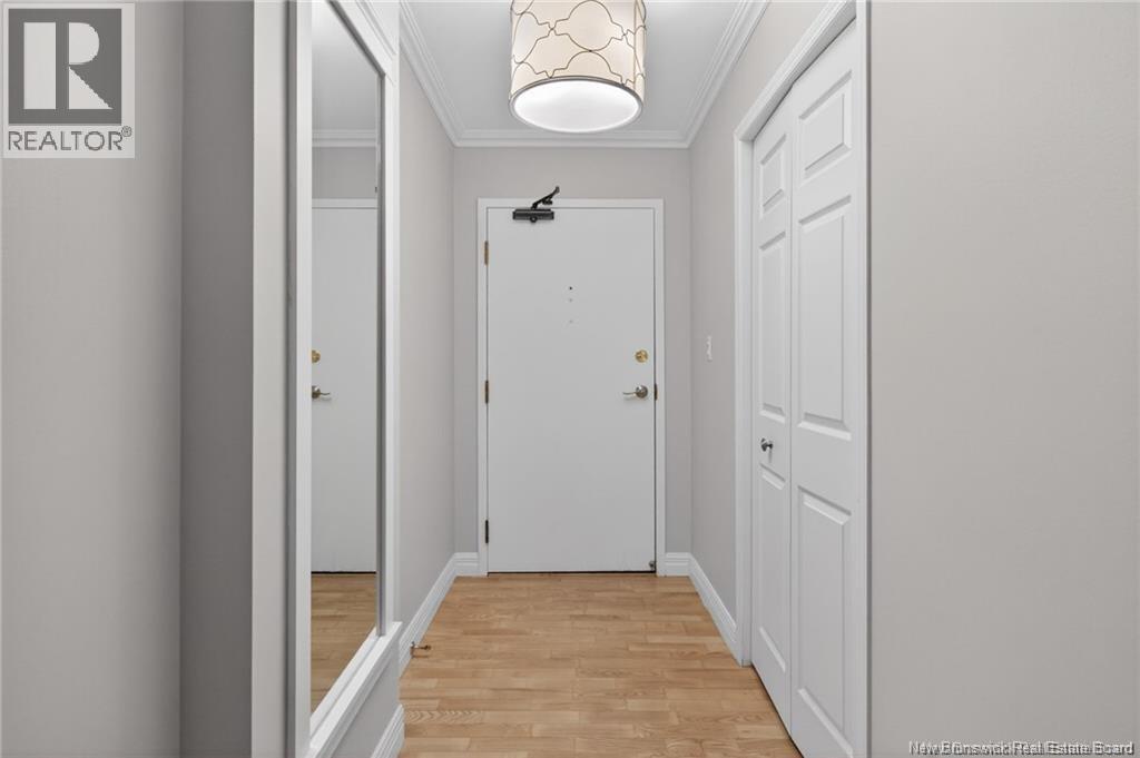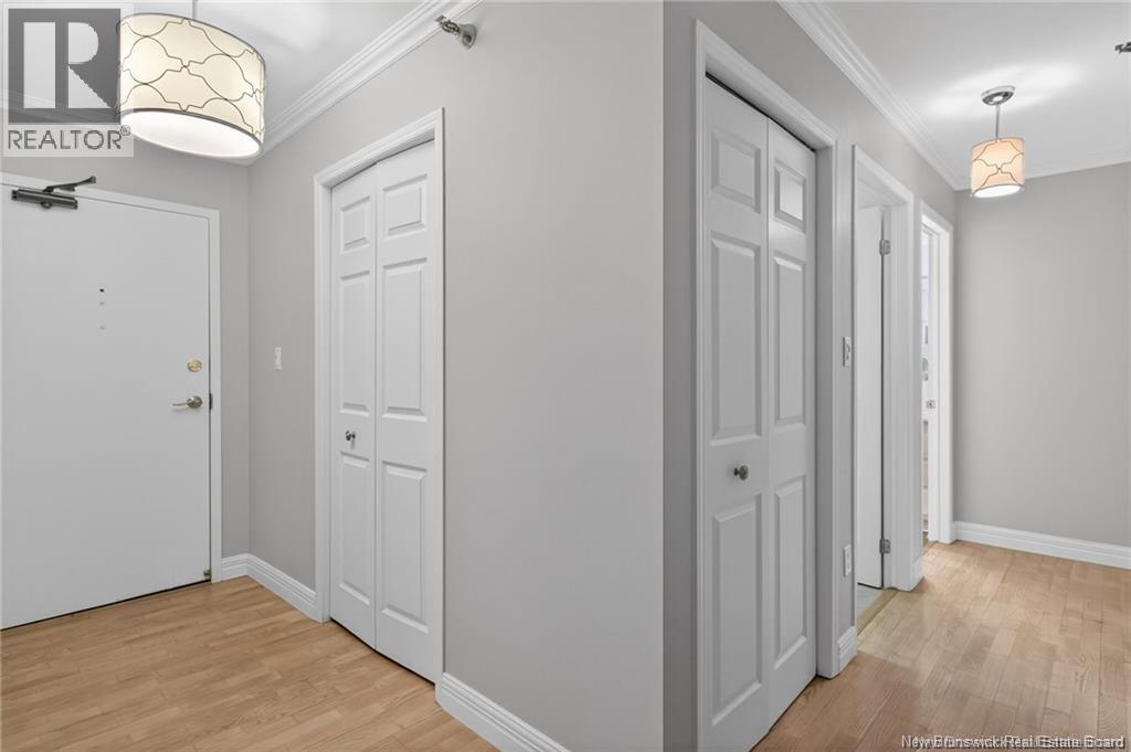 Discover urban comfort in this charming 2-bedroom condo nestled in Downtown Moncton. Located in a secure and well maintained building, this condo offers a blend of modern amenities and serene surroundings. As you step inside, you're greeted by a beautifully interior featuring crown molding and granite countertops throughout. The spacious living and dining area boasts a bay window, filling the space with natural light and providing a cozy ambiance. For comfort, a mini-split heat pump offers both heating and air conditioning options. The master bedroom includes a convenient walk-in closet with shelving and direct access to the 4-piece bathroom, ensuring privacy and functionality. The second bedroom is generously sized with ample closet space, ideal for guests or a home office. Additional highlights include a dedicated laundry and utility room conveniently located near the bedrooms. Step outside onto the 14'x4' covered deck overlooking a landscaped greenery and a gazebo. With underground parking, a beautifully decorated lobby, and a sprinkler system ensuring safety, this move-in-ready condo provides a perfect blend of comfort, convenience, and style in the heart of Moncton's vibrant downtown. (id:34572)
