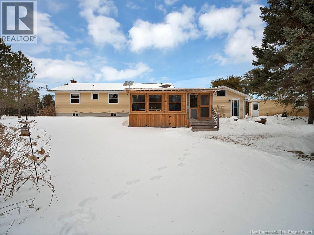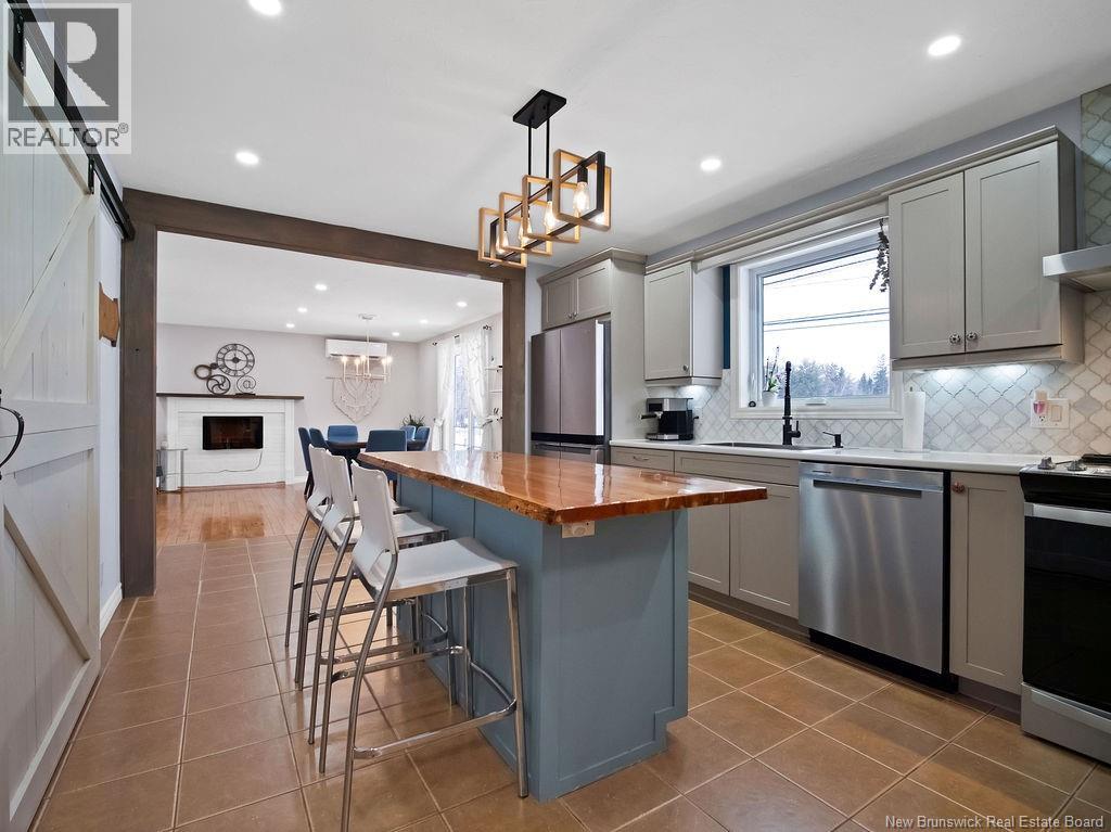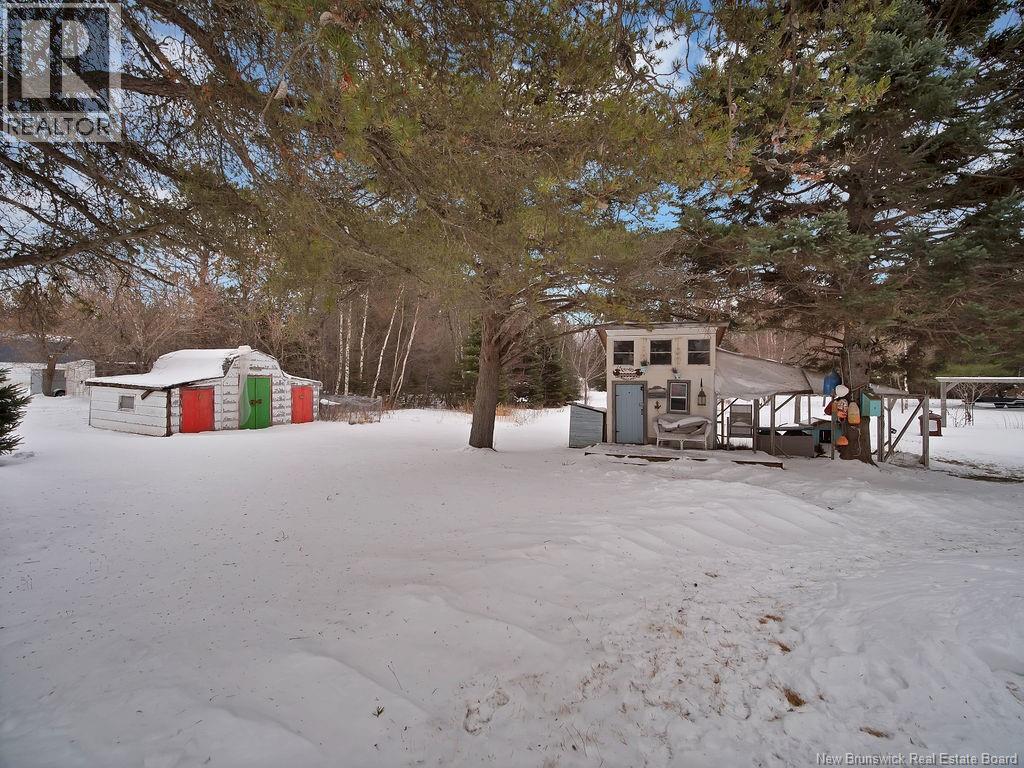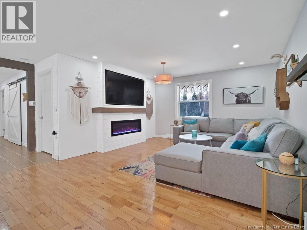 The perfect at-home retreat in a peaceful country setting with privacy and charm. Ideally located just 10 minutes to Shediac and 25 minutes to Moncton, you get quiet living without sacrificing convenience. With a short commute to Shediac River and a boat launch, this location is a welcome find for water enthusiasts. The backyard is a true oasis, featuring a large enclosed patio with a hot tub and ambient lighting that creates a relaxing, spa-like atmosphere. This spacious bungalow welcomes you with a large mudroom for practical everyday function. The layout is thoughtfully divided and offers a large versatile room currently used as a bedroom that could easily serve as a den, office, or family room. The primary bedroom features an oversized walk-in closet for ample storage. The kitchen stands out with a custom wood island countertop, stylish finishes, updated appliances and a pantry. The open-concept dining and living area is ideal for entertaining, highlighted by a newly finished electric fireplace feature. Finishing the main level is a laundry room and main bathroom. The fully finished basement expands your living space with two bedrooms, a full bathroom, a family room, and storage. Outside, youll find a detached garage and two sheds, offering plenty of room for tools and hobbies. Surrounded by mature trees and greenery, the private yard delivers the country lifestyle you're dreaming of. This property blends comfort, space, and setting into a home youll be proud to own. (id:34572)