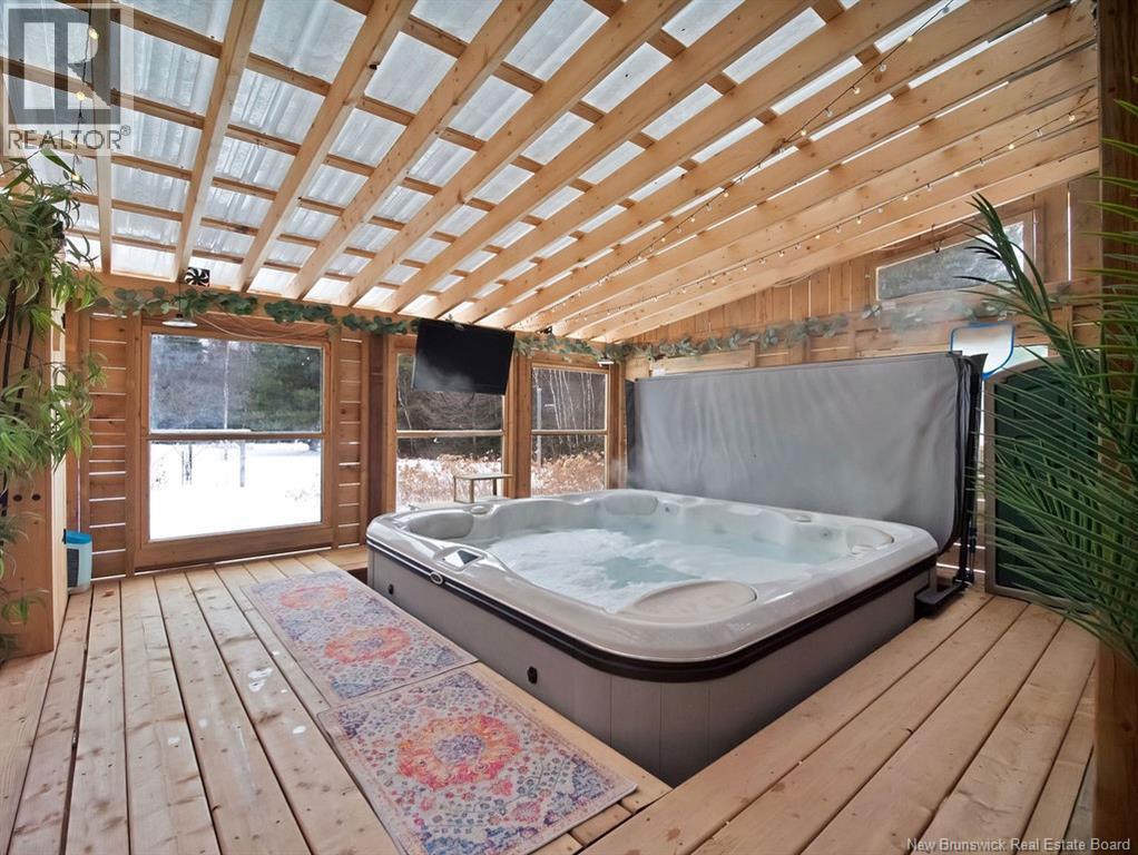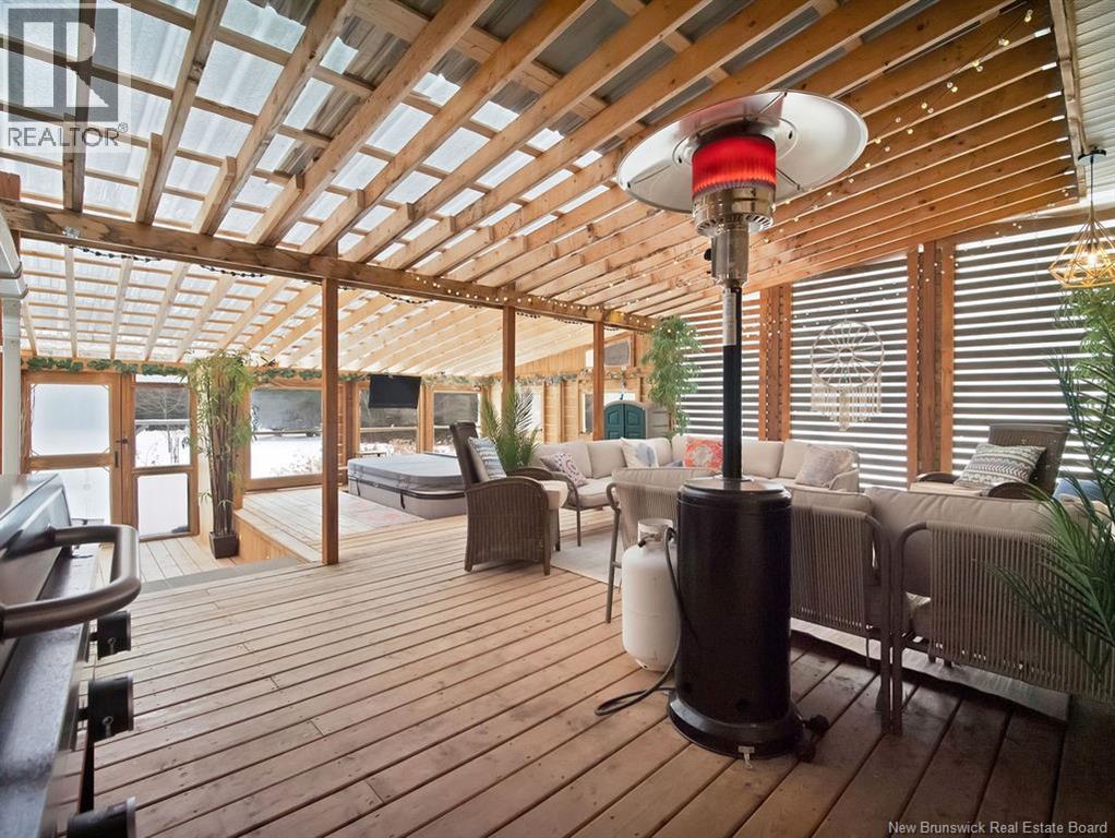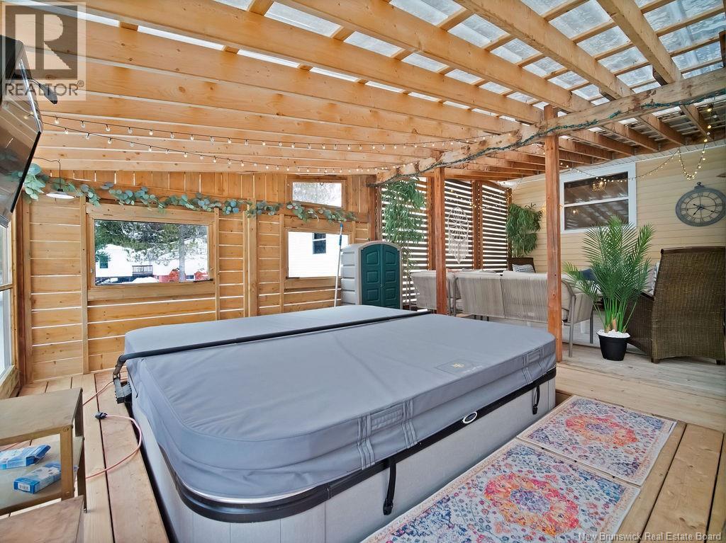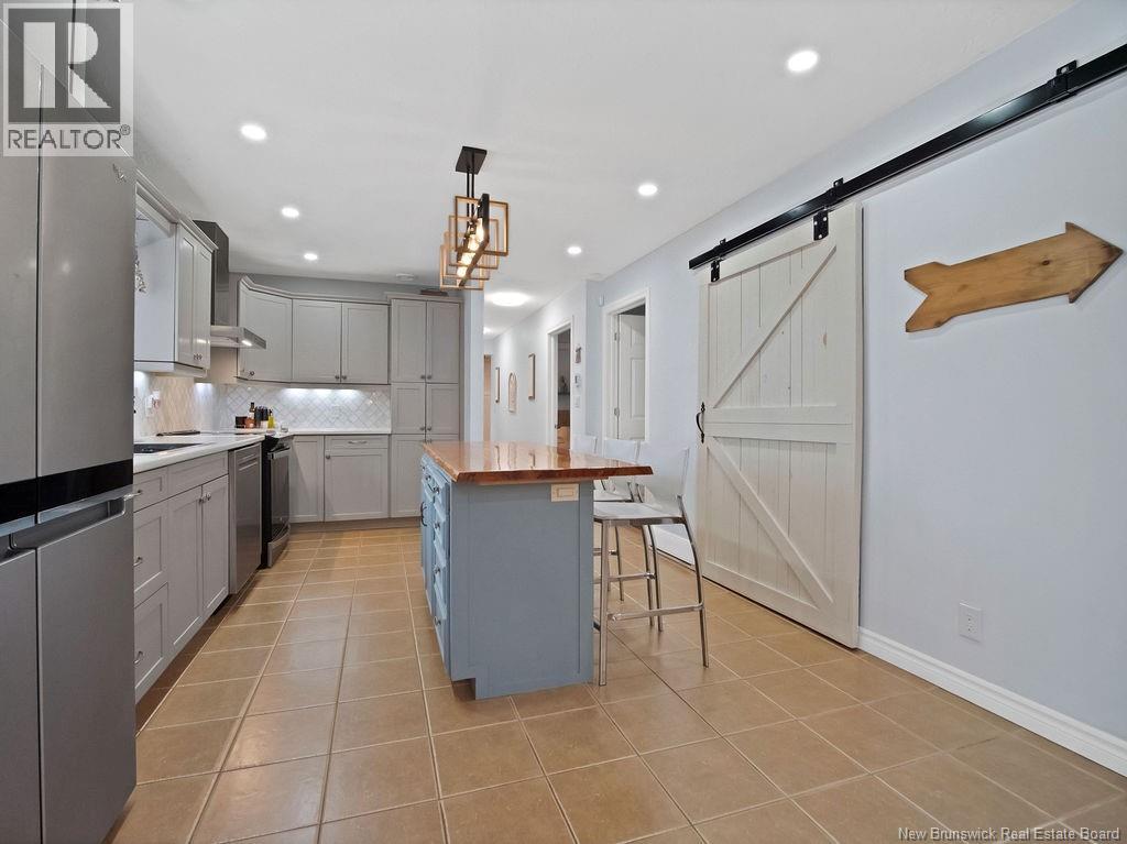 The perfect at-home retreat in a peaceful country setting with privacy and charm. Ideally located just 10 minutes to Shediac and 25 minutes to Moncton, you get quiet living without sacrificing convenience. With a short commute to Shediac River and a boat launch, this location is a welcome find for water enthusiasts. The backyard is a true oasis, featuring a large enclosed patio with a hot tub and ambient lighting that creates a relaxing, spa-like atmosphere. This spacious bungalow welcomes you with a large mudroom for practical everyday function. The layout is thoughtfully divided and offers a large versatile room currently used as a bedroom that could easily serve as a den, office, or family room. The primary bedroom features an oversized walk-in closet for ample storage. The kitchen stands out with a custom wood island countertop, stylish finishes, updated appliances and a pantry. The open-concept dining and living area is ideal for entertaining, highlighted by a newly finished electric fireplace feature. Finishing the main level is a laundry room and main bathroom. The fully finished basement expands your living space with two bedrooms, a full bathroom, a family room, and storage. Outside, youll find a detached garage and two sheds, offering plenty of room for tools and hobbies. Surrounded by mature trees and greenery, the private yard delivers the country lifestyle you're dreaming of. This property blends comfort, space, and setting into a home youll be proud to own. (id:34572)