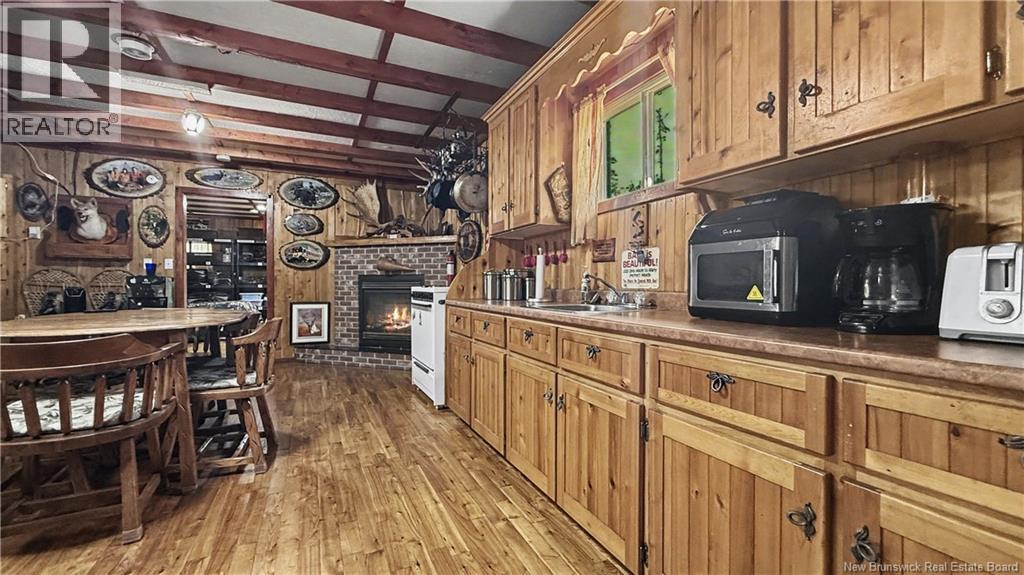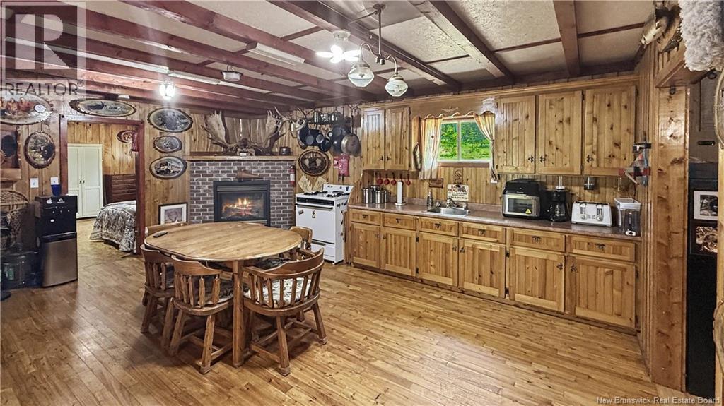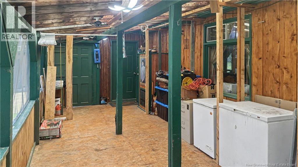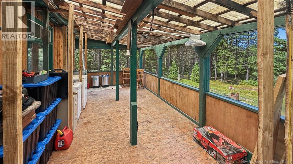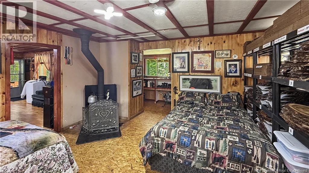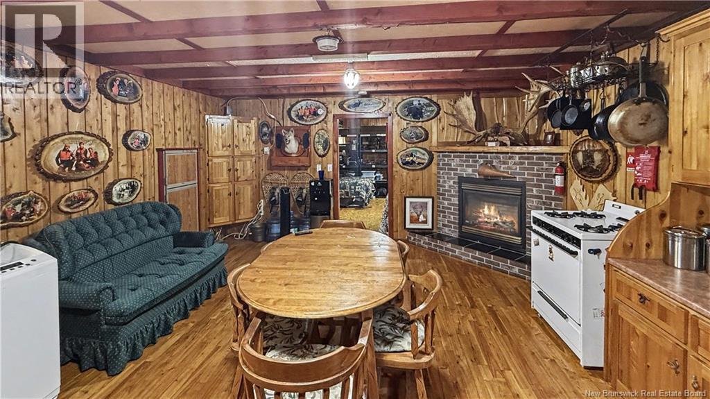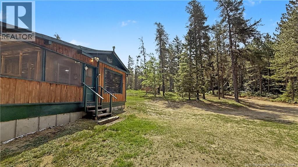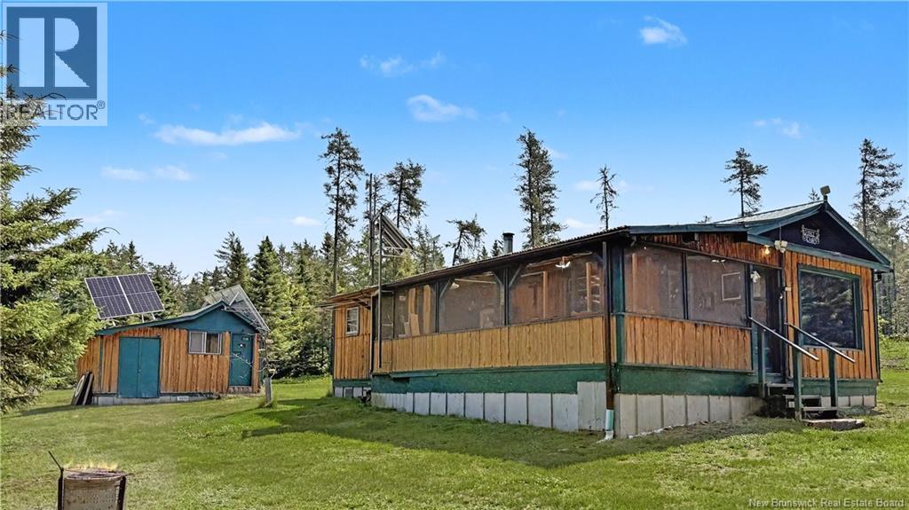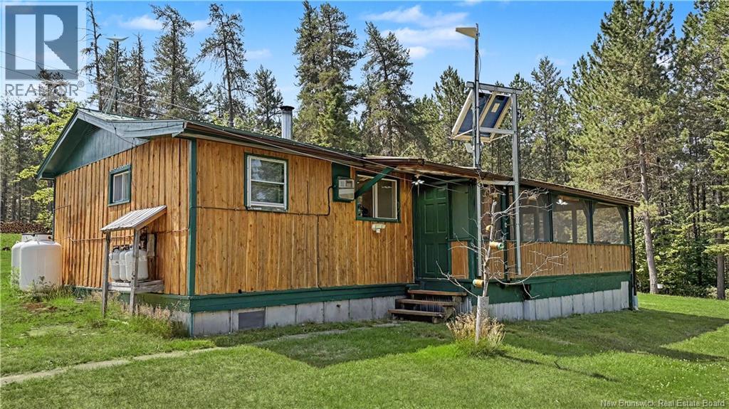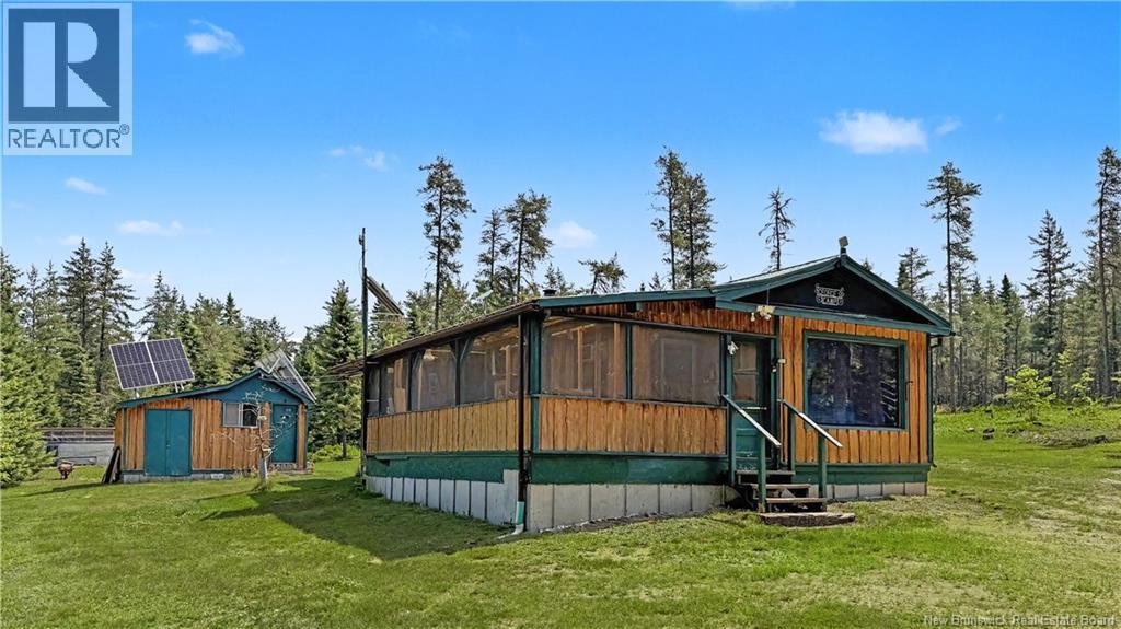 TRANQUIL OFF-GRID RIVERFRONT RETREAT // SOLAR-POWERED // 3-SEASON CAMP ON LEASED LOT Escape to nature with this private solar-powered 3-season camp set on a peaceful 0.99-acre riverfront view leased lot. Surrounded by mature trees and abundant wildlife, this property offers true seclusion with no nearby neighborsideal for those seeking a quiet, off-grid lifestyle. Offering approximately 783 sq ft, the camp features an open-concept kitchen, dining, and living area with warm wood flooring throughout. A cozy propane fireplace adds comfort on cooler evenings, while the space is equipped with a built-in fridge, stove, and water heater for practical off-grid living. The spacious bedroom comfortably fits two beds, and a bonus office nook provides a quiet place to read or unwind. A 3-piece bathroom with washer/dryer combo adds convenience, while the screened-in porch overlooking the river lets you enjoy the outdoors without the bugs. Constructed with wood foundation with crawl space, cedar siding, and a durable metal roof, this camp is built for simplicity and function. A storage shed/workshop offers additional space for tools and equipment. Whether you're looking for a weekend getaway, a hunting/fishing base, or a place to fully disconnect, this property delivers a rare opportunity to own a peaceful off-grid retreat with direct water access. Leased Crown land lot is only 400$/year. Located about 15 mins from Rogersville where you have access to all local amenities. Contact your favorite REALTOR® for more information or to book your very own private viewing! (id:34572)