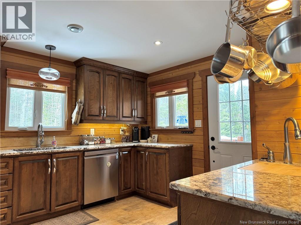 Built in 2013, this one-of-a-kind log home perfectly blends rustic charm with modern comfort, offering a true country in the city lifestyle. Privately set on just under 9 acres, youll enjoy peace and space while still being only minutes from downtown, the highway, shopping, the hospital, and schools. Inside, the home features a warm and inviting layout with 3 bedrooms and 2 full bathrooms, complemented by beautiful finishes including granite countertops and the timeless character of natural wood throughout. The convenience of main-floor laundry, 3 heat pumps, and on-demand hot water, and generator hookups ensures year-round comfort and efficiency. The fully finished basement provides exceptional additional living or recreational space, complete with a cozy wood stove and direct access to the backyardperfect for enjoying the surrounding nature. Outside, the property continues to impress with a huge paved driveway and an oversized detached garage with loft, ideal for storage, a workshop, or hobby space. Topped with a durable metal roof, this home offers lasting quality and low maintenance. A rare opportunity to own a distinctive property that delivers privacy, character, and convenience in one exceptional package. (id:34572)