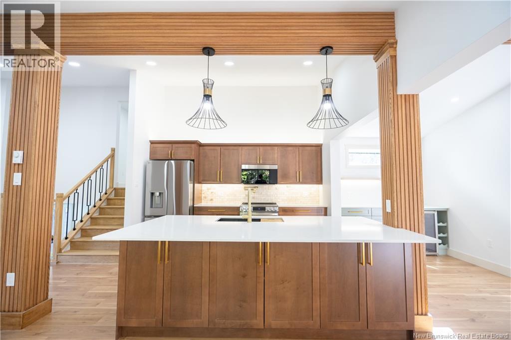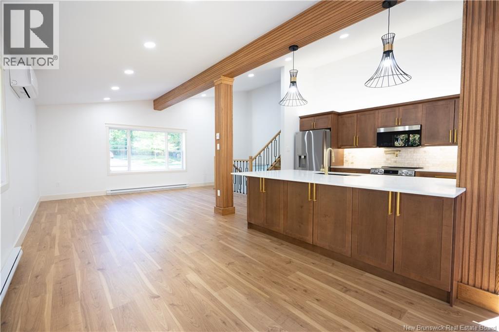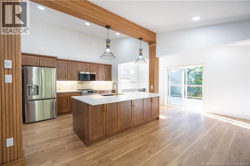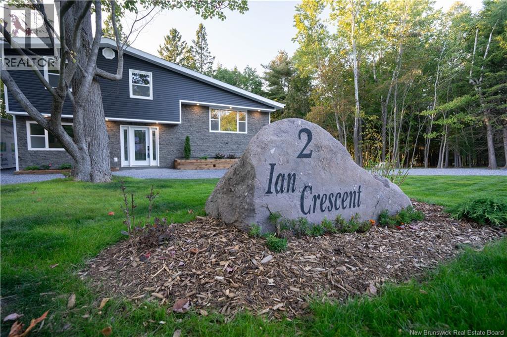 Welcome to 2 Ian Crescent a stunning 4-bed, 2-bath home in beautiful Rothesay. Completely rebuilt from the core, this home offers the comfort and peace of mind of a brand-new property. The main level makes a bold first impression with heated white-tile floors in the entry, a spacious office (or spare bedroom), a 3-piece bath, large laundry, and a bright mudroom with secondary entry perfect for messy days. The second level is the heart of the home, with soaring ceilings and an open-concept living, kitchen, and dining area. A coffee bar adds convenience, while patio doors lead to the large back deck for effortless access from the kitchen to the barbecue. Upstairs features a large primary bedroom, two additional bedrooms, and a spacious 3-piece bath. The fully finished basement adds versatility with a fourth bedroom, storage, and a large living room with an electrical fireplace. Perfect for those cozy movie nights. Outdoors, enjoy .79 acres and a landscaped yard, and an attached storage shed ideal for gear, tools, kayaks, etc. The newly constructed detached double garage offers plenty of space for your vehicles, storage, or even a workshop, or all three. Extensive upgrades include new roof, windows, doors, insulation (R24 walls/R50 attic), electrical, sewer line, plumbing, flooring, driveway, landscaping, garage, and a complete interior renovation effectively a brand-new home ready for its next chapter. (id:34572)