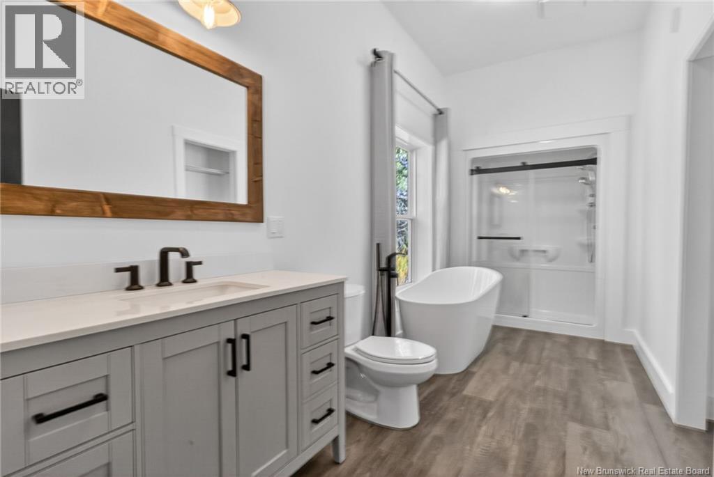 In-Law Suite // Oversized Garage with Utilities // 1.17 Acres // Mini-Splits // Country Living Close to Shediac Welcome to 20 Emeray Lane in Shediac River! This well-built bungalow sits on 1.17 acres of private, wooded land just minutes from town. The main home offers a bright open layout with a large kitchen island, dining area, spacious living room with wood stove, office/bedroom, laundry, guest bedroom, and 3-piece bath. The primary suite features a walk-in closet and a 4-piece ensuite with double vanity, soaker tub, and walk-in shower. A private in-law suite with separate entrance includes its own kitchen, living room, bedroom, and full bath, ideal for family or rental. The oversized garage is fully serviced with power, water, hot water tank, and a 3-piece bath. It fits two vehicles, includes storage, a partially finished bachelor space, and an unfinished bonus room above offering endless potential. Enjoy country living with the convenience of Shediac just minutes away! (id:34572)