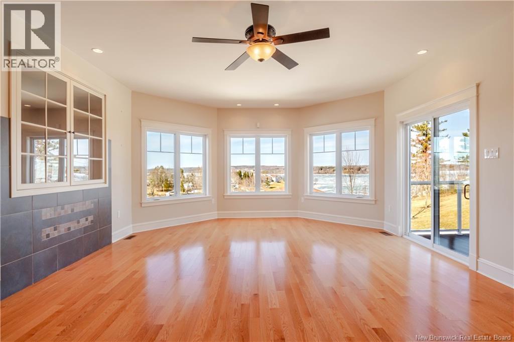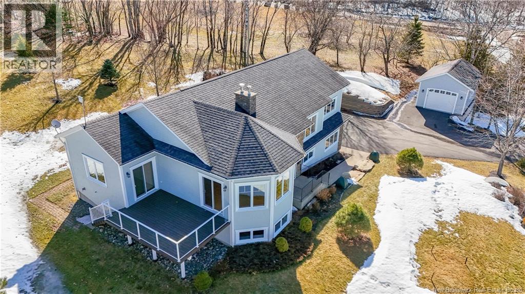 Welcome to the Headlands at Longs Creek. Ideally located only 20 minutes from Fredericton, this subdivision of executive houses features breathtaking water views and boat launch only steps away. This custom-built home situated on a beautifully landscaped 1.4 acre lot with additional 24 x 16 detached garage. Enter through bright front foyer with closet. Main level has 9-foot ceilings with open concept main living area. Kitchen features lots of cream lacquer cabinets, granite counter tops, roll out pantry, and water views. Family room has patio doors to back South facing deck. Large dining area to spacious living room with propane fireplace and patio doors to side deck. Master suite has tray ceiling, patio doors to side deck, and luxurious ensuite with air tub, double sinks and walk-in shower. Second bedroom and full bath complete this level. Lower-level features large rec room with propane fireplace, third bedroom, laundry room, and full bath with shower. Includes whole home generator to make power outages a thing of the past. Subdivision covenants in place to protect property values. Streets are maintained by the provincial government, as opposed to private road association. Seller is willing to consider vendor financing with a moderate down-payment for credit worthy purchases. (id:34572)