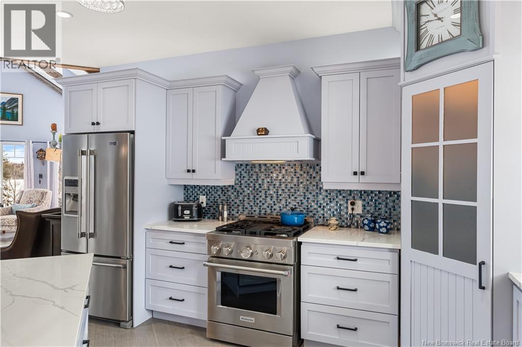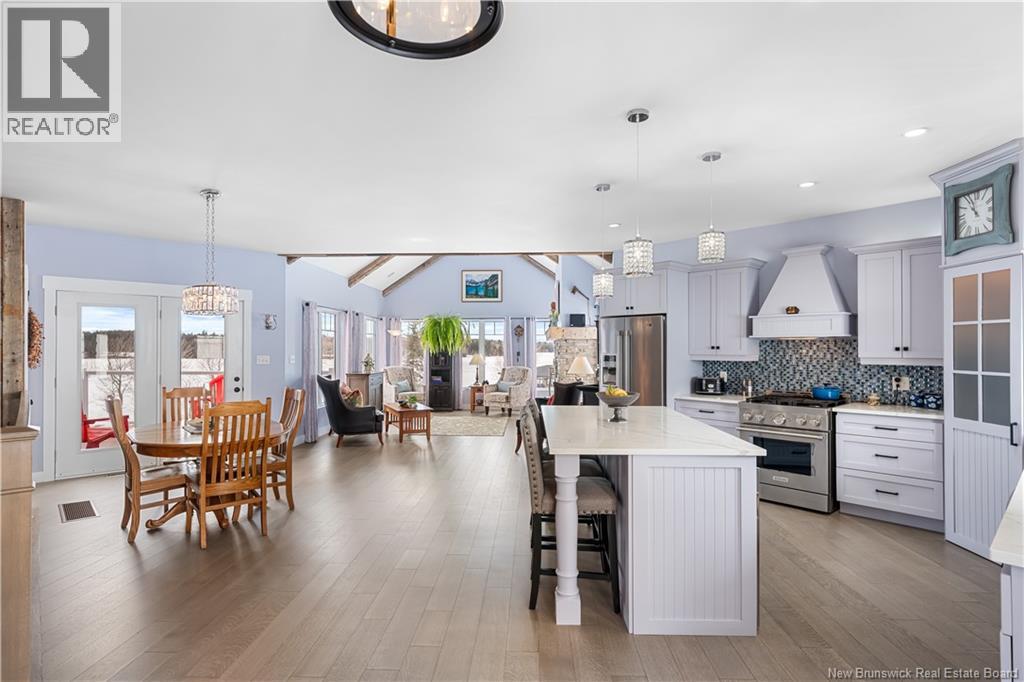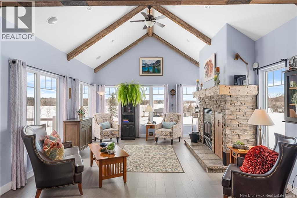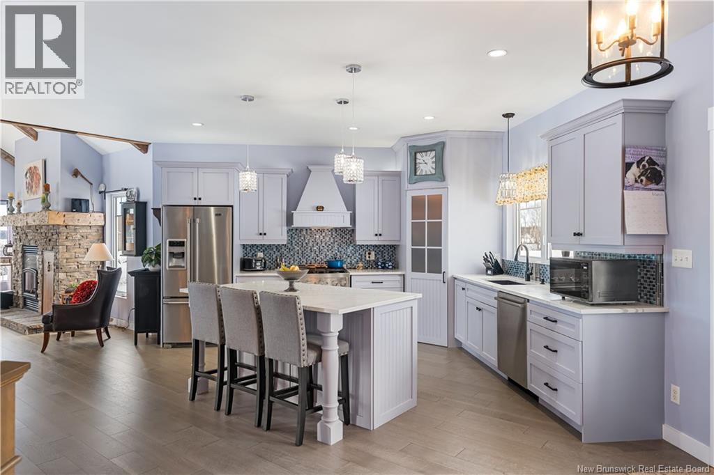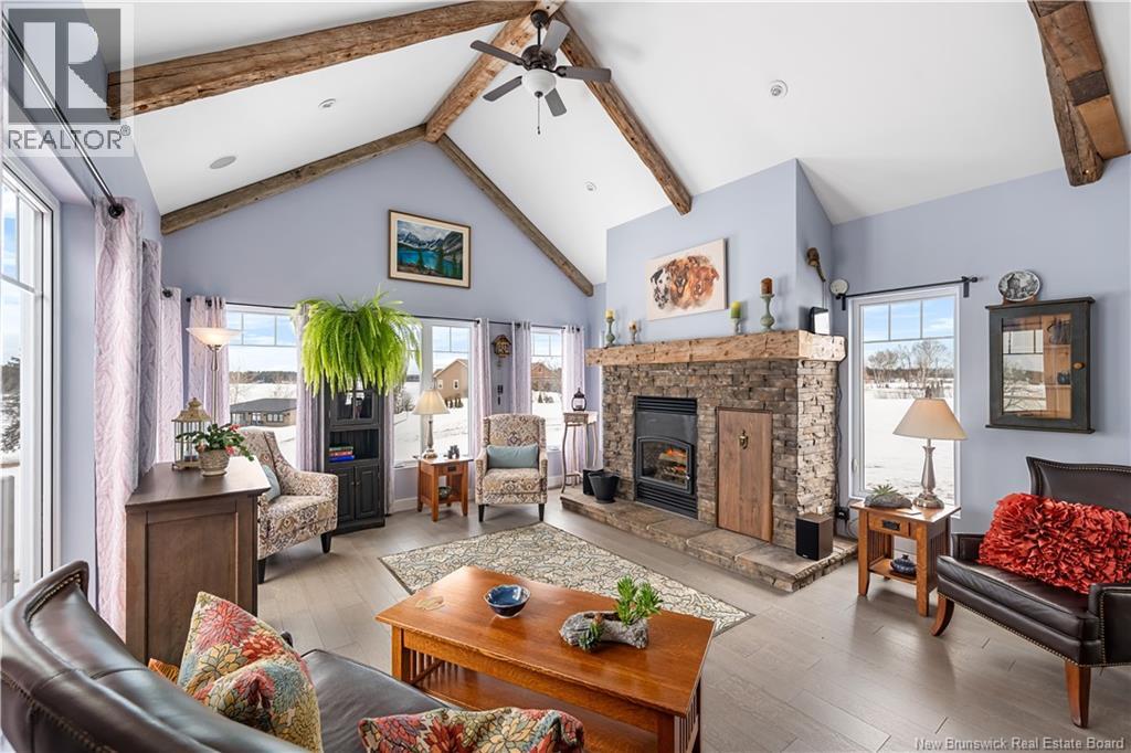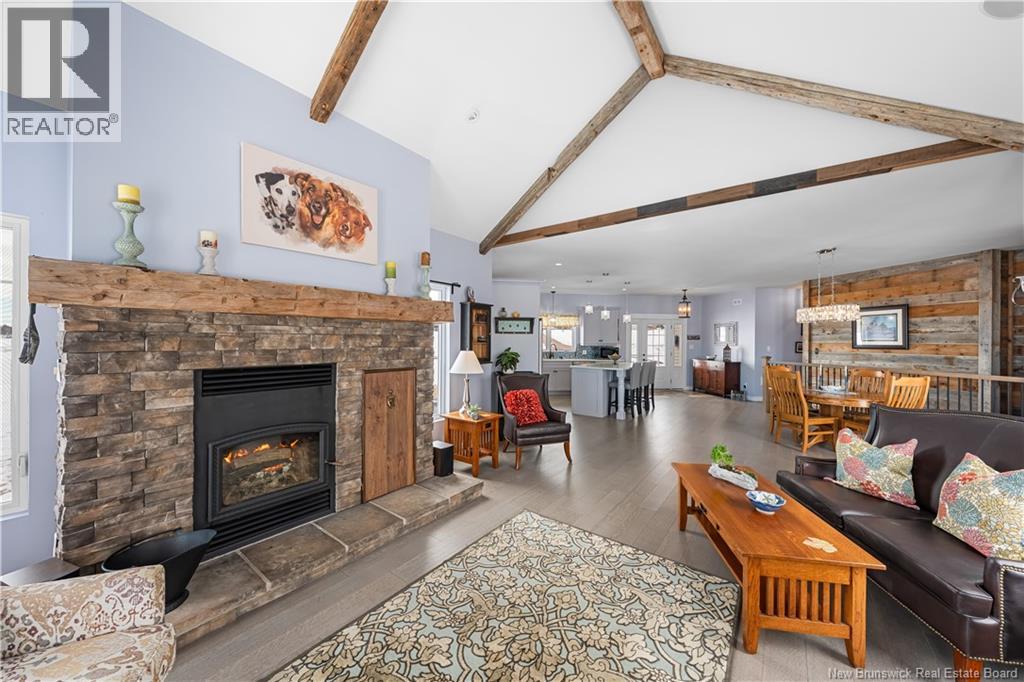 Welcome to 20 Islandview with stunning views of the Richibucto River & breathtaking sunsets. Enjoy the waterfront patio & screened porch, perfect for relaxing & taking in the scenery. This 4 bedroom, 3 bathroom waterfront home with walk out basement & attached double garage with loft offers comfort, space, and quality throughout. The open concept main level features an L shaped kitchen with island that flows into the dining area and living room. The living room showcases cathedral ceilings, large windows maximizing natural light and river views, and a cozy fireplace complete with a WoodWaiter elevator that brings firewood directly from the wood room downstairs.The primary bedroom includes a walk in closet, full ensuite with soaker tub, and access to the deck and hot tub which could be negotiated to stay. A second bedroom, full bath, and convenient mudroom with laundry off the garage complete the main level. The fully finished walk out basement features two additional bedrooms, full bath, family room, utility and storage space, plus a clean and organized wood room and workshop area. Located halfway up the Richibucto River with a beautiful beach you can boat right up to. Enjoy boating, kayaking, cruising upriver, or heading downriver toward the dunes and sandy beaches. Recent updates include paint throughout, generator panel, flooring, countertops, backsplash, appliances, air exchanger, screened room glass panels, and chip sealed driveway. Efficient with central air heat pump. (id:34572)