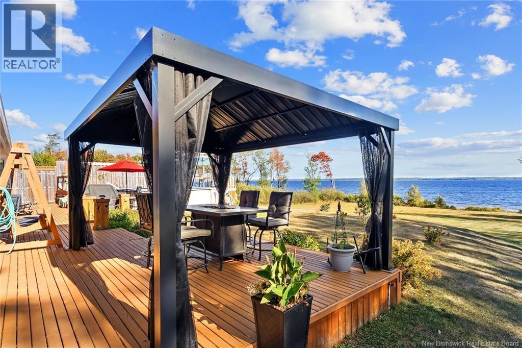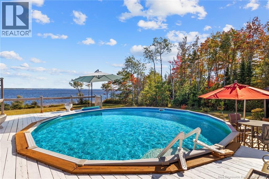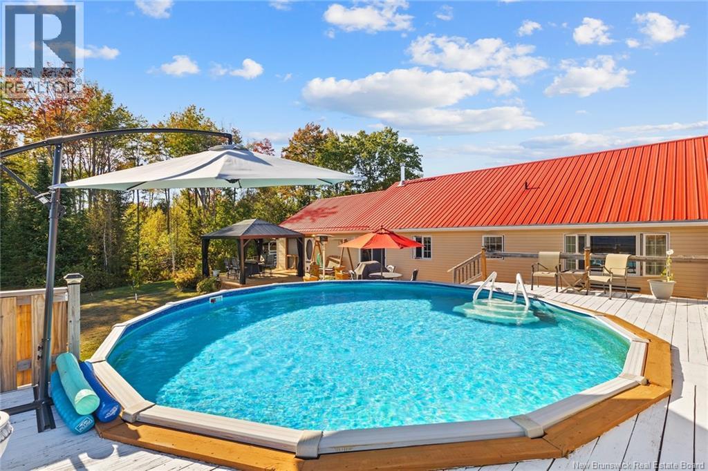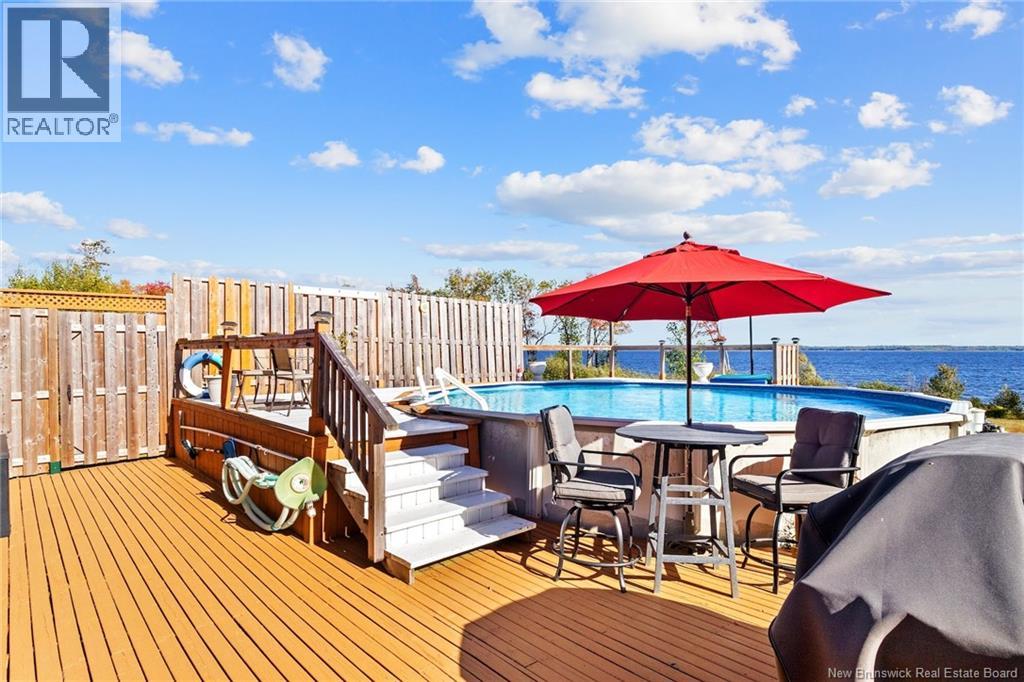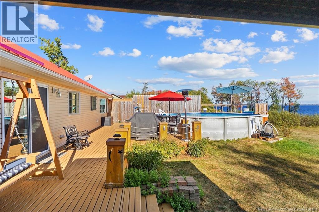 Welcome to your waterfront retreat on beautiful Grand Lake! This gorgeous 3-bedroom, one-level home is nestled on 1.38 acres of private, flood-free land, offering approximately 185 feet of pristine water frontageperfect for boating, swimming, and enjoying all your favorite water sports. Inside, youll love the bright and open-concept layout. The spacious living area features a brand new wood stove for cozy winter nights, complemented by ductless heat pumps that provide efficient heating and cooling year-round. The kitchen is the heart of the home with a functional island and brand-new appliances, perfect for cooking and entertaining. The home offers three generously sized bedrooms and a full bath with convenient in-home laundry. Patio doors lead out to a gorgeous back deck complete with an above-ground pool, a charming gazebo, and breathtaking views of Grand Lakeyour personal oasis awaits. The attached garage provides added convenience and storage, while the covered front concrete porch offers another peaceful spot to unwind. The well-maintained grounds are a gardeners dream, featuring established beds with blackberries, grapes, high bush blueberries, cherry, plum, and peach trees. Located just 45 minutes from Fredericton and less than 10 minutes from amenities and a local health centre, this is lakeside living at its finest,private, peaceful, and move-in ready. (id:34572)