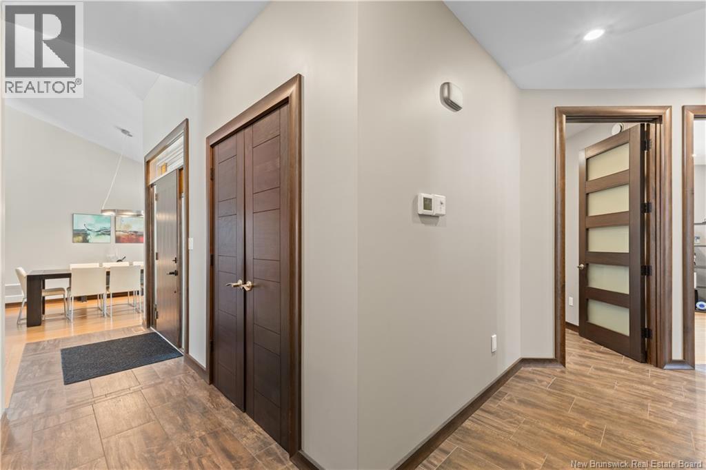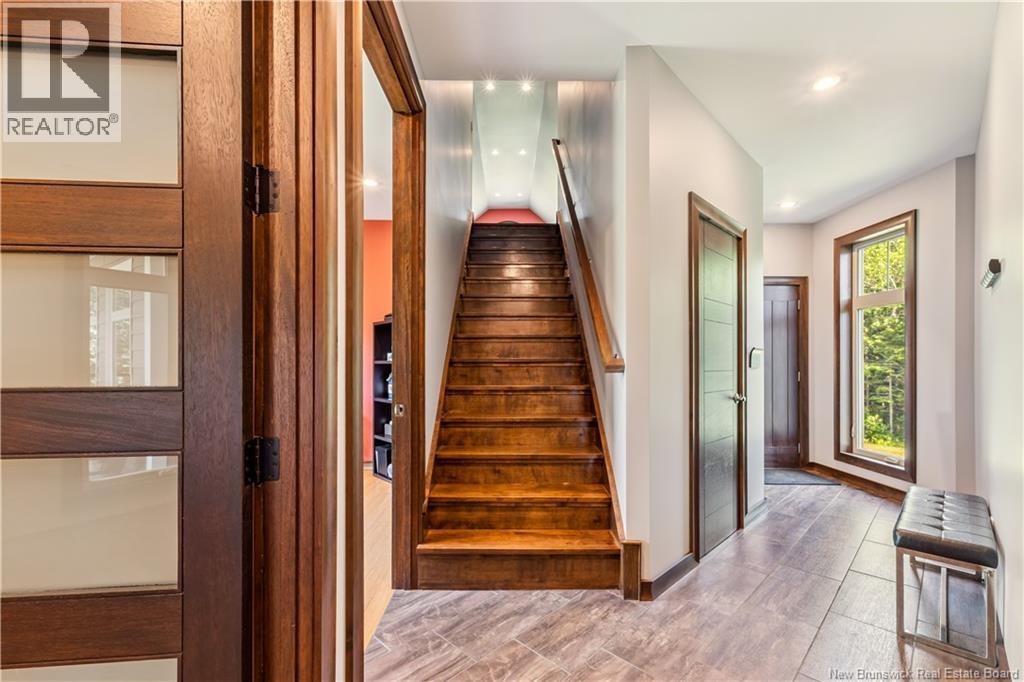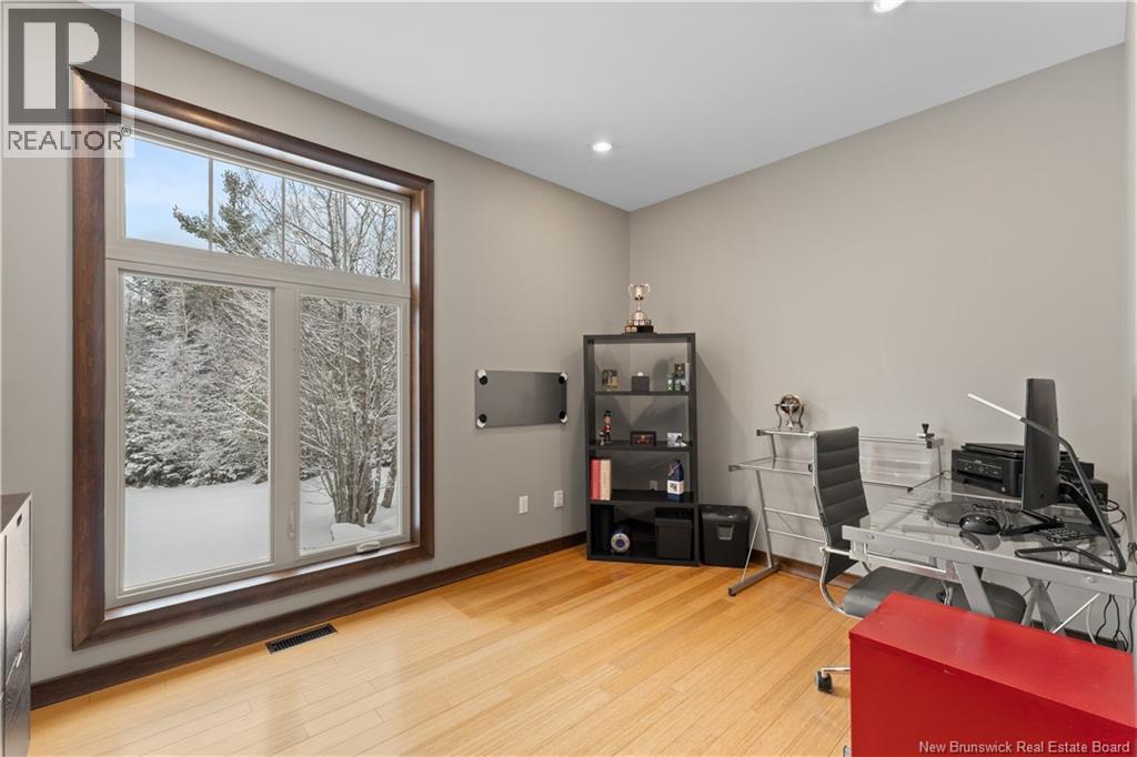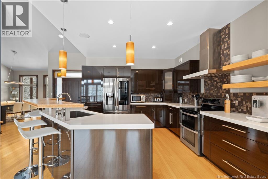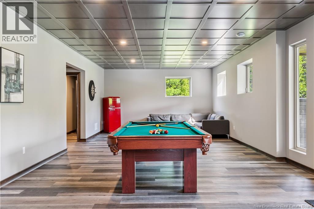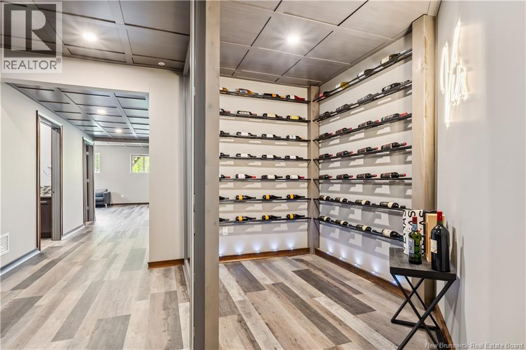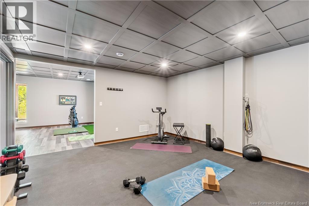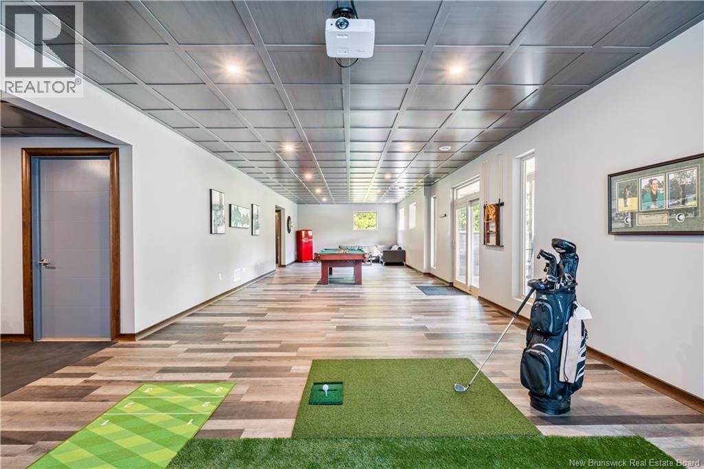 Freshly painted PRIVATE EXECUTIVE RETREAT on a private 2.59 ACRE LOT, minutes from Dieppe and Moncton. This architecturally striking bungalow with LOFT offers nearly 3,900 sq ft of finished living space designed for PRIVACY, space, and long-term COMFORT without sacrificing convenience. The main level features soaring ceilings, dramatic feature walls, and an open-concept layout anchored by a DUAL-SIDED PROPANE FIREPLACE. Large windows flood the home with natural light while framing views of the surrounding trees. The chefs kitchen includes a large island, upgraded fixtures, and seamless flow to the dining and living areas, ideal for entertaining or everyday living. FOUR BEDROOMS are located on the MAIN LEVEL, including a spacious PRIMARY SUITE with spa-inspired ENSUITE and WALK-IN-CLOSET. A second full bathroom, main-floor laundry, and mudroom add everyday functionality. The LOFT above offers flexible space for a home office or quiet retreat. The fully finished WALK-OUT BASEMENT features a professional GOLF SIMULATOR, games and LOUNGE AREAS, custom WINE CELAR, GYM, and direct access to the lower patio and HOT TUB area. Outdoor living includes an elevated deck, fire pit area, and mature trees creating a rare sense of seclusion. Additional highlights include GEOTHERMAL heating and cooling, METAL ROOF, DOUBLE attached GARAGE. A rare incredible offering combining estate-style privacy with city convenience. (id:34572)