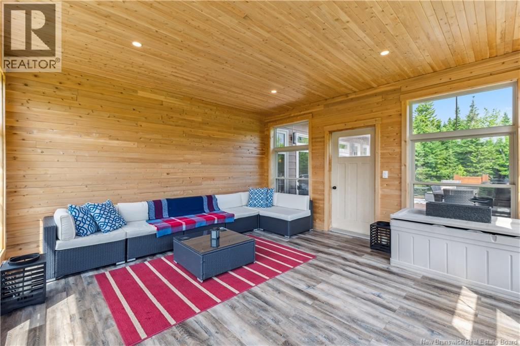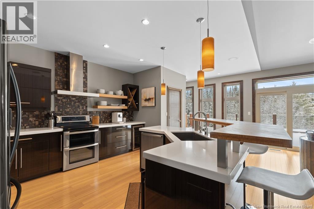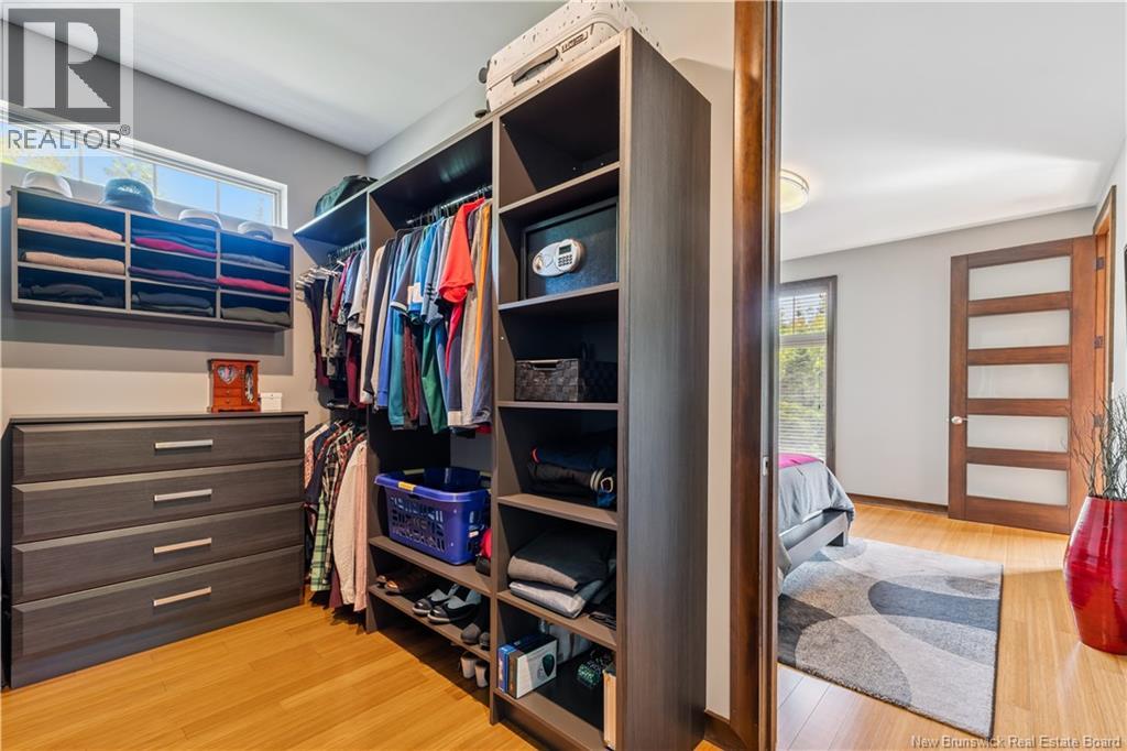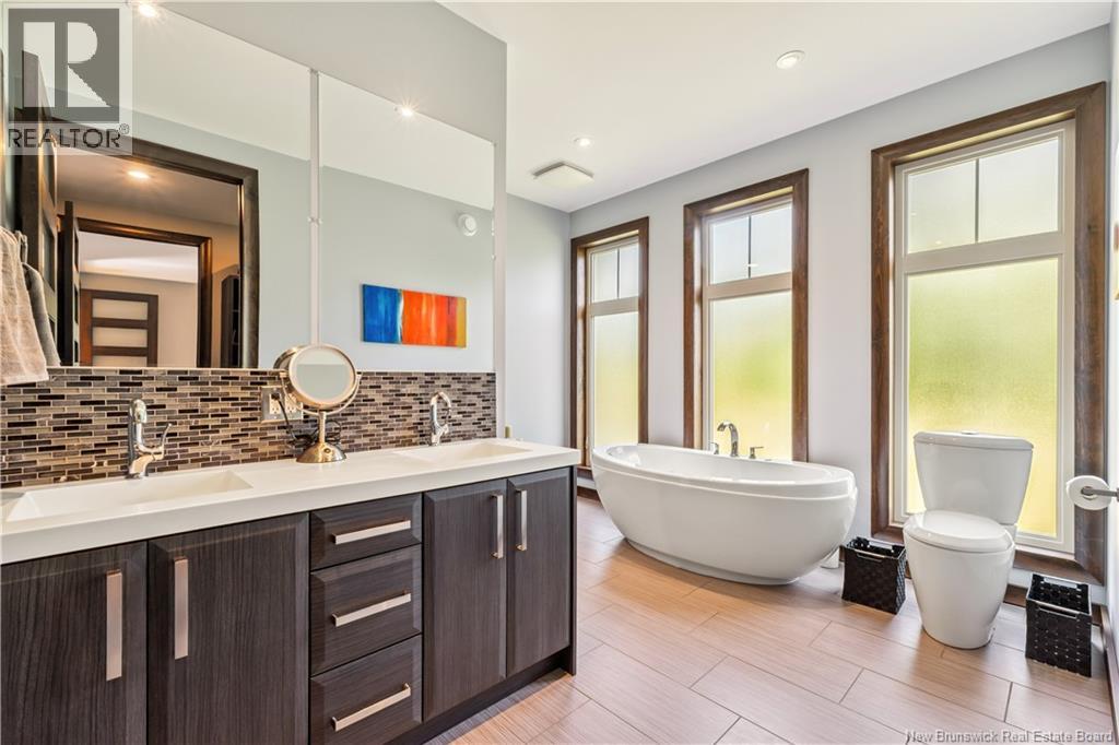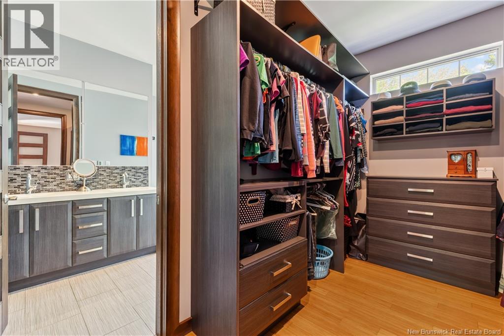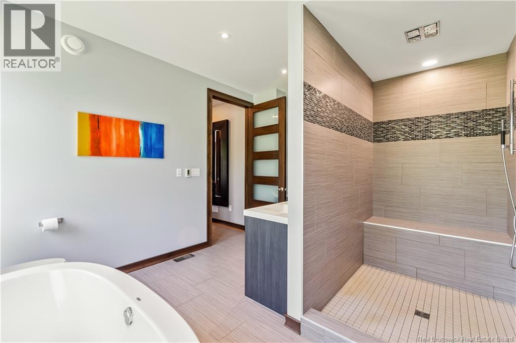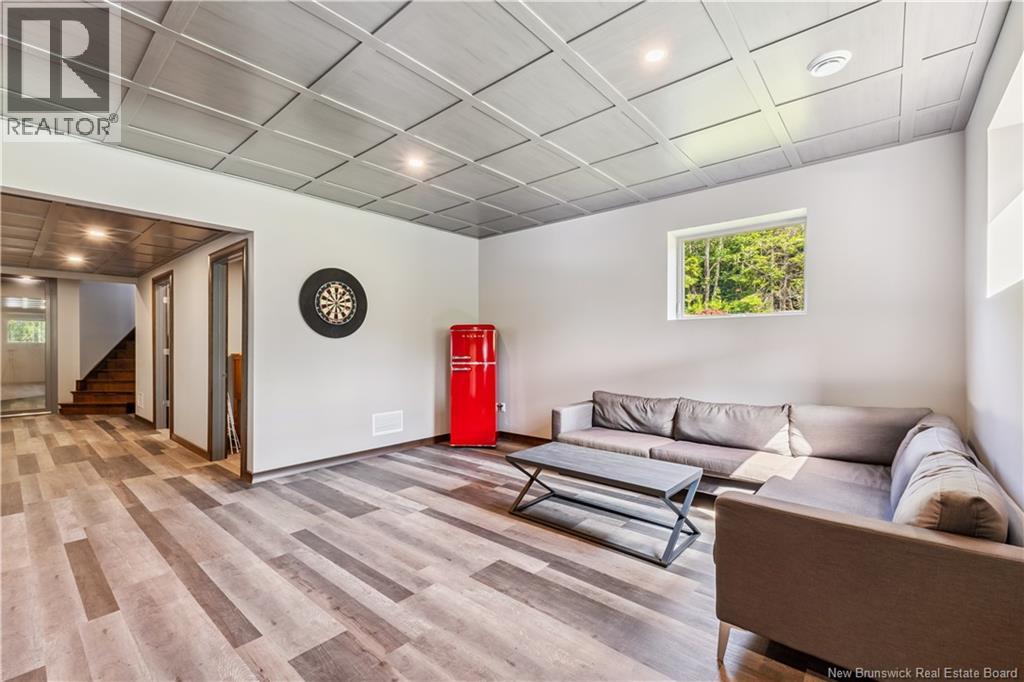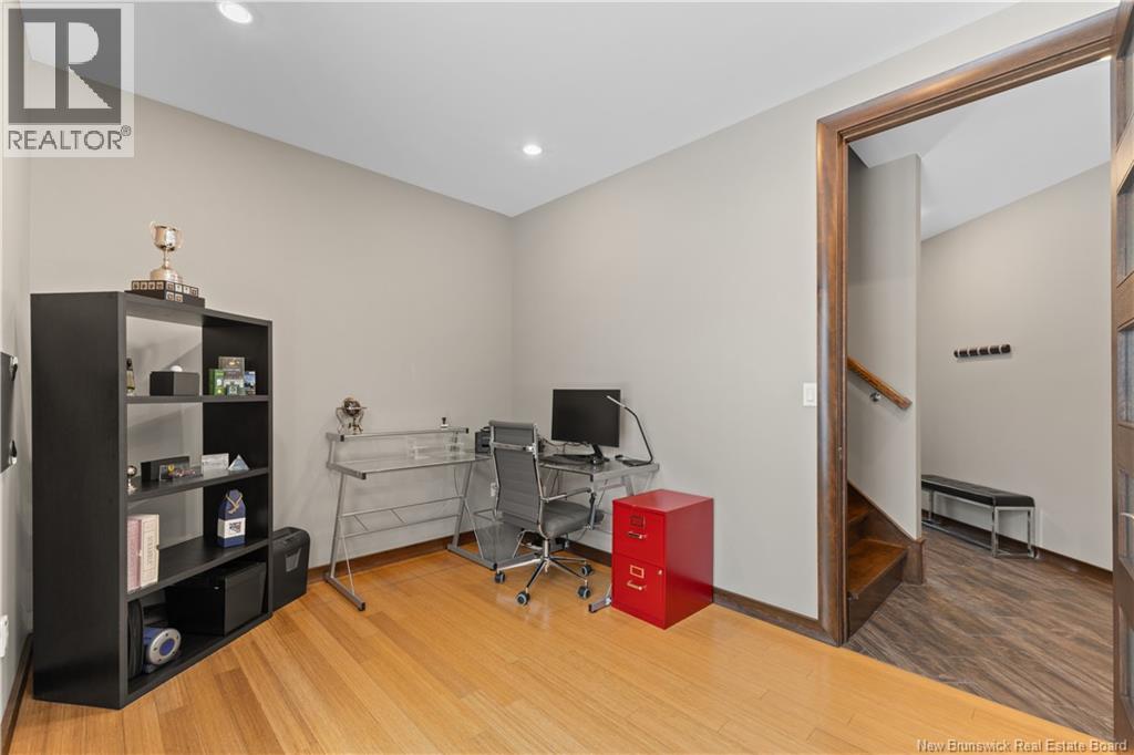 Freshly painted PRIVATE EXECUTIVE RETREAT on a private 2.59 ACRE LOT, minutes from Dieppe and Moncton. This architecturally striking bungalow with LOFT offers nearly 3,900 sq ft of finished living space designed for PRIVACY, space, and long-term COMFORT without sacrificing convenience. The main level features soaring ceilings, dramatic feature walls, and an open-concept layout anchored by a DUAL-SIDED PROPANE FIREPLACE. Large windows flood the home with natural light while framing views of the surrounding trees. The chefs kitchen includes a large island, upgraded fixtures, and seamless flow to the dining and living areas, ideal for entertaining or everyday living. FOUR BEDROOMS are located on the MAIN LEVEL, including a spacious PRIMARY SUITE with spa-inspired ENSUITE and WALK-IN-CLOSET. A second full bathroom, main-floor laundry, and mudroom add everyday functionality. The LOFT above offers flexible space for a home office or quiet retreat. The fully finished WALK-OUT BASEMENT features a professional GOLF SIMULATOR, games and LOUNGE AREAS, custom WINE CELAR, GYM, and direct access to the lower patio and HOT TUB area. Outdoor living includes an elevated deck, fire pit area, and mature trees creating a rare sense of seclusion. Additional highlights include GEOTHERMAL heating and cooling, METAL ROOF, DOUBLE attached GARAGE. A rare incredible offering combining estate-style privacy with city convenience. (id:34572)