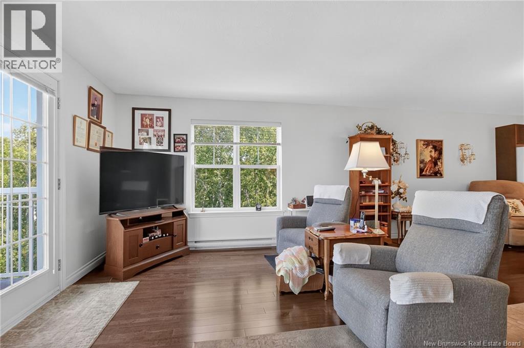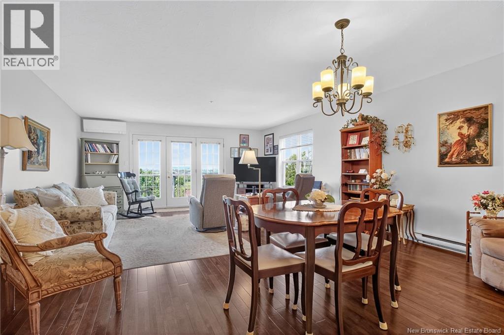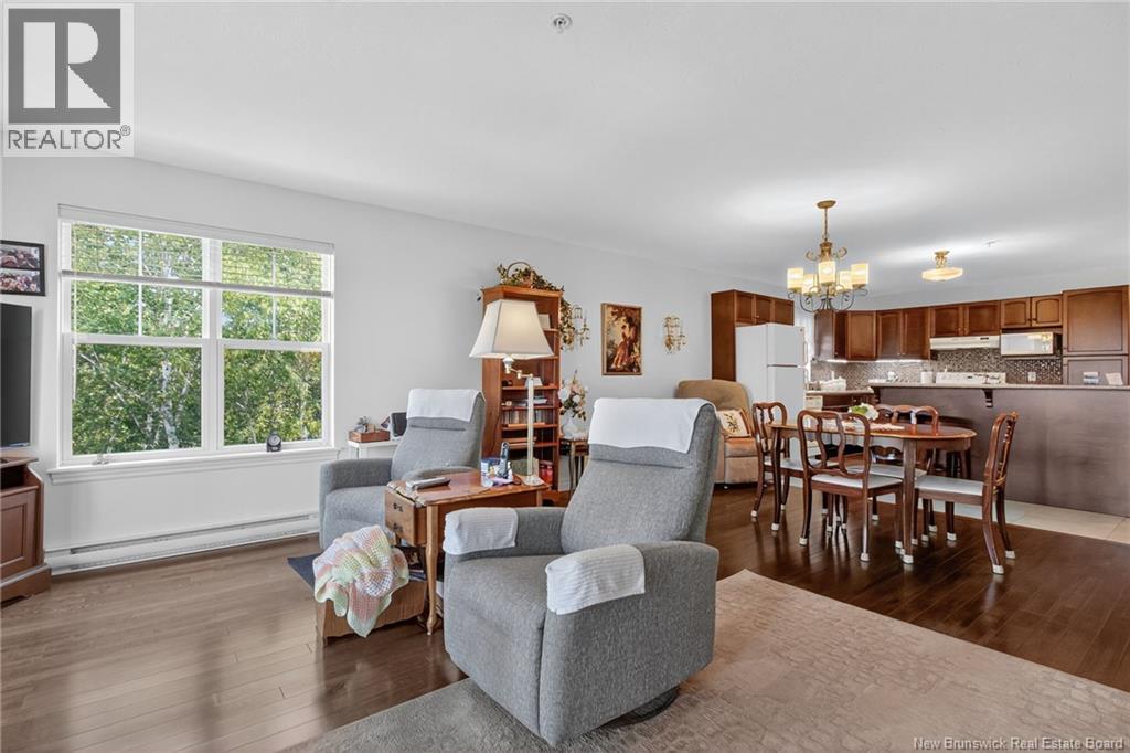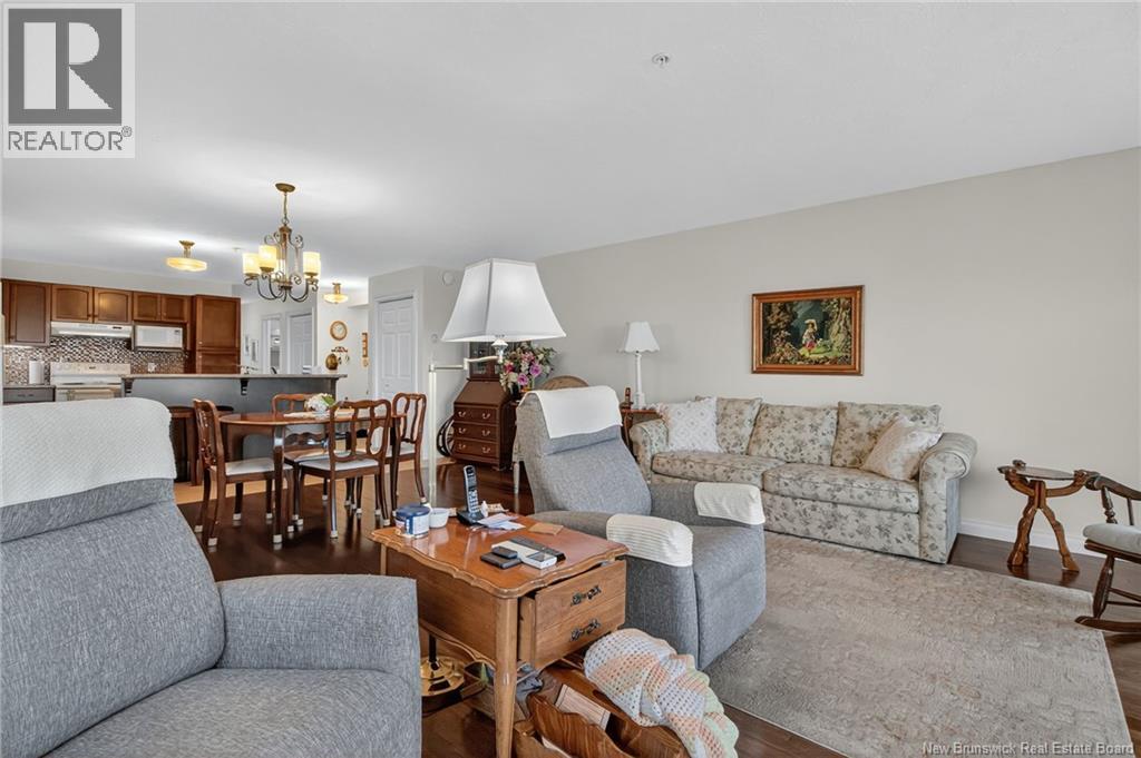 Welcome to this beautiful open-concept condo where comfort meets convenience. Flooded with natural light, the spacious kitchen, dining, and living area is the heart of the home, featuring a large island, abundant cabinets, and generous counter space. Step out onto the balcony to take in breathtaking views of the Petitcodiac River and the city skyline. Down the hall, youll find a laundry/utility room, a full bathroom, and two bedrooms, including a primary suite complete with a walk-in closet and a private balcony overlooking the golf course, your own serene retreat. Located in a secure building with underground parking and additional storage, this condo also offers a fitness room, a welcoming common area, and convenient visitor parking. Situated in a great location close to all of Riverviews amenities, this home has it all and offers an easy, low-maintenance lifestyle! (id:34572)