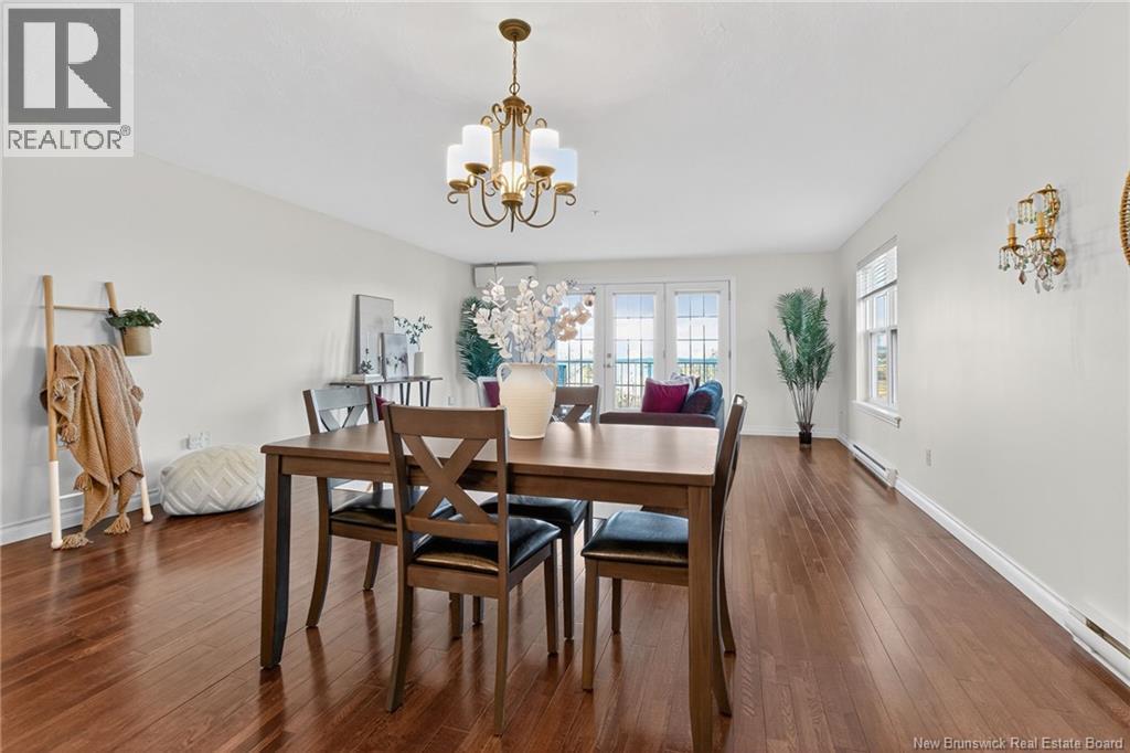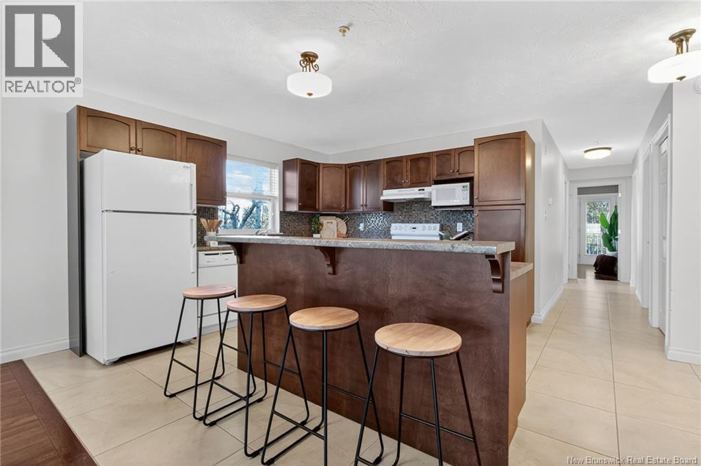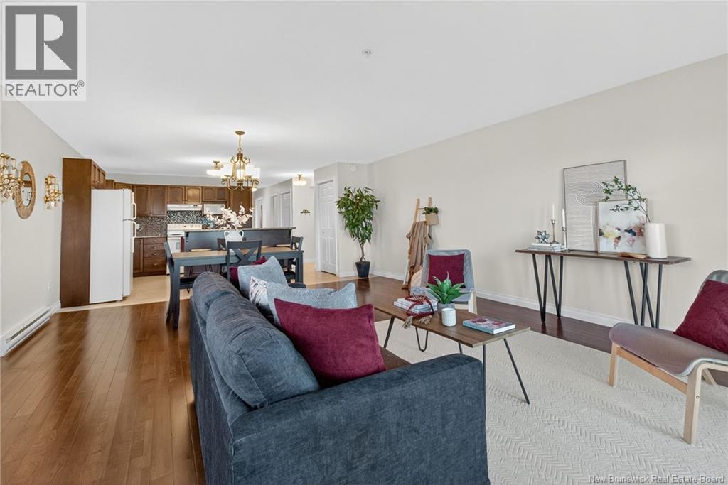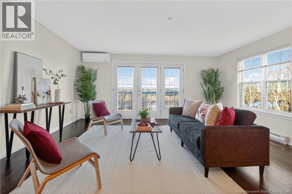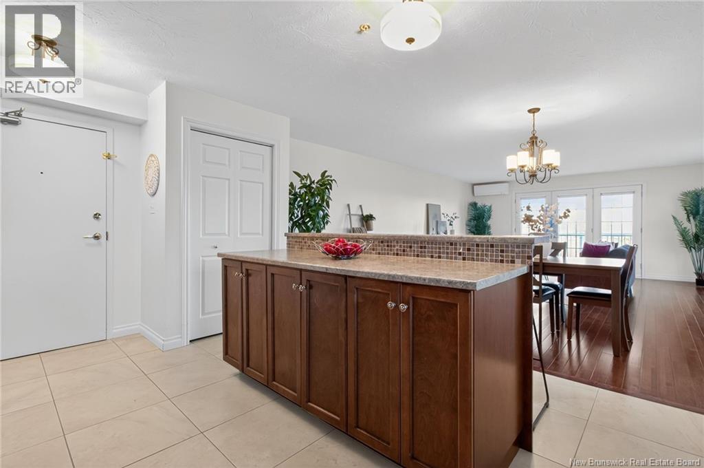 Welcome to this beautiful open-concept condo where comfort meets convenience. Flooded with natural light, the spacious kitchen, dining, and living area is the heart of the home, featuring a large island, abundant cabinets, and generous counter space. Step out onto the balcony to take in breathtaking views of the Petitcodiac River and the city skyline. Down the hall, youll find a laundry/utility room, a full bathroom, and two bedrooms, including a primary suite complete with a walk-in closet and a private balcony overlooking the golf course, your own serene retreat. Located in a secure building with underground parking and additional storage, this condo also offers a fitness room, a welcoming common area, and convenient visitor parking. Situated in a great location close to all of Riverviews amenities, this home has it all and offers an easy, low-maintenance lifestyle! (id:34572)