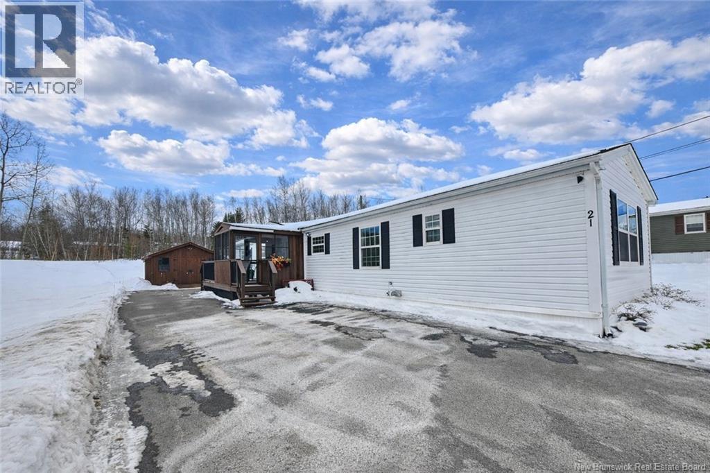 Welcome to this well-maintained 3-bedroom, 2-bathroom mini home located in the desirable Maple Village community in the beautiful town of Grand Falls, just minutes from the golf course, walking & biking trails and close to all amenities. This mini home offers a functional layout with a spacious primary bedroom featuring a walk-in closet and private ensuite, plus two additional bedrooms perfect for family, guests, or a home office. Enjoy the outdoors with a covered screened-in porch and a front deck, ideal for relaxing or entertaining. The property also includes a storage shed and a newly built insulated she-shed with power, perfect for hobbies or extra storage. The mini home also has insulated skirting for improved efficiency, and all appliances are included, as well as the couch, making this a true move-in ready opportunity. Located in a quiet, friendly neighbourhood close to the golf course, shopping, and services, this home is perfect for first-time buyers, downsizers, or anyone looking for low-maintenance living in a great location. The property is on leased land in Maple Village, with lot fees of $240 per month. Dont miss your chance to own this charming mini home in Grand Falls! (id:34572)