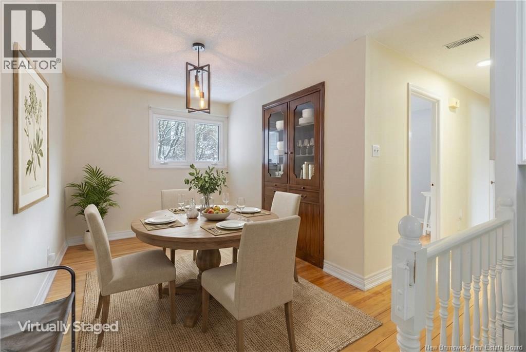 Welcome to 21 Westwood Dr, where classic charm meets smart updates in this bright and cozy two-bedroom 1960s bungalow perched on a hill in Silverwood, less than a 10-minute drive to downtown Fredericton. And at just the right time of year, you can even catch a peek of the rivera seasonal bonus worth bragging about. The main level leaves the 1960s in the rearview mirror (mostly). The bright white kitchen features original cabinets paired with newer countertops and sink, blending character with practicality. Just off the kitchen, the living room is filled with natural light from a large bay window overlooking the northside and is kept comfortable year-round with a ductless heat pump. Original hardwood floors run throughout the main level, adding warmth and timeless appeal. Two good-size bedrooms and a freshened-up full bathroom are tucked off the main hallway, with a generously sized dining room completing the space. Downstairs fully embraces its 1960s vibe, offering a large open-concept family/rec room and plenty of storage. An electric forced-air furnace in the unfinished storage room provides a supplementary or backup heating option. Outside, enjoy a covered deck, a great backyard, and a storage shed, rounding out a home thats full of character, functionality, and investment potential. Some Photos have been Virtually Staged. (id:34572)