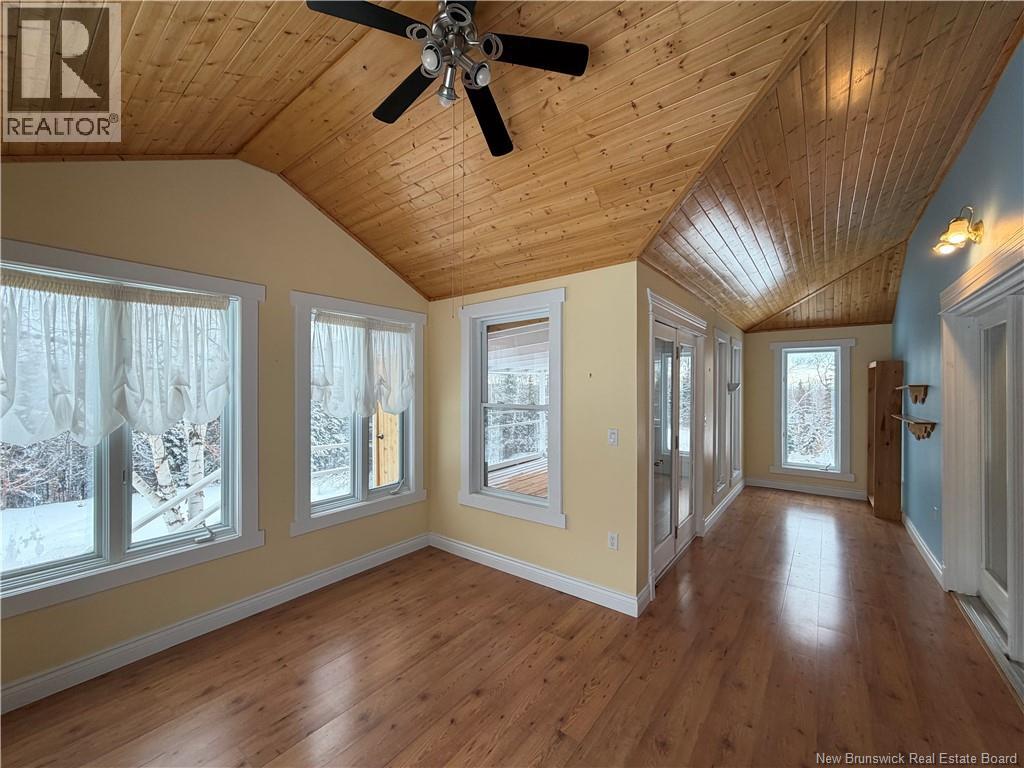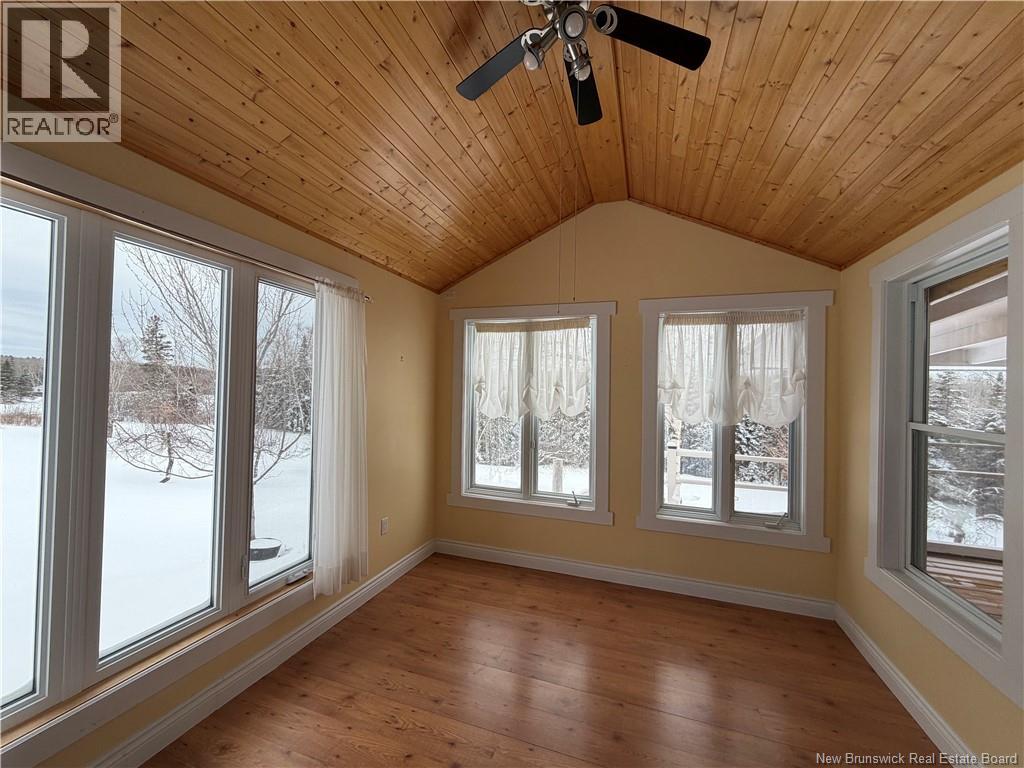 Amazing country property on the snowmobile and ATV trails, situated just outside of Robertville in Sainte-Louise this charming chalet style home has so much to offer on 5 acres of property its a nature lovers paradise! Private and comes with your own greenhouse, workshop, sunroom and screened in porch with summer kitchen set up ideal for enjoying nature at every turn. The cathedral ceilings and expansive interior is a breath of fresh air yet its cozy and welcoming with lots of light! Large open space, propane fireplace in the great room, custom kitchen with wood cabinet and interesting counter tops with multi wood finishes, island for guests to join you while preparing meals. Main floor bathroom with large shower. Access off the kitchen area to the sunroom and screened porch overlooking the back gardens. Upstairs is the primary suite with jetted tub and bathroom, overlooking the main floor complete with skylight to watch the night sky! Downstairs is finished with 2 additional bedrooms (one non conforming) laundry area, plenty of hobby space and utilities all housed down here. The workshop/garage with loft area offers more opportunity for someone to use as a hobby space or maybe develop as a little airbnb rental space? What a spot to rent out to snowmobiles? Or maybe just a great shop to keep you or own toys! This property offers unlimited potential, its a must see as its so tranquil and peaceful you will fall in love! Come see! Power equalized $319 (id:34572)