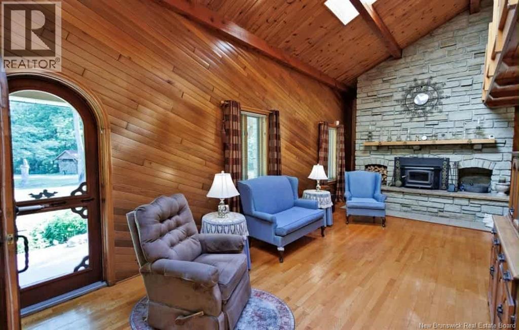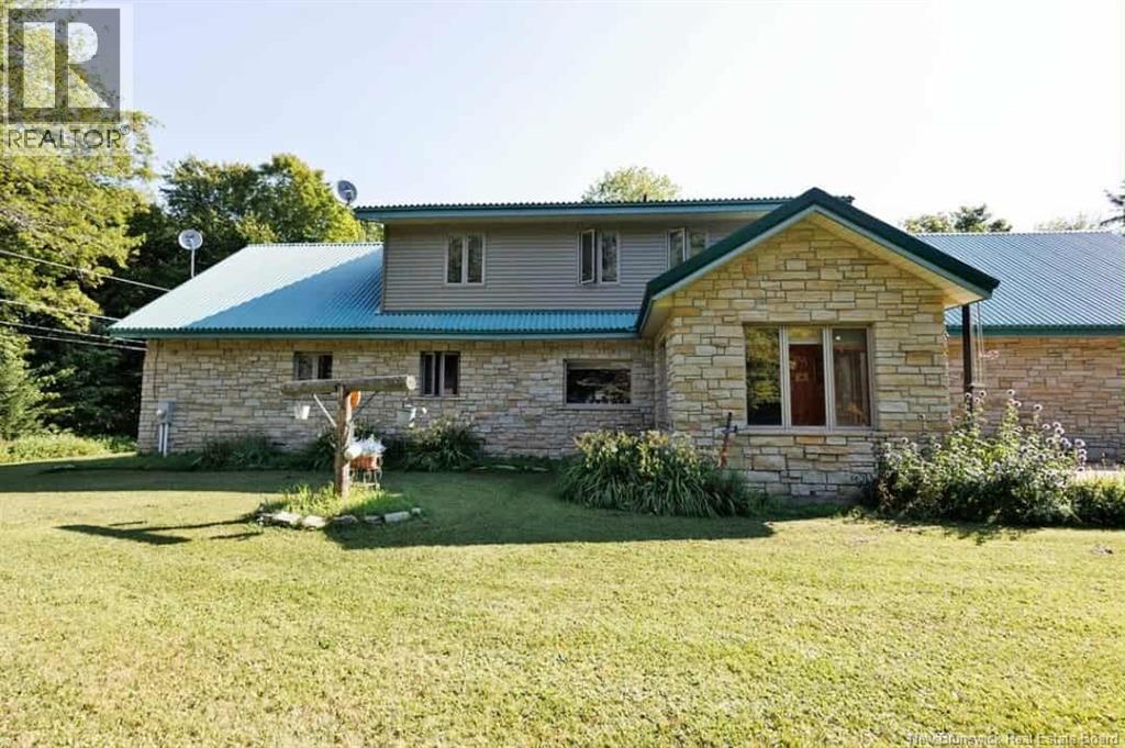 Nestled in the serene woodlands of St. André, this exceptional stone residence offers timeless craftsmanship, privacy, and refined comfort. Surrounded by nature, the home provides a peaceful retreat while remaining conveniently close to Grand Falls and major routes. The spacious layout features multiple bedrooms and bathrooms with open-concept living areas ideal for family life and entertaining. A striking stone exterior showcases enduring quality, while warm architectural details enhance the homes character throughout. The gourmet kitchen includes custom cabinetry and generous counter space, flowing seamlessly into bright living and dining areas with large windows overlooking the forest. The main floor primary suite offers privacy and comfort with an ensuite bath and walk-in closet, complemented by three additional bedrooms. Outdoor living is highlighted by an expansive front porch and patio, walking trails, and ample space for gardens or recreation. Additional features include cozy fireplaces, vaulted ceilings, abundant storage, a large garage, and a wood/oil forced-air furnace with a substantial under-garage firewood storage room. The property also includes a large shop for equipment storage and a furnished guest cabin with wood stove. More than a home, this is a private woodland lifestyle retreat with space, charm, and lasting appeal. (id:34572)