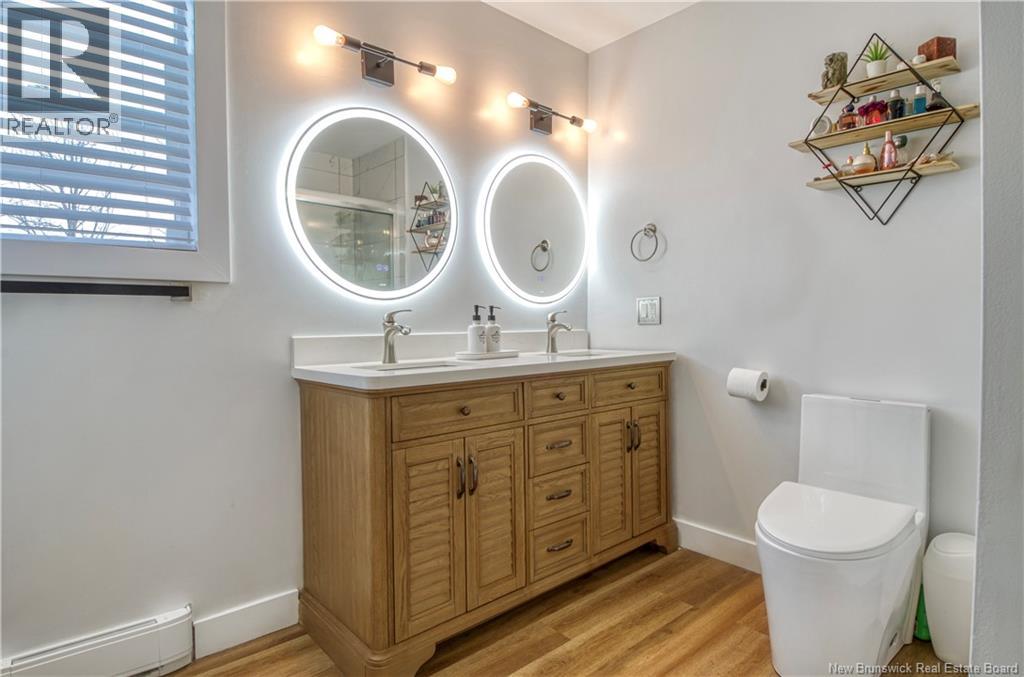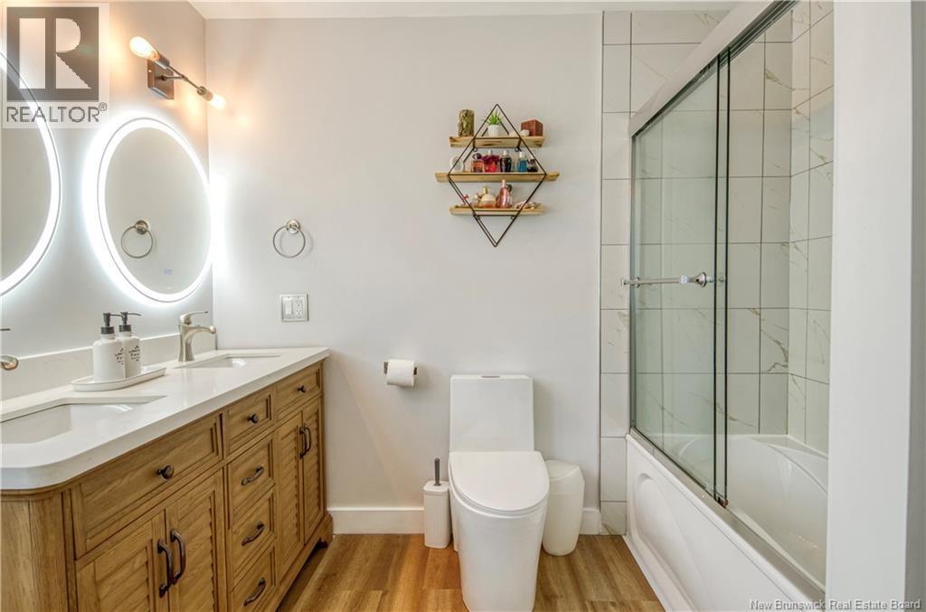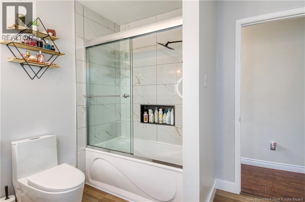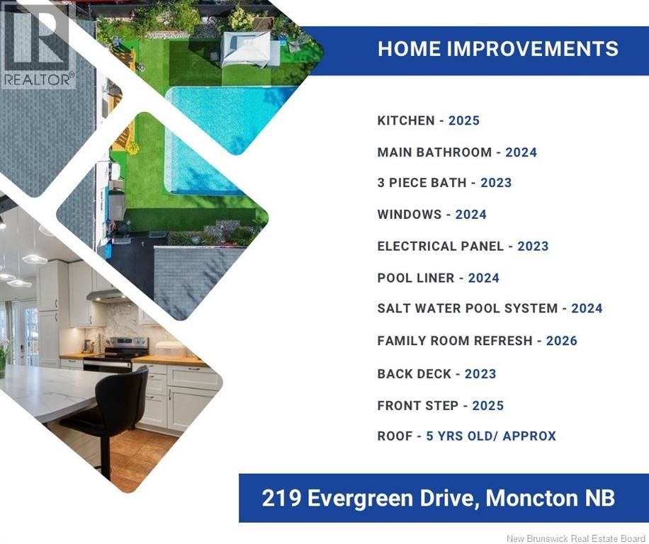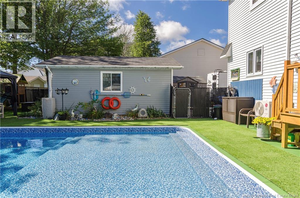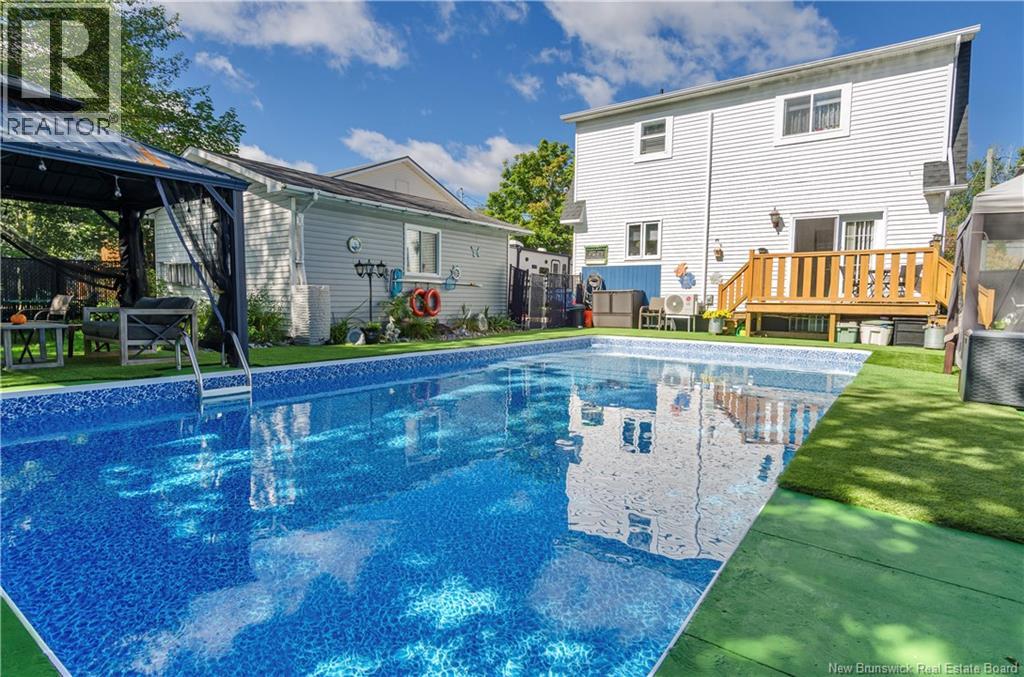 Welcome to Evergreen Park in Moncton NB a highly desirable family-friendly neighbourhood featuring a large community playground steps away, schools within walking distance and convenient access to the nearby YMCA. This home truly has staycation written all over it, with a stunning heated saltwater in-ground pool and backyard oasis designed for family fun, summer BBQs, and entertaining friends. The main floor showcases a beautiful new kitchen with a large island, perfect for prepping meals and gathering together. The dining area features patio doors leading to the deck overlooking the pool ideal for outdoor dining, relaxing evenings, and weekend get-togethers. A cozy living room completes the main floor. Upstairs offers a spacious primary bedroom, two additional well-sized bedrooms, and a stylishly renovated modern bathroom. The fully finished basement adds valuable living space with a newly renovated family room, a 3-piece bathroom, and a non-conforming bedroom suited for guests, hobbies, or a home office. Two ductless mini-split heat pumps provide efficient comfort year-round. The insulated garage is currently set up as a gym but can easily adapt to your needs. With many improvements over the past four years, this move-in ready home blends comfort, lifestyle, and outdoor enjoyment perfect for making lasting family memories. (id:34572)
