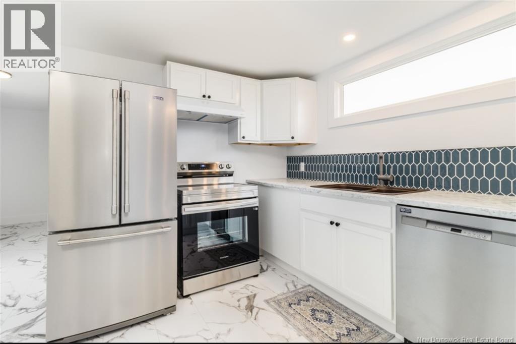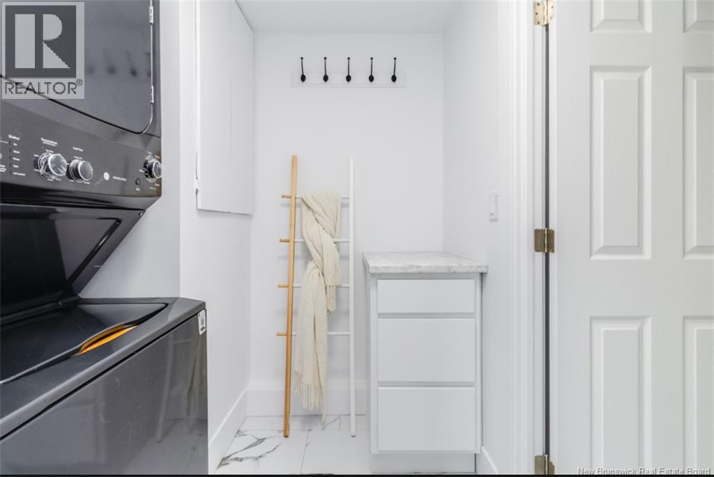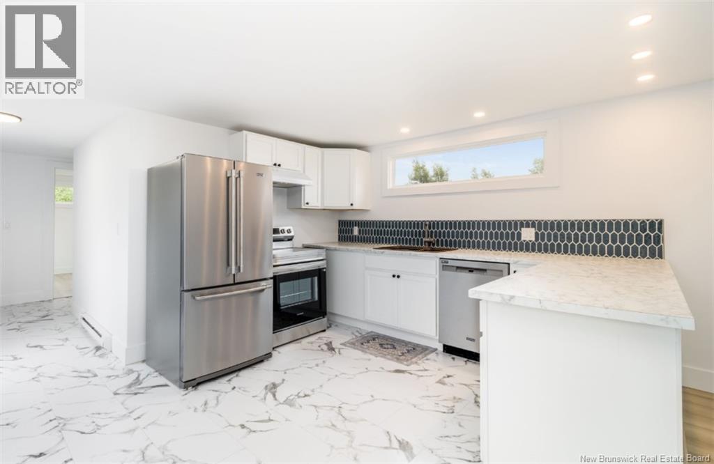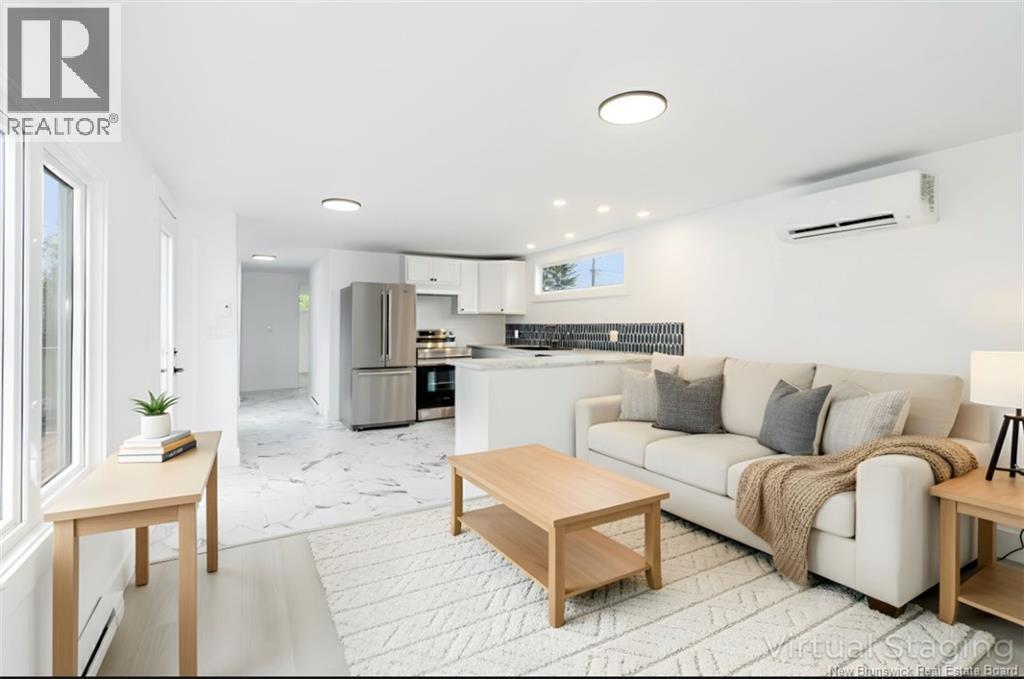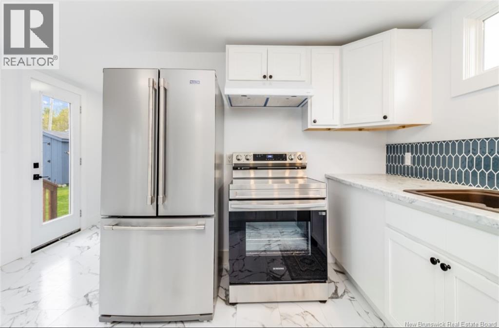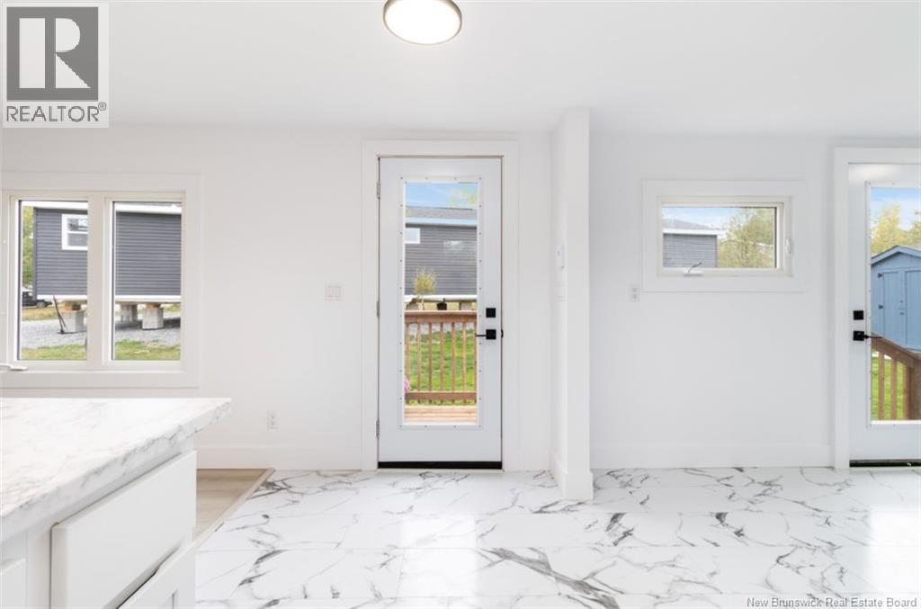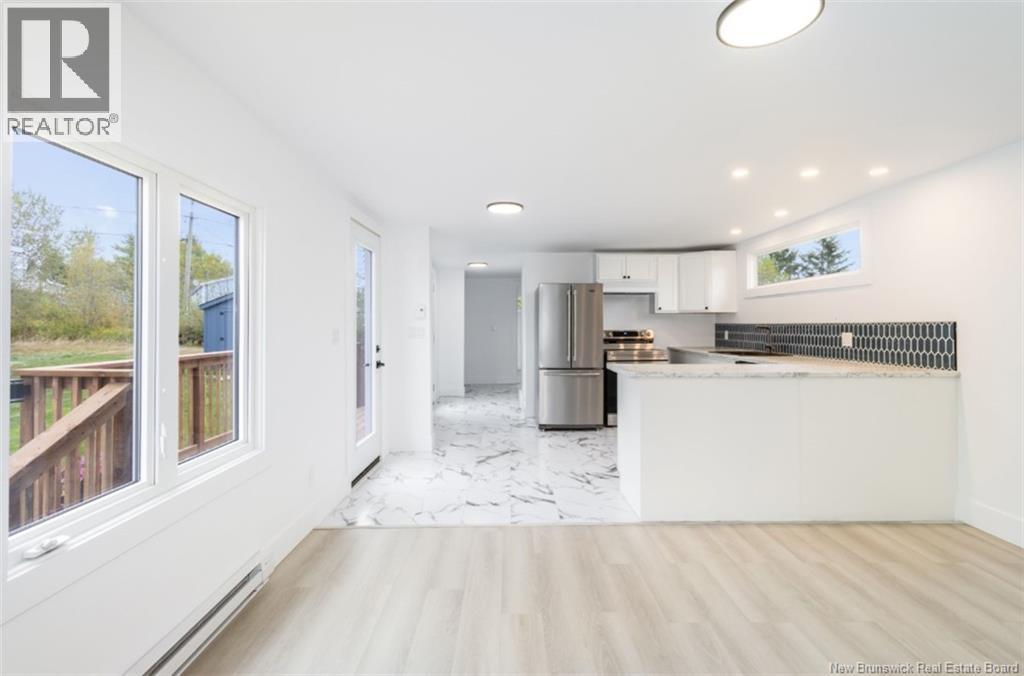 Discover this beautifully restored mini home in Hanwell Park, surrounded by modern mini homes. Crafted with care using all Canadian products, this custom mini showcases the largest Humble Home kitchen to date, ideal for culinary enthusiasts. It includes two spacious bedrooms, a large bathroom, and a dedicated laundry area for convenience. Year-round comfort is ensured with a new ductless heat pump. Interior updates include new drywall, R20 insulation, blown-in ceiling insulation, and waterproof vinyl flooring. The kitchen boasts new cabinets, countertops, and new stainless steel appliances, while the bathroom features a Maax tub and modern fixtures. The electrical system has been inspected with a 200 AMP panel, new wiring, and LED light fixtures throughout. Exterior upgrades include a new concrete block foundation, a metal roof, and new windows/doors. The landscaped yard features a new storage shed, grass, perennials, and a brand-new gravel driveway that adds to the curb appeal on this larger-than-normal lot. This home is a perfect blend of style, comfort, and functionality, making it an exceptional find in Hanwell Park. (id:34572)