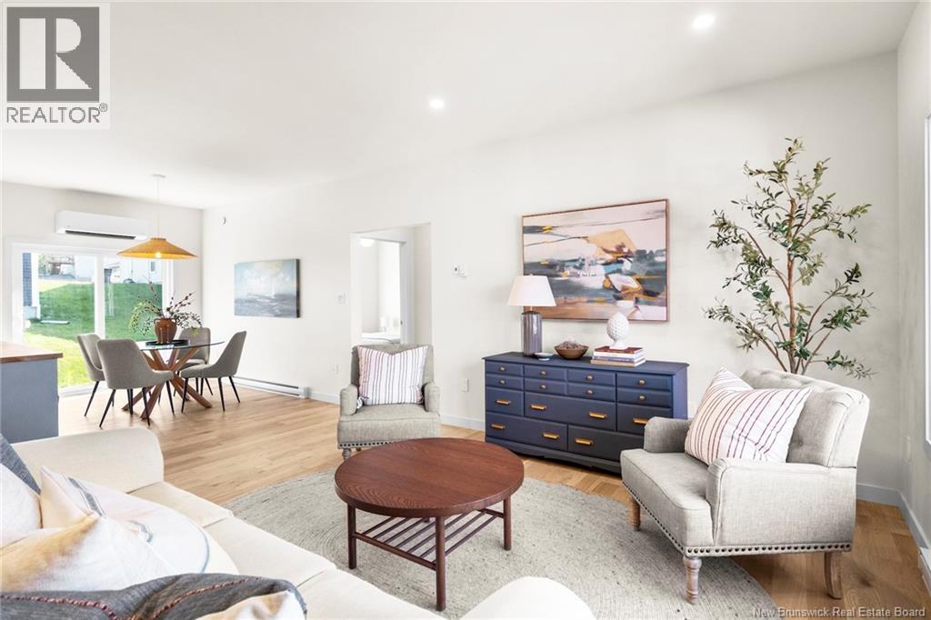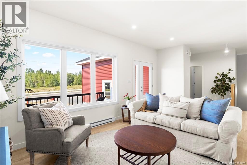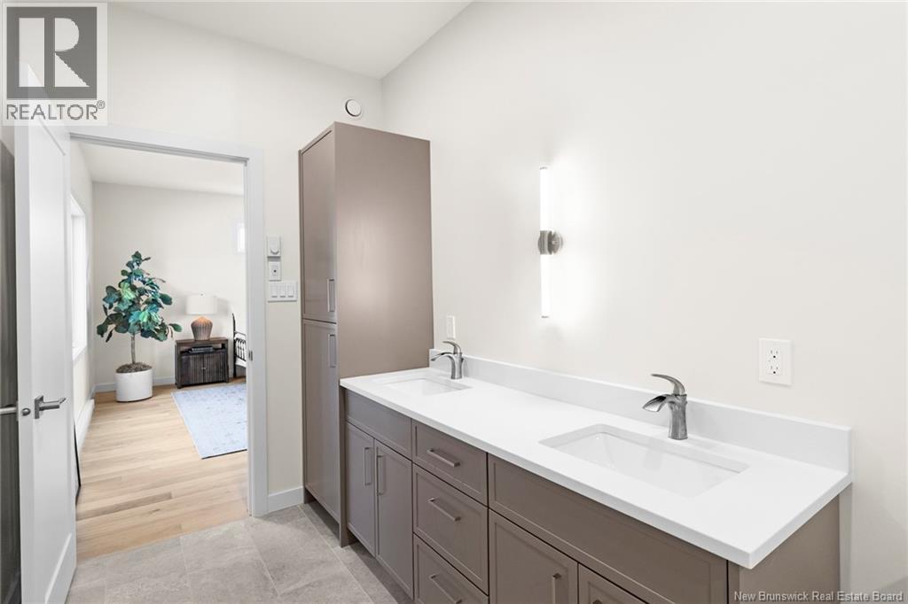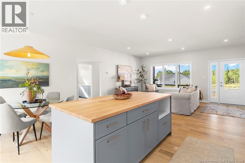 Welcome to 22 Lunney Street, an executive new-build bungalow located in Frederictons desirable Brookside West, one of the citys most sought-after family neighbourhoods. This beautifully designed home features 9' ceilings, wide-plank hardwood flooring, and a bright, open-concept layout perfect for everyday living and entertaining. The spacious living room flows into a modern kitchen with custom cabinetry, quartz countertops, and an oversized wood-topped island with a breakfast bar. The dining area accommodates a full dining set and provides access to the back deck and yard. Two generously sized bedrooms and a full bath with double quartz vanity are located on one side of the home, while the large primary suite is privately set on the other, featuring two closets and a full ensuite. A mudroom off the double-car garage, a separate laundry room, and ample storage complete the main level. The lower level is roughed in for a bathroom and offers space for additional bedrooms and a family room. Built on an ICF foundation and designed for energy efficiency, this home is located in the new Sunset Acres Elementary School catchment. Purchase price includes an allowance for a paved driveway and full landscapingmaking this a true turnkey opportunity without the hassle of building! (id:34572)