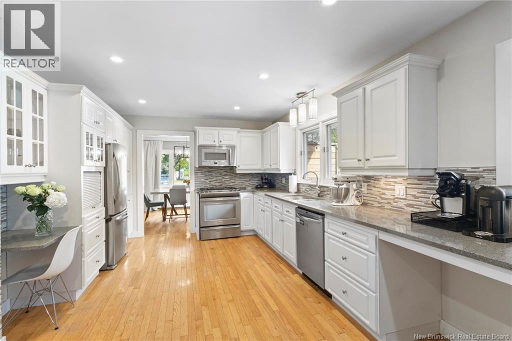 Longing for a slower-paced lifestyle in a calm neighbourhood? Welcome home to Sunshine Gardens, one of Frederictons most coveted areas. An idyllic family home sits on a larger-than-average city lot and offers timeless curb appeal with a covered front porch, perfect for those lazy summer evenings. Inside, the living room boasts a cozy vibe, with a natural gas fireplace as its focal point, and flows seamlessly into the dining area. A ductless heat pump keeps the main living space temperature controlled. The kitchen is the efficient hub of family activities, offering granite countertops, a gas stove, pantry with pullouts, built-in desk, and convenient laundry area. Thoughtfully designed storage spaces can be found throughout this quality-built home. A convenient mudroom with shiplap accents opens through garden doors to a private deck. The main level hosts two bedrooms, including a primary suite with its own ductless heat pump and ensuite with double vanity, corner soaker tub, & separate shower. The lower level is ideal for older children with a family room, rec room, third bedroom, full bath, and abundant storage. Outdoors, enjoy a detached garage, multiple perennial beds, a generous yard, and a paved driveway for kids play & additional parking. The perfect downtown location - walk to ODell Park, the Botanical Garden, Wilmot Park and Frederictons extensive trail system. Close to schools, shops, and the waterfront along the Saint John (Wolastoq) River. (id:34572)
