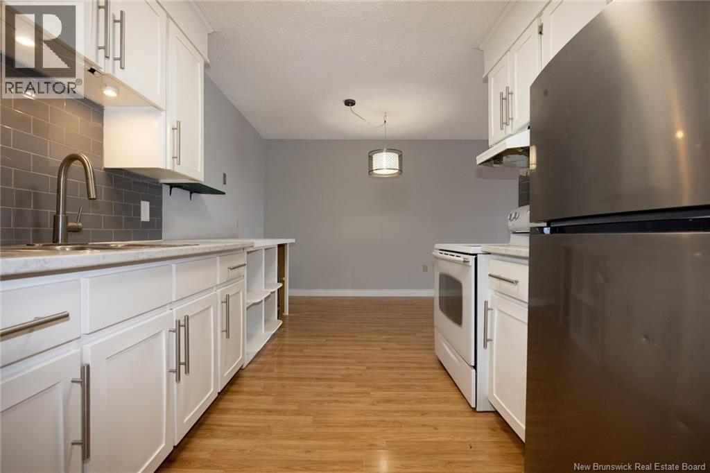 Fabulous 2 bedroom, 1 bathroom condo overlooking the beautiful Wolastoq/Saint John River. This unit offers an updated galley kitchen that opens to the dining area, and overlooks the living room with sliding patio doors to a balcony featuring water views. Down the hall is a full bath, a large primary bedroom, and good-sized second bedroom, both with views of the river. This unit also includes a storage room and has a storage locker and laundry in the building. This well-maintained condo has been newly painted throughout, updated lighting, smart thermostats, bathroom fan and is located on the bus route, just off the trail system and near all amenities. Taxes reflect non-owner occupied. (id:34572)