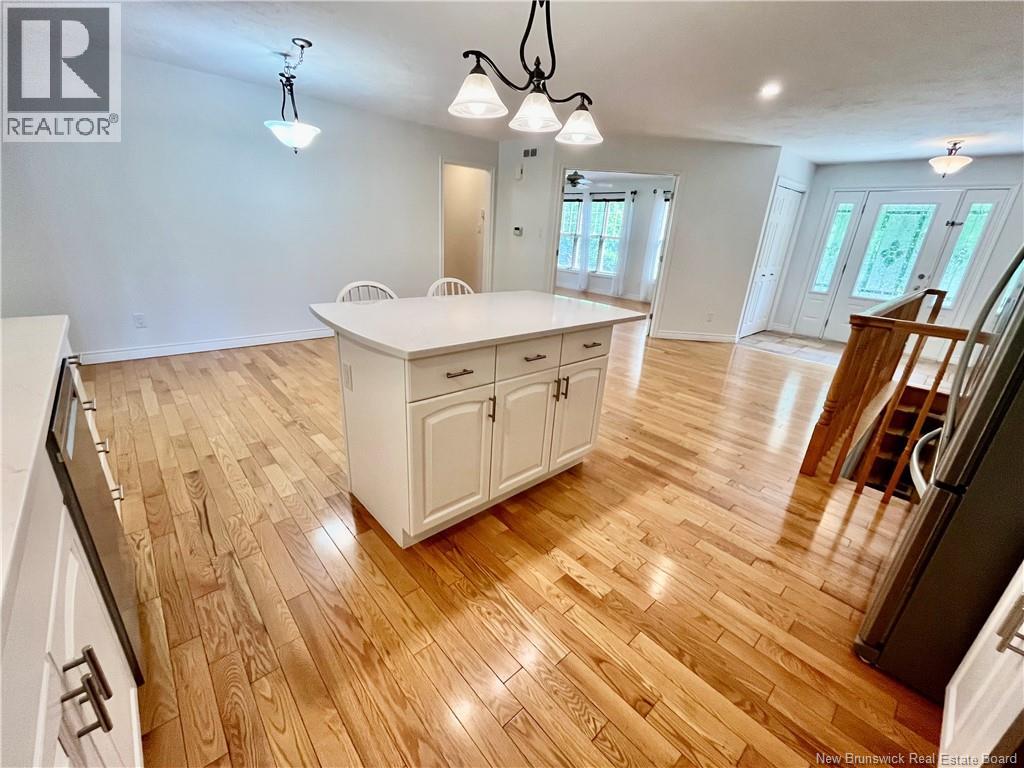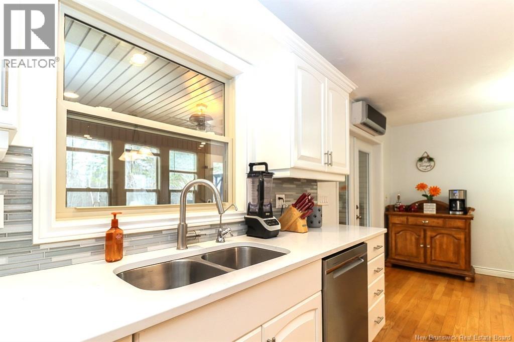Ready for a quick close! Discover this stunning executive bungalow just 15 minutes from Moncton, set on a beautifully landscaped 2-acre private lotperfect for peace, space, & privacy. Offering single-level living with a fully finished basement, its ideal for an in-law suite or additional living space. The expansive living room with wall of windows is impressive! An updated kitchen features quartz countertops, a chic backsplash, large central island, newer appliances, and ample cabinetryperfect for entertaining. Dining area flows into an enclosed 3-season sunroom, leading to a secluded backyard oasis, and deck that spans the length of the home, reinforced to support a future hot tub! Spacious, bright living room includes built-in surround sound speakers, making it perfect for relaxing or hosting guests. Primary bedroom is generously sized and bright, the 4-piece bath and separate laundry room finish this level. Downstairs offers a guest bedroom, full bath, and a large L-shaped family room and storage, with room to add another bedroom. In-floor heating runs through both levels and two ductless heat pumps provide year-round comfort. The attached triple garage (24 x 41) is equipped with custom cabinets, in-floor heating in one bay & a half bathideal for a workshop or hobby space. Immaculate and move-in ready, this home combines space, privacy, and modern comfort in a tranquil setting. Motivated seller! Schedule your viewing today and make this extraordinary residence yours! (id:34572)