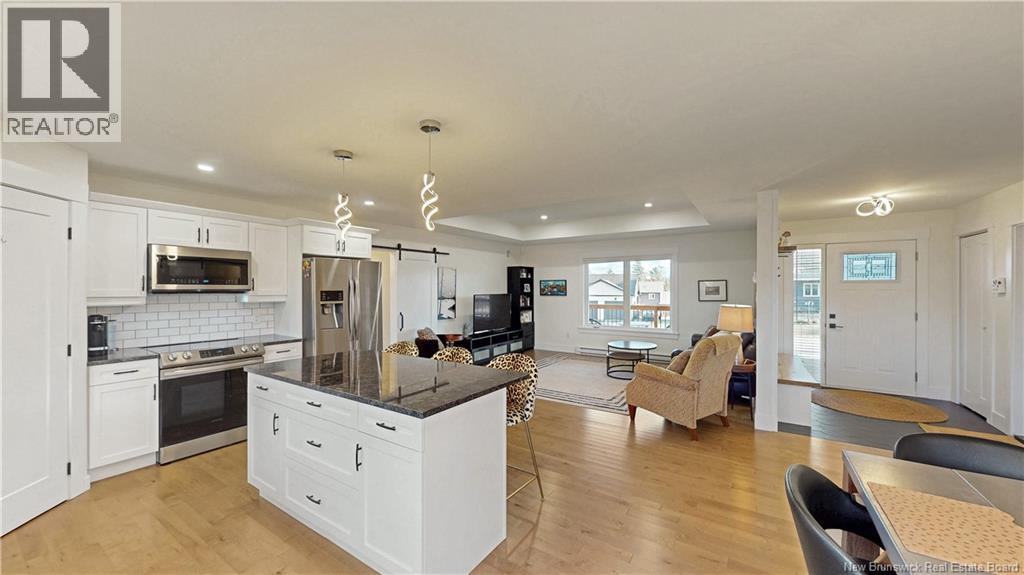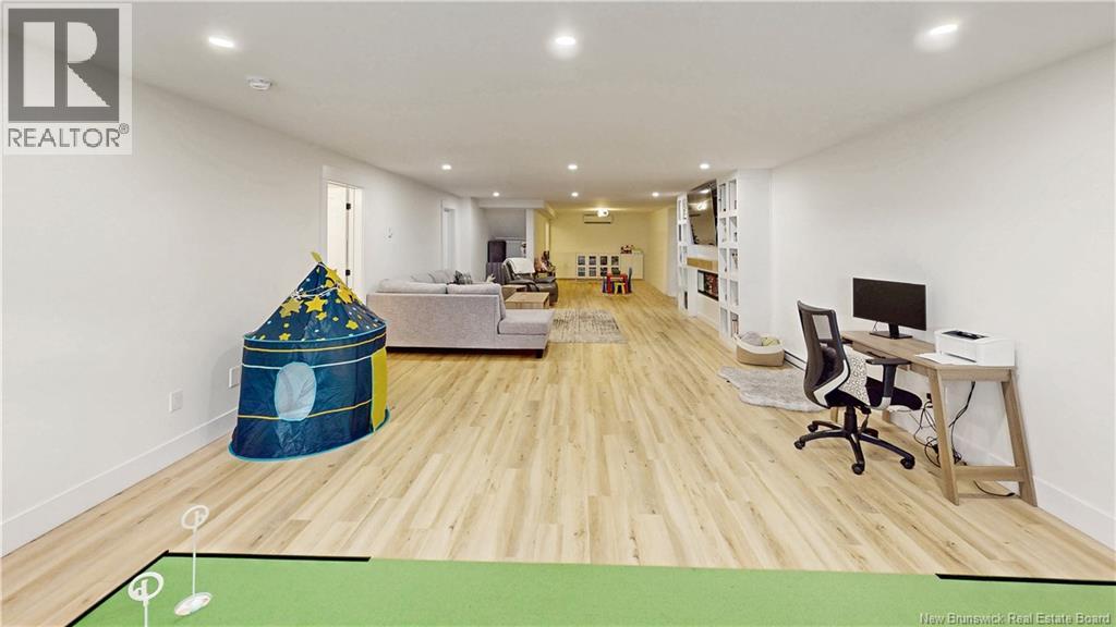 Welcome to a beautifully crafted three-and-a-half-year-old bungalow offering modern living in one of the areas most sought-after family neighbourhoods. With 3 bedrooms up and an 4th bedroom down, this home blends style, comfort, and unbeatable convenience. Situated steps from École des Pionniers School and just moments to Chris Saunders Elementary, you will love this location. Step inside to a bright, open-concept main level featuring a modern white kitchen with sleek black granite countertops, large corner pantry, gorgeous lighting, tray ceiling in the living room and beautiful light grey Mirage® hardwood flooring that ties the space together with a warm, contemporary feel. The private primary suite on one end separates space and offers both a walk-in closet and ensuite bath, providing a quiet retreat every homeowner appreciates. Downstairs, discover a wide-open blank canvasan impressive extension of the living space with endless potential. Finished with a custom built-in TV unit and electric fireplace, this level also hosts a 3rd bathroom, fourth bedroom, bright windows that pull in natural light, full laundry, and a dedicated utility room. Its the perfect layout for growing families, guests, or future expansion. Outside, the fully fenced backyard has been thoughtfully upgraded with landscaping, trees, and shrubs, giving you both privacy and curb appeal from day one. This is modern living in a prime locationclose to schools, parks, and all Quispamsis amenities. (id:34572)