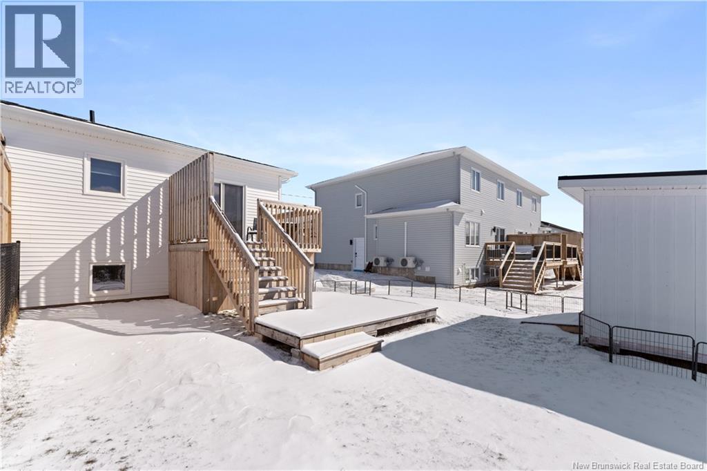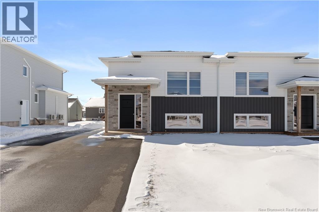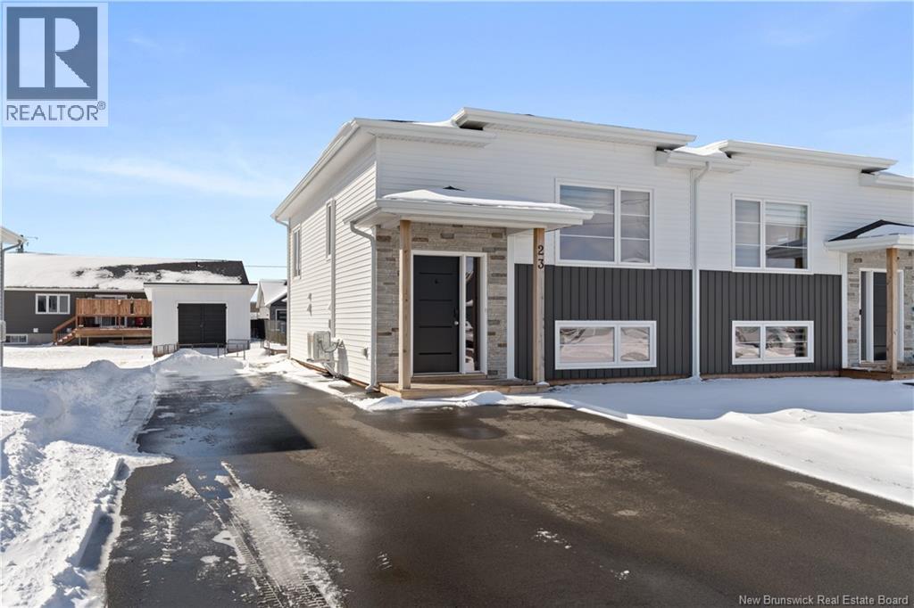 Welcome to 23 Mia Street, a beautiful turn-key semi-detached home located in the heart of coastal Shediac. This newer split-entry property offers 3 bedrooms and 1.5 bathrooms, combining modern style with everyday comfort, all just minutes from the beach, walking trails, and local amenities. The main level features a bright and inviting living room highlighted by a stylish accent TV fireplace wall. The kitchen is designed for both functionality and entertaining, complete with a center island and a seamless flow into the dining area. Patio doors lead to a back deck with desirable southern exposure, perfect for relaxing or hosting guests. A convenient half bath with laundry and included kitchen appliances complete this level. The lower level offers a spacious primary bedroom, two additional bedrooms, and a full bathroom, providing a comfortable and functional layout for family living. Additional highlights include an extra-wide paved driveway, fully sodded landscaping, a mini-split heat pump for efficient year-round comfort, and an owned hot water tank. Whether you're a first-time homebuyer, downsizing, or looking for a great investment opportunity, this move-in ready home offers excellent value in a desirable Shediac location. Dont miss your chancebook your private showing today! (id:34572)