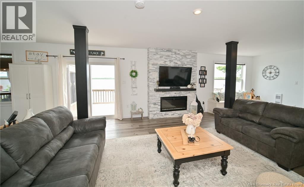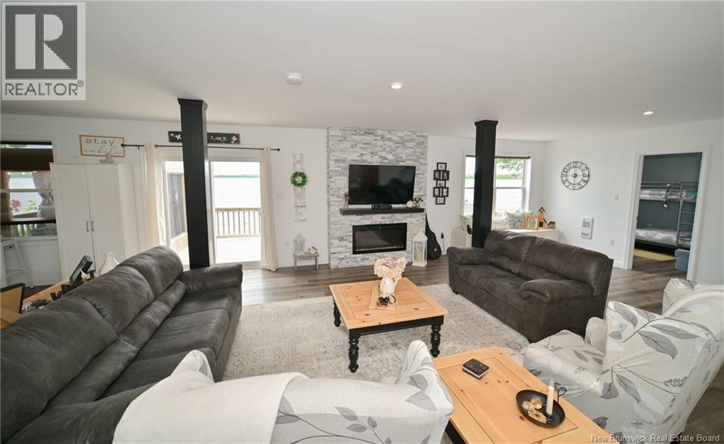 BUYER ALERT! NEW PRICE! $399,900!! BEAUTIFULL HOME that happens to be on a LAKE...HARVEY LAKE! 3 bedrooms, 2 baths, 1560 sq ft. of spacious, gracious living space with 150 ft +/- lakefront. This property is perfectly situated East - West providing 'morning sunrise' to start your day AND priceless 'evening sunsets' to complete your day. The home features an open concept kitchen/dining/living area highlighted by an electric heatilator-fireplace/accent wall and views of the lake. This level also has a bedroom, full bath/laundry. Upstairs has 2 bedrooms and another full bath. The landscaped lot has been thoughtfully developed with lake views in mind. A privacy deck 16'x16' + a boardwalk leading to the 8'x32' lakeside deck with a screened in 8'x8' room, accessible from the house, as well. This lake-living lifestyle offers an all in one; Year Round Residence/Recreational/Vacation Property. Also worthy of note; this property is connected to the village of Harvey Municipal Sewage Septic that services and is available to all Harvey Lake properties in & around Harvey Village. The nearby family friendly community of Harvey Village offers all the conveniences of City; Schools, Health Center, Post Office, RBC Bank, Pharmacy, NB Alcool Agency Store, Gas Bar, shopping and Historic Smith's Country Store, est. 1869. Easy 25 min. commute to Fredericton. Please view our photo gallery and video. Visit the Harvey Rural Community Website for more local area information. (id:34572)