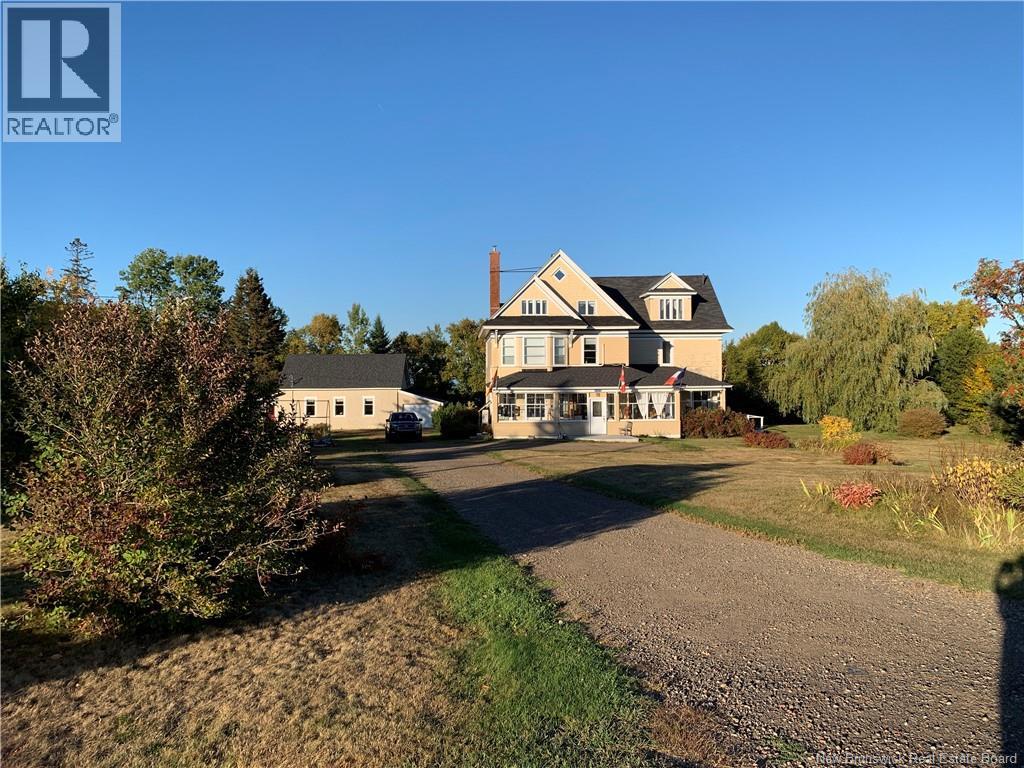 Set on nearly 3 acres in a peaceful rural setting, this unique property was formerly a B&B and offers incredible space, charm, and potential. New Mills Wharf can be viewed from the home and is within walking distance to it. The home combines history and functionality, making it ideal for a large family, multi-generational living, or business opportunity. Inside, the main floor features a generous living area, a den, a dining room with seating for ten, and a large kitchen. Each of the eight bedrooms include their own private bathroom, providing comfort and privacy. Original details such as a maids staircase, a wrap-around porch, and period features throughout highlight the homes timeless character. The grounds include mature landscaping with fruit trees, and a detached hall perfect for hosting functions or special events. With its scenic location, expansive layout, and endless possibilities, this property is a rare find. Measures are approximate. (id:34572)