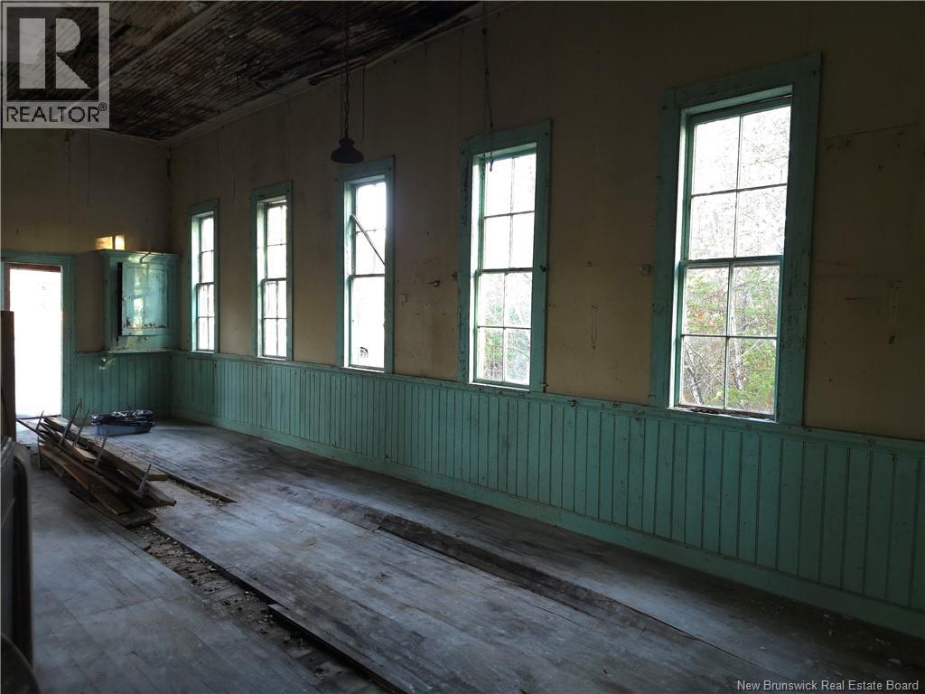 Own a piece of history with endless possibilities in the quaint little town of Harvey, New Brunswick. The solid structure was once the community's one-room school-house. In the stillness of its almost one-acre lot, you can almost hear the children still playing in the once play area to the right of the building. Enter through the front doors (one for girls; one for boys) into the 2 separate entryways, then on into the large open area with tall ceilings. With the original wainscotting, moldings, blackboards and windows still all in place, there's so much potential for a renovation true to its original character. A distillery? A new home? A home business with your apartment or loft in the attic? Many the visionary will see the potential in this building. (id:34572)