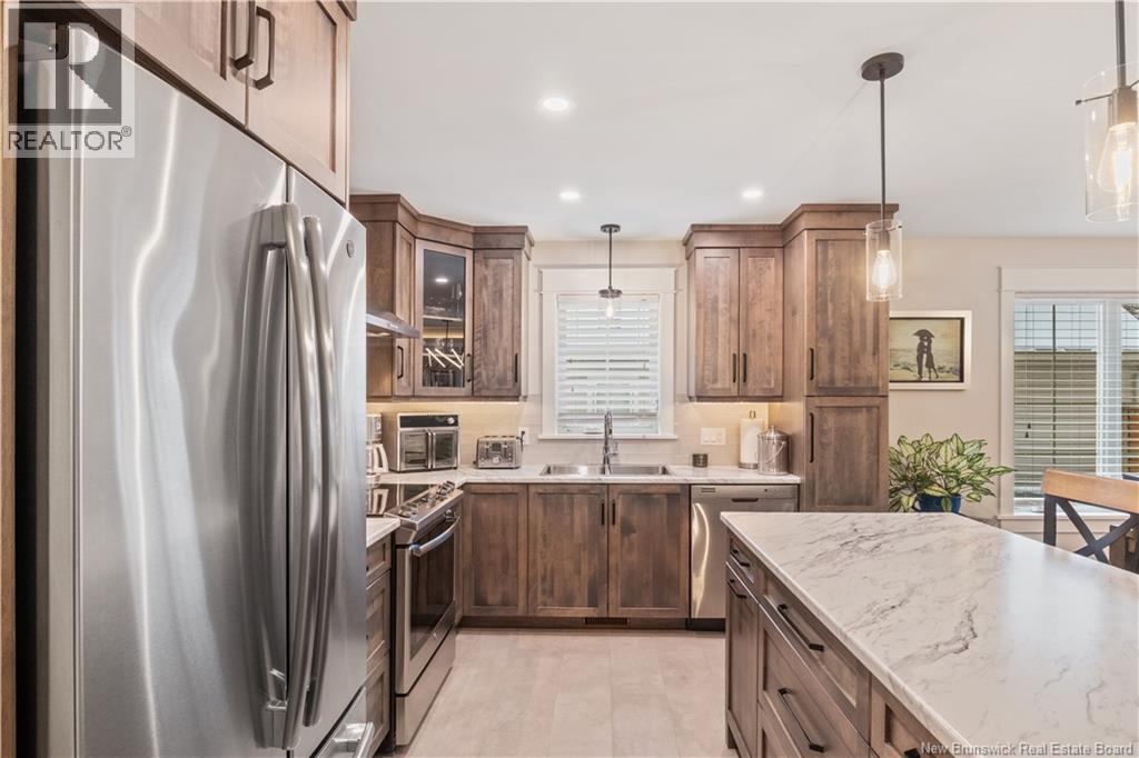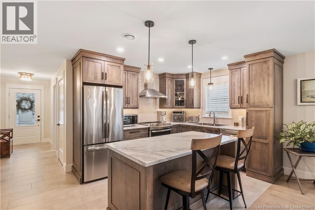 ONLY FIVE YEARS OLD!!!!!! Stunning end-unit townhouse located in one of Dieppes most popular neighborhoods. Upon entering, youll be welcomed by a beautiful foyer with a bedroom conveniently located to the right. The kitchen, dining, and living areas feature a bright open-concept layout. The kitchen offers dark cabinetry, a stunning backsplash, stainless steel appliances, and a large center island. The living room showcases a tray ceiling and provides access to a four-season sunroom. The primary bedroom is located on the main floor and includes a three-piece ensuite. This level also offers a full bathroom and a convenient laundry room. The finished basement adds excellent living space, featuring two additional bedrooms and a large family room. Outside, enjoy a back deck overlooking a treed backyard, providing both privacy and a peaceful setting. Call for more details. (id:34572)