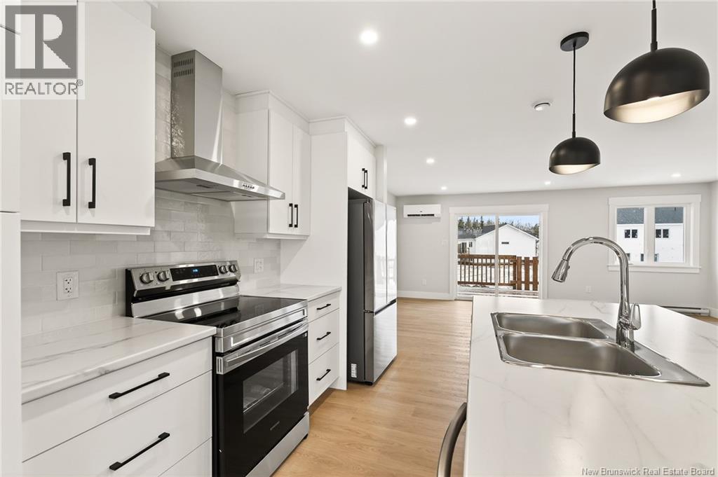MODERN END UNIT TOWNHOUSE WITH PAVE AND LANDSCAPING INCLUDED IN DIEPPE! This TURN KEY home is within walking distance to Ecole Le Marais et Antoinine Maillet, easy access to major highways, airport, daycares, walking trails and many other amenities. The main level offers an OPEN CONCEPT DESIGN with front dining room that flows into the CENTER KITCHEN WITH LARGE ISLAND and lots of cabinetry which overlooks the large living area. Patio doors lead you to the back deck where you can enjoy the backyard. Half bath completes this level. Down the hardwood staircase, you will find the front primary bedroom, full bathroom with double vanity, laundry closet, two additional bedrooms and storage room. These HIGH EFFICIENCY QUALITY built homes offers lots of extras including extra insulation in attic (R80), above grade windows (R24) and spray foam windows below grade, windows are triple paned for high efficiency, PAVED DRIVEWAY, FULLY LANDSCAPED, 8 YEAR LUX HOME WARRANTY AND MINI SPLIT HEAT PUMP for your comfort. HST rebate to be assigned to the vendor. Ready for OCCUPANCY and QUICK CLOSING. Call for more details! (id:34572)