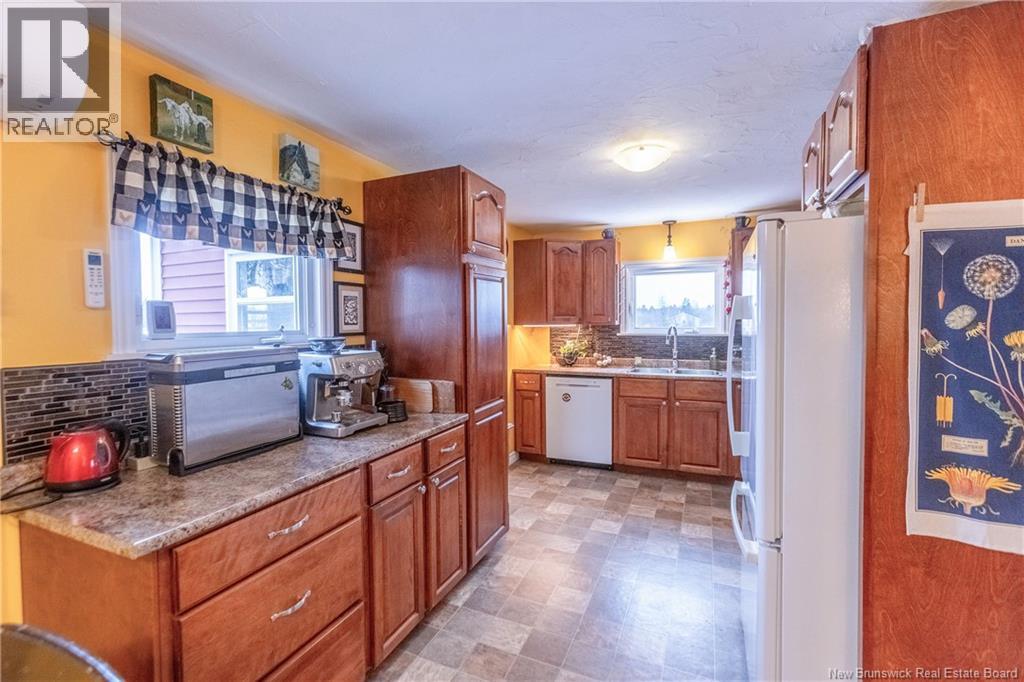 TURN-KEY BUNGALOW ON ALMOST AN ACRE! This home sits on a .94 acre property, and is just over 10 minutes to downtown Sackville. Many significant upgrades have been done to the home, along with established fruits/perennials.Through the front door is a bright living room with two exposures. This room leads through to the beautiful kitchen with fantastic cabinet/counter space, a pantry cupboard, and tiled backsplash. This opens into the large dining room with ductless heat pump. There are two spacious bedrooms on this level, as well as a full updated bathroom. The foyer at the back leads to the lower level, which is a blank slate - perfect for storage or future living space. This level has the laundry room, a cold-storage room, as well as a second ductless heat pump. The back deck overlooks the yard, complete with a workshop/storage building, a private view of the field beyond, and established gardens. Some established plants include: elderberry, raspberry, black currants, grapes, chokecherry, apples, lavender, high bush blueberry, etc (full list available to interested gardeners). If you're looking for a country lifestyle close to town - this property is a gem. Updates include: metal roof (2019), two ductless heat pumps, new 2-tank concrete septic (2022), bathroom fan (2022), dishwasher and washer machine (2023), wiring updates in barn, bathroom, bathroom (2024) rim joists insulated (2025). (id:34572)