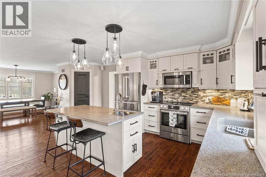 Welcome to this gorgeous Executive Bungalow in the sought after Liberty Estates. This custom-built home with 2+2 bedrooms and 3 1/2 baths offers high-quality finishes and impressive curb appeal. The home features an open-concept kitchen, formal dining, and living area with hardwood floors, ceiling-height cabinetry and an island with prep sink. The spacious primary suite includes a full ensuite with double sinks, double glass shower, and a large walk-in closet. A second bedroom, full bath, laundry room, and mudroom with half bath complete the main level. The lower level offers a large family room, 2 additional bedrooms, a 3rd full bath, cold storage, and a workshop with stairs leading to the oversized 28' x 28' garage, with workshop that has a roll-up-door. Comfort features include a central heat pump on the main level and two ductless units (downstairs & garage). Generator-ready. Enjoy the composite front verandah, composite back deck with cedar extension, paved driveway, private yard, gazebo-covered hot tub, and fire pit area. Only minutes to all amenities. A beautifully finished home perfect for families! (id:34572)