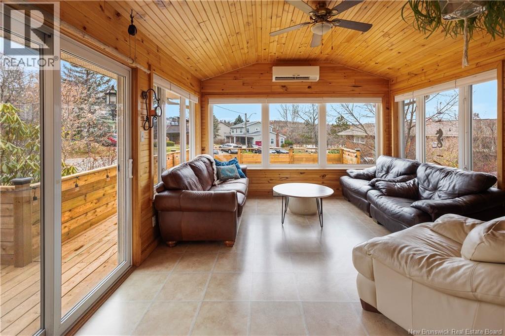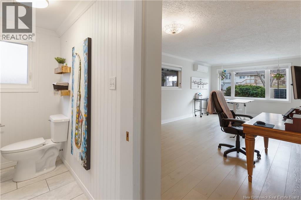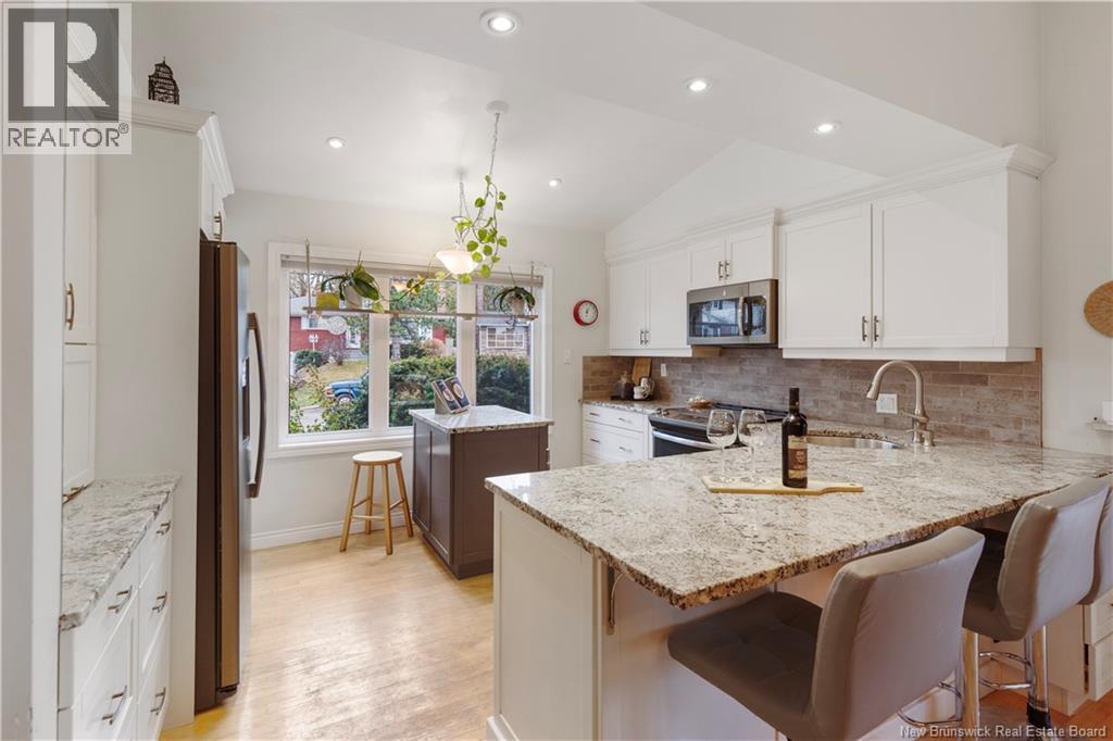 Welcome to this unique, move-in-ready 4-level backsplit in the highly sought-after New West End a perfect family home on a quiet street, steps from parks, schools and shopping. Vaulted ceilings and open-concept living welcome you home. The dining room boasts a fireplace and flows into the updated kitchen featuring a granite island. The spacious sunroom, filled with natural light, opens via patio doors to a large finished deck - your outdoor oasis. Upstairs offers two bedrooms and bathrooms, including the master bedroom with a walk-in closet. The standout 5-piece Jack-and-Jill master bath includes two sinks, a soaker tub, and separate shower. The lower levels deliver a large family room, third bedroom, 3-piece bathroom, dedicated office, and abundant storage space. Single attached garage + paved double driveway easily accommodates three vehicles. Relax in privacy on the backyard patio and enjoy the accompanying fire pit. Spacious, bright, and thoughtfully designed throughout this rare find checks every box for family living in one of Monctons best neighbourhoods. Book your private showing today homes like this dont last! (id:34572)