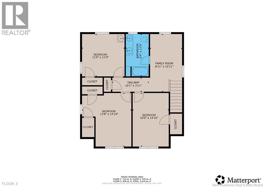 | Second Level | 5pc Bathroom | 6'4'' x 11'9'' |