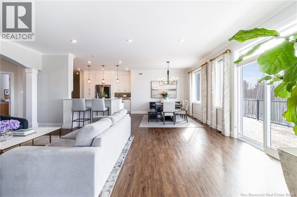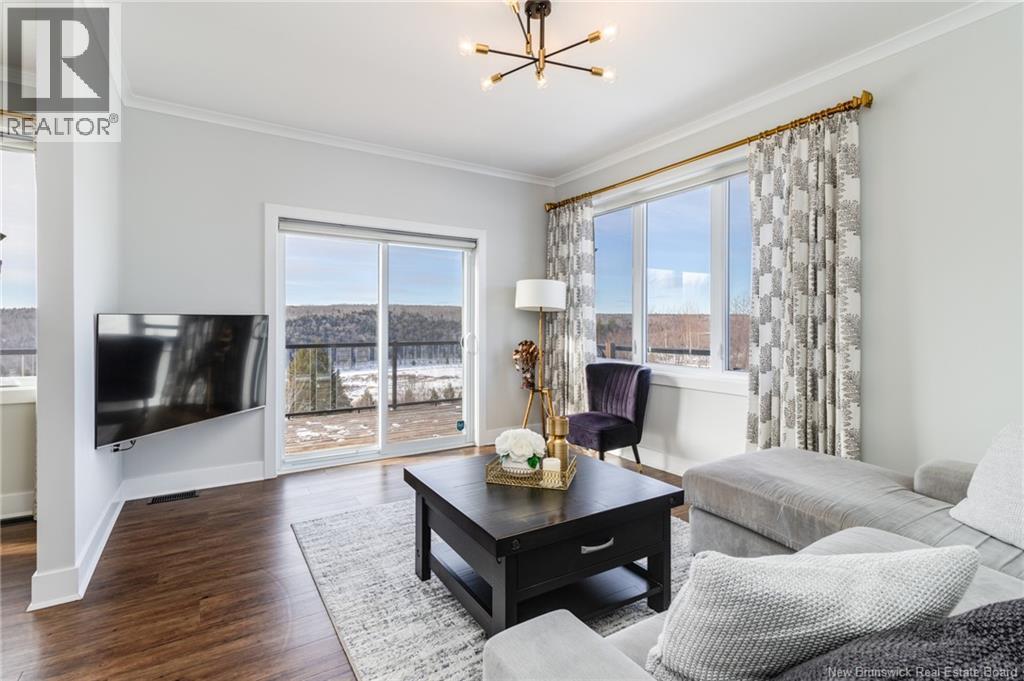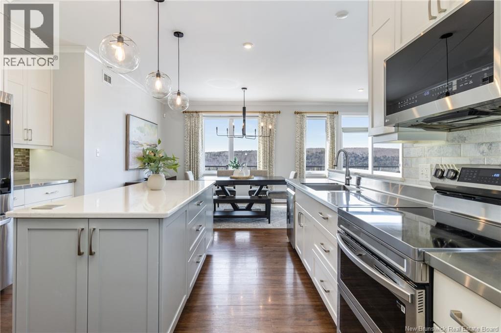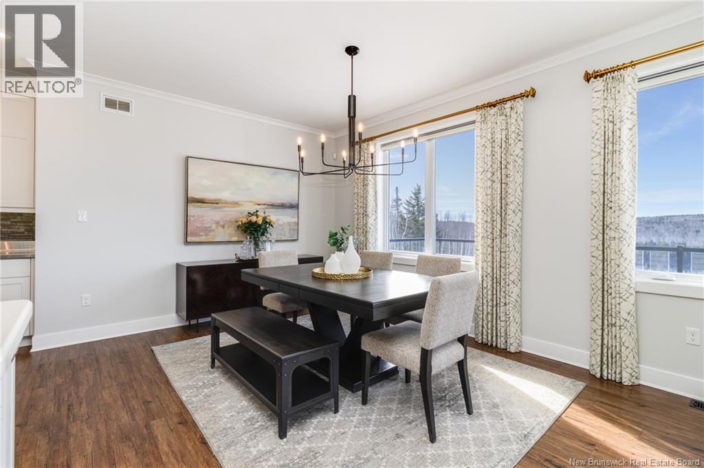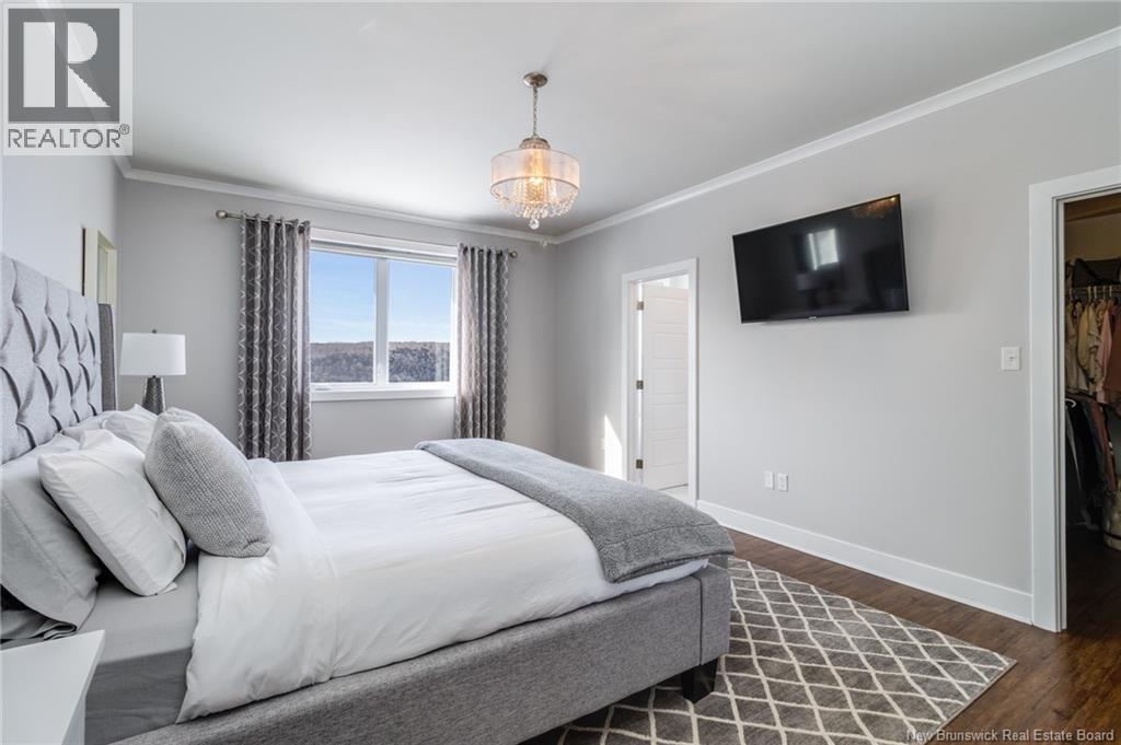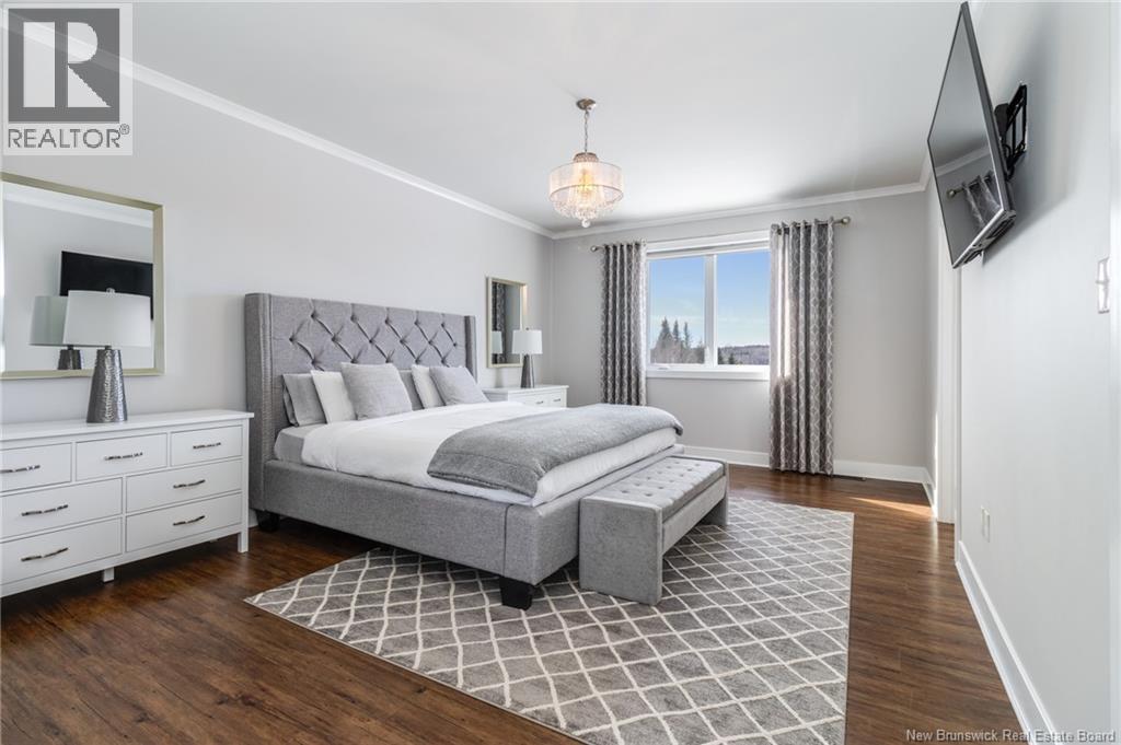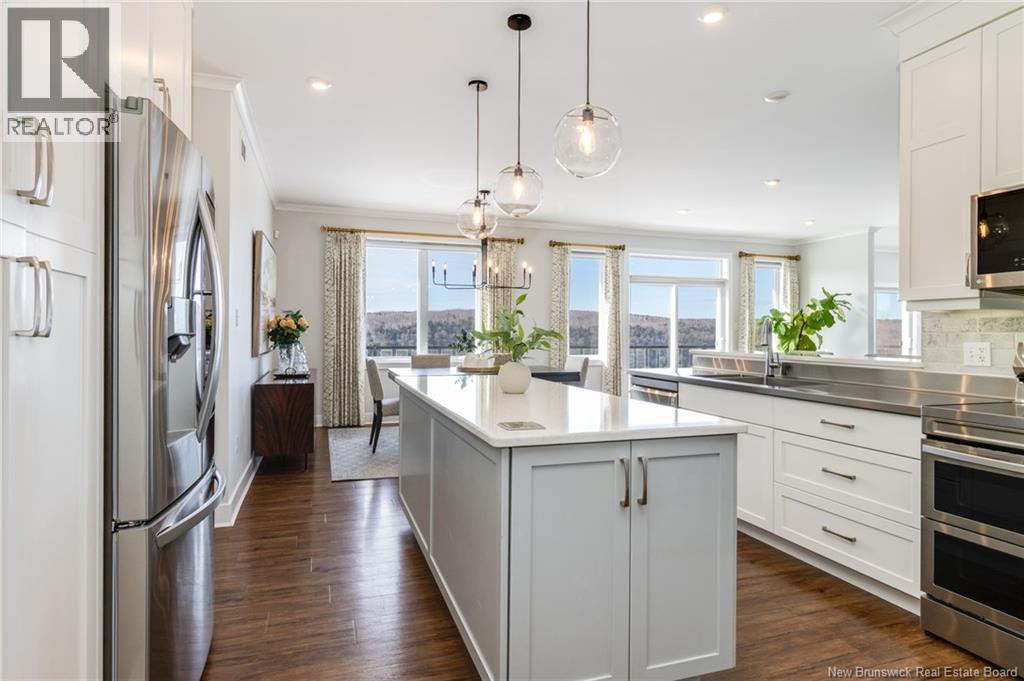 Nestled along the Nashwaak, this luxurious residence offers sweeping vistas of New Brunswicks beautiful landscape. The main floor features 9-foot ceilings, a modern white kitchen, a central island, and a bright dining area overlooking the view. The open living room includes a fireplace as its focal point, leading to a versatile bonus room with stunning views. The main office at the front of the house features a striking 14-foot cathedral ceiling and a large display window. The guest bedroom, with its own bathroom, is located on one wing, while the master suite occupies the opposite wing, offering a walk-in closet and ensuite bath. A formal mudroom off the garage and convenient laundry round out the main level. Downstairs, theres a spacious family room with walk-out access to the yard, a bar area, two bedrooms, a third full bathroom, and plenty of clean storage space. Furthermore, a fully integrated propane backup generator ensures continuous and reliable power supply without interruption. The two-acre property is distinguished by its meticulously maintained landscaping, interlock stone pathways, a retaining wall, and an intentionally designed garden. Numerous blue spruce and emerald cedar trees have been planted to enhance privacy. Additionally, the NB trail is situated at the rear of the property. The heated in-ground saltwater pool offers great views and includes an electric cover, making this property a genuine oasis (id:34572)