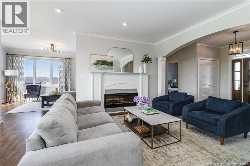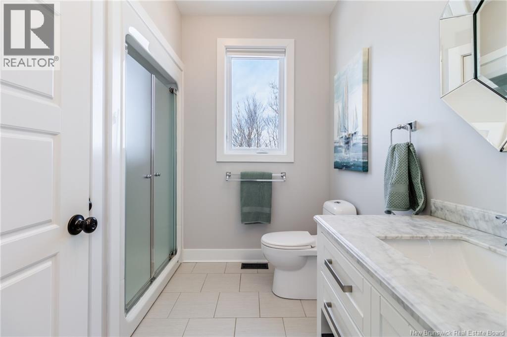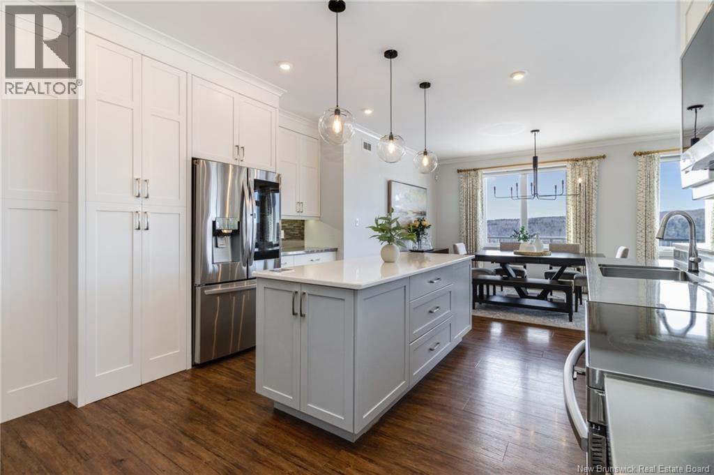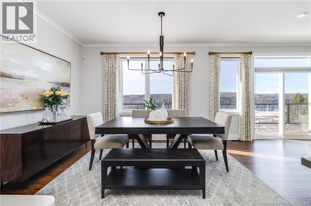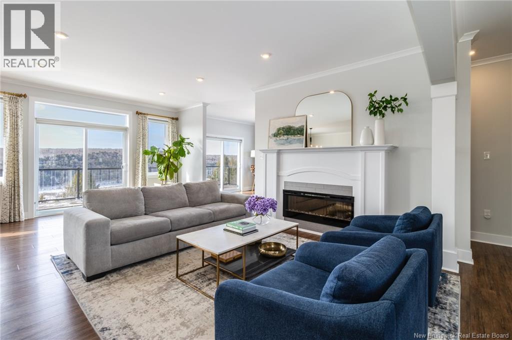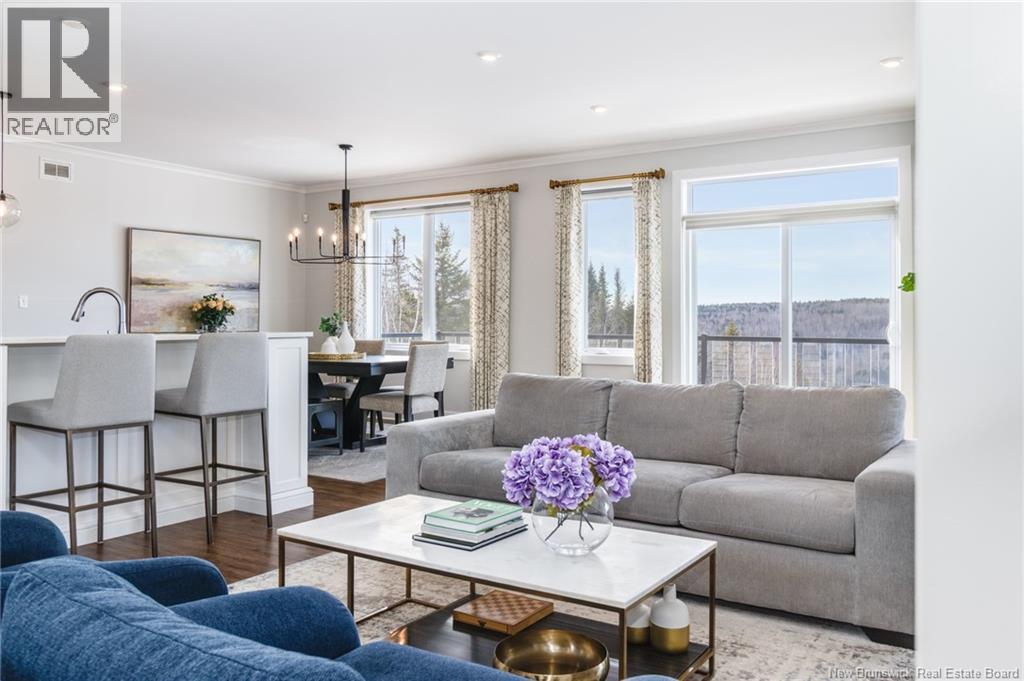Nestled along the Nashwaak, this luxurious residence offers sweeping vistas of New Brunswicks beautiful landscape. The main floor features 9-foot ceilings, a modern white kitchen, a central island, and a bright dining area overlooking the view. The open living room includes a fireplace as its focal point, leading to a versatile bonus room with stunning views. The main office at the front of the house features a striking 14-foot cathedral ceiling and a large display window. The guest bedroom, with its own bathroom, is located on one wing, while the master suite occupies the opposite wing, offering a walk-in closet and ensuite bath. A formal mudroom off the garage and convenient laundry round out the main level. Downstairs, theres a spacious family room with walk-out access to the yard, a bar area, two bedrooms, a third full bathroom, and plenty of clean storage space. Furthermore, a fully integrated propane backup generator ensures continuous and reliable power supply without interruption. The two-acre property is distinguished by its meticulously maintained landscaping, interlock stone pathways, a retaining wall, and an intentionally designed garden. Numerous blue spruce and emerald cedar trees have been planted to enhance privacy. Additionally, the NB trail is situated at the rear of the property. The heated in-ground saltwater pool offers great views and includes an electric cover, making this property a genuine oasis (id:34572)
