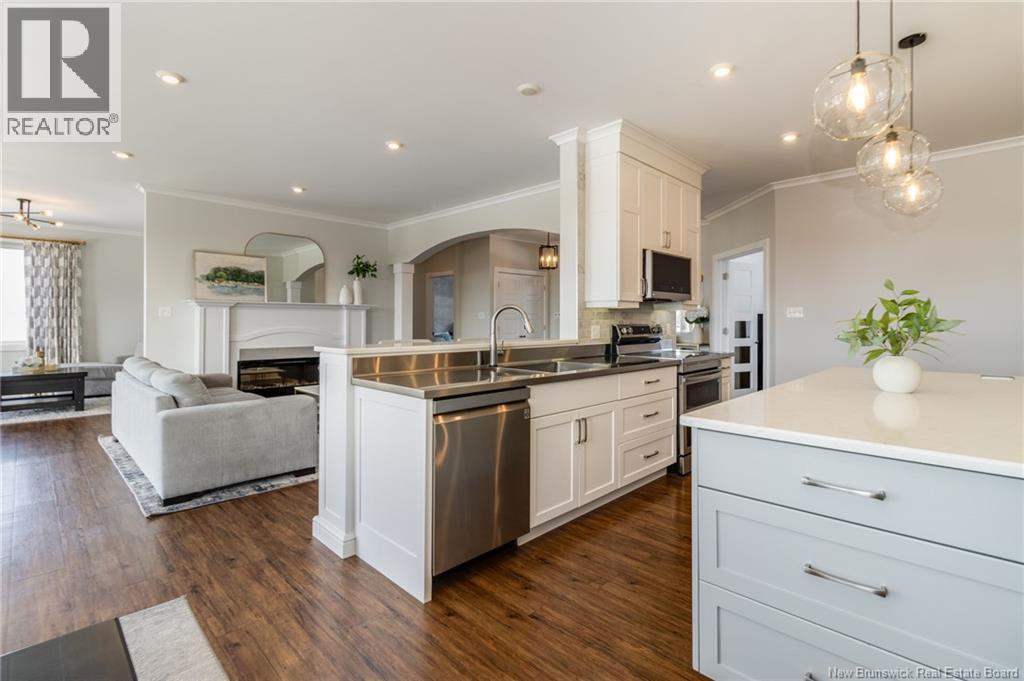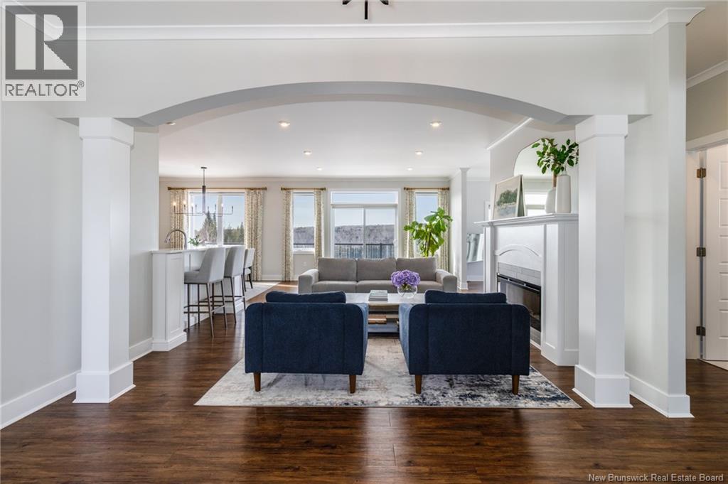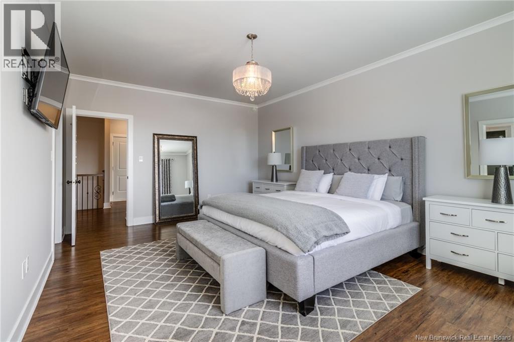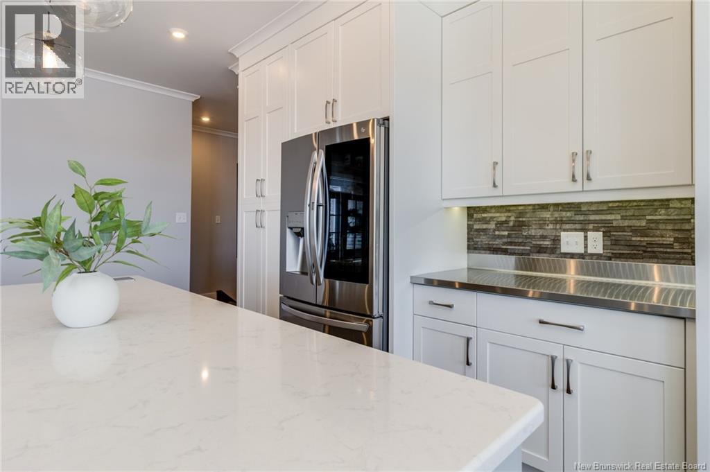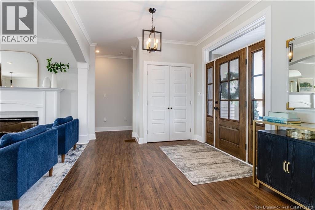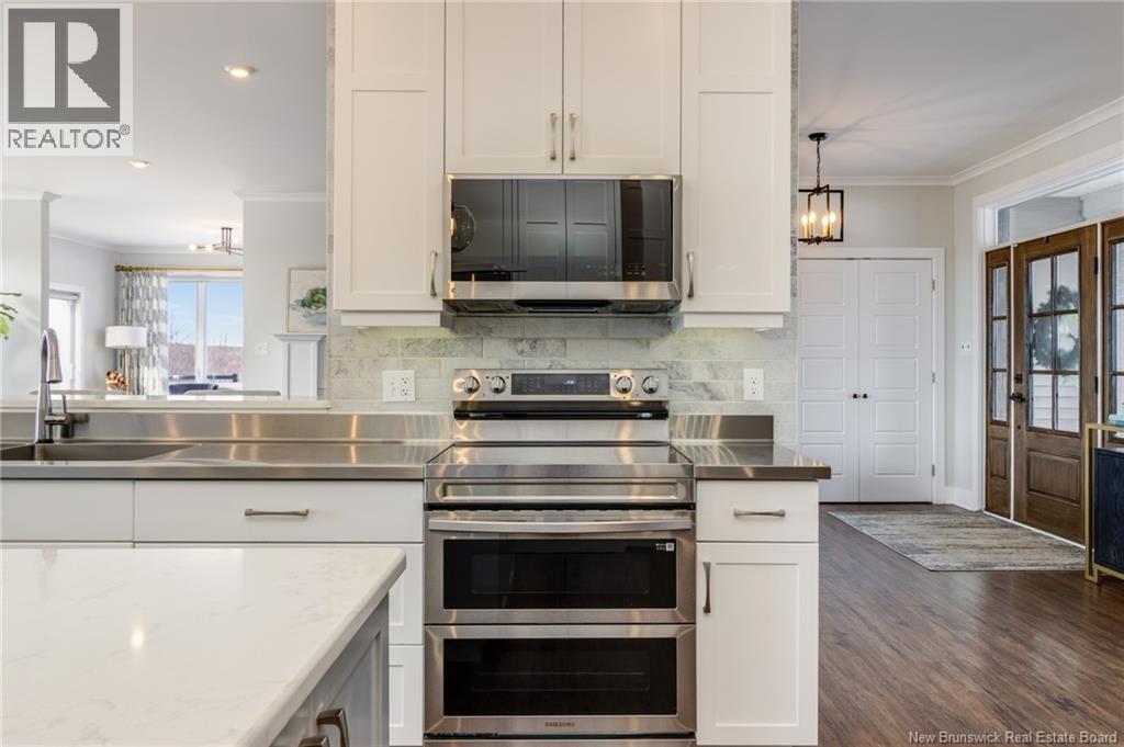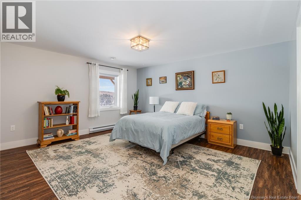 Nestled along the Nashwaak, this luxurious residence offers sweeping vistas of New Brunswicks beautiful landscape. The main floor features 9-foot ceilings, a modern white kitchen, a central island, and a bright dining area overlooking the view. The open living room includes a fireplace as its focal point, leading to a versatile bonus room with stunning views. The main office at the front of the house features a striking 14-foot cathedral ceiling and a large display window. The guest bedroom, with its own bathroom, is located on one wing, while the master suite occupies the opposite wing, offering a walk-in closet and ensuite bath. A formal mudroom off the garage and convenient laundry round out the main level. Downstairs, theres a spacious family room with walk-out access to the yard, a bar area, two bedrooms, a third full bathroom, and plenty of clean storage space. Furthermore, a fully integrated propane backup generator ensures continuous and reliable power supply without interruption. The two-acre property is distinguished by its meticulously maintained landscaping, interlock stone pathways, a retaining wall, and an intentionally designed garden. Numerous blue spruce and emerald cedar trees have been planted to enhance privacy. Additionally, the NB trail is situated at the rear of the property. The heated in-ground saltwater pool offers great views and includes an electric cover, making this property a genuine oasis (id:34572)