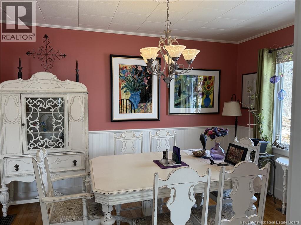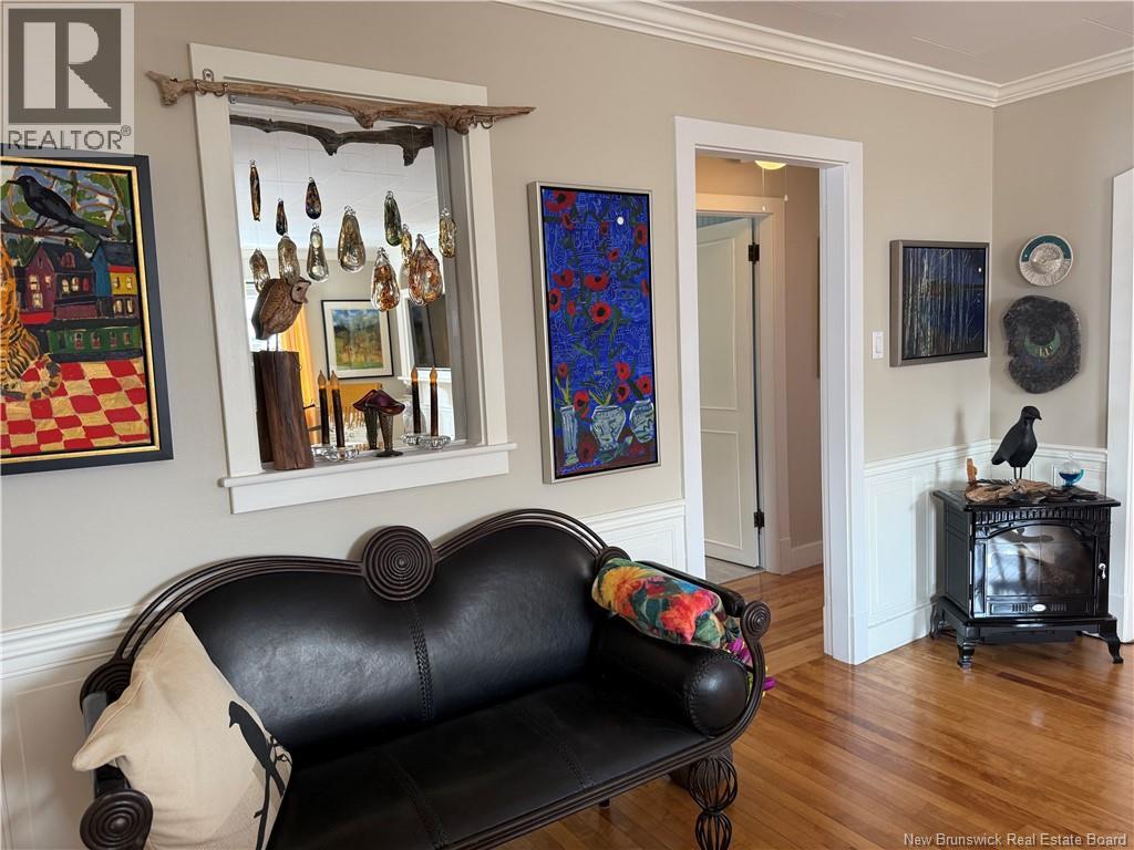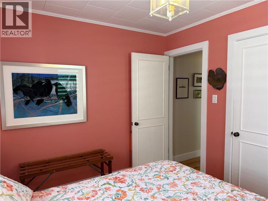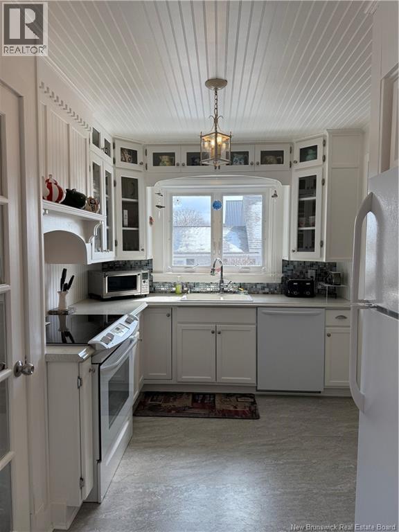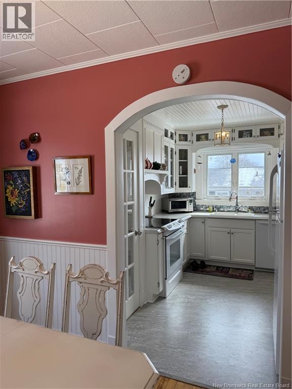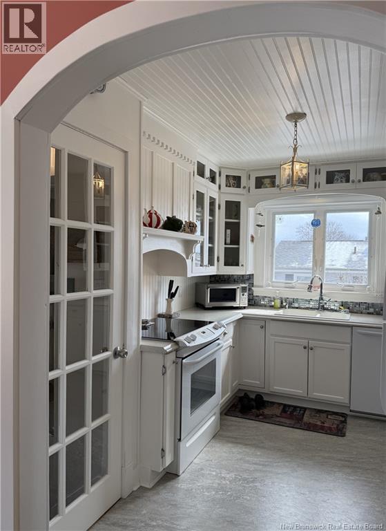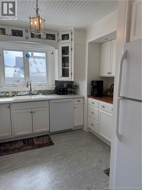 This charming cottage-like bungalow is nestled in the heart of St. Stephen in a residential neighbourhood, within walking distance to all amenities! Located on a newly paved street with brand new sidewalks, the home's curb appeal is attractive and inviting, with its matching red roof & shutters, the landscaped lot & white picket fence. Relax in matching gliding rockers on the front porch or on the rear deck overlooking the yard. Paved driveway, detached & insulated double car garage & shed for extra storage. The 2+1 bedroom home has been beautifully renovated in recent years with bright & modern changes by owners who have affectionately cared for the home. Refinished & new flooring, elegant lighting & many unique touches. Kitchen features attractive upper cabinets, built in appliances & special shelving for accessories & displays. Arched doorways lead to adjacent dining room & living room. This room is both comfy and cozy with its fresh colors, custom TV wall unit, shelves & cabinets. Enclosed front entry is welcoming, with closet & inner French door. Large built in cabinet in the hallway, could also be converted to space for stackable laundry. Two lovely bedrooms & full bath complete the main floor. Finished staircase to the basement, where you will find an additional room for a bedroom or den, laundry facilities, cold room & large storage area which can be re-purposed. Both levels heated with heats pumps & electric heat. Wonderful starter or retirement home! SEE VIDEO! (id:34572)
