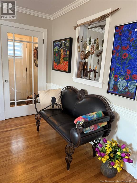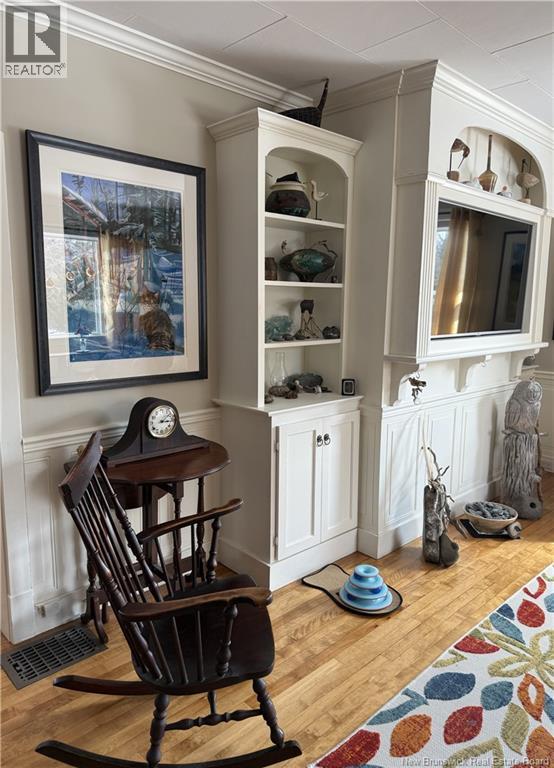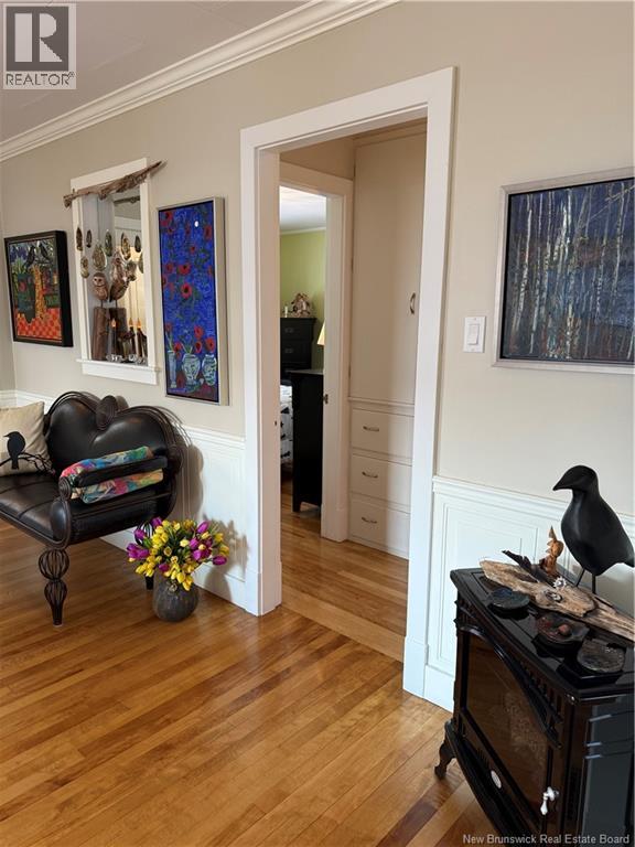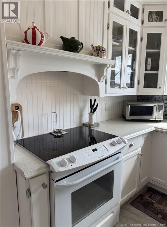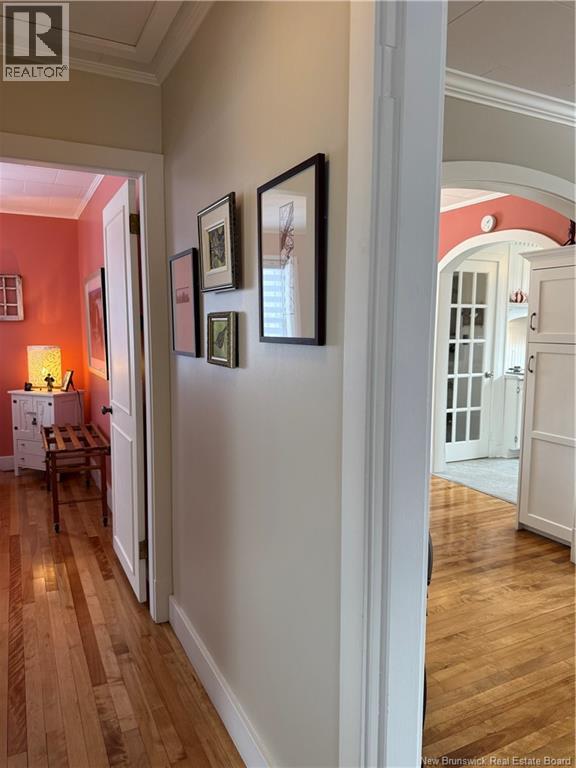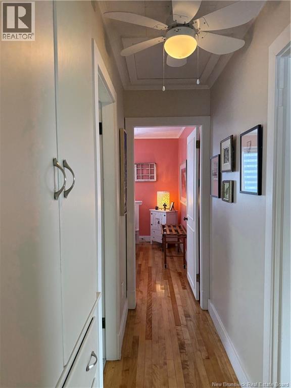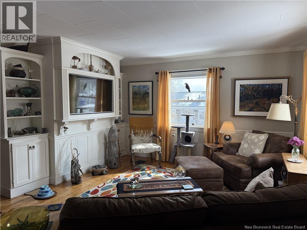 This charming cottage-like bungalow is nestled in the heart of St. Stephen in a residential neighbourhood, within walking distance to all amenities! Located on a newly paved street with brand new sidewalks, the home's curb appeal is attractive and inviting, with its matching red roof & shutters, the landscaped lot & white picket fence. Relax in matching gliding rockers on the front porch or on the rear deck overlooking the yard. Paved driveway, detached & insulated double car garage & shed for extra storage. The 2+1 bedroom home has been beautifully renovated in recent years with bright & modern changes by owners who have affectionately cared for the home. Refinished & new flooring, elegant lighting & many unique touches. Kitchen features attractive upper cabinets, built in appliances & special shelving for accessories & displays. Arched doorways lead to adjacent dining room & living room. This room is both comfy and cozy with its fresh colors, custom TV wall unit, shelves & cabinets. Enclosed front entry is welcoming, with closet & inner French door. Large built in cabinet in the hallway, could also be converted to space for stackable laundry. Two lovely bedrooms & full bath complete the main floor. Finished staircase to the basement, where you will find an additional room for a bedroom or den, laundry facilities, cold room & large storage area which can be re-purposed. Both levels heated with heats pumps & electric heat. Wonderful starter or retirement home! SEE VIDEO! (id:34572)