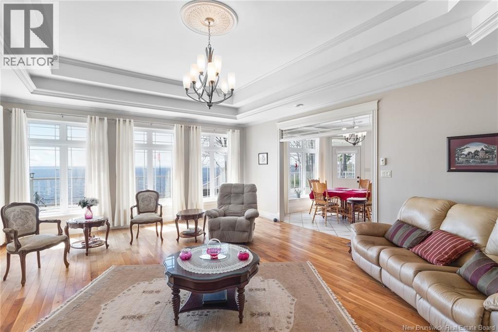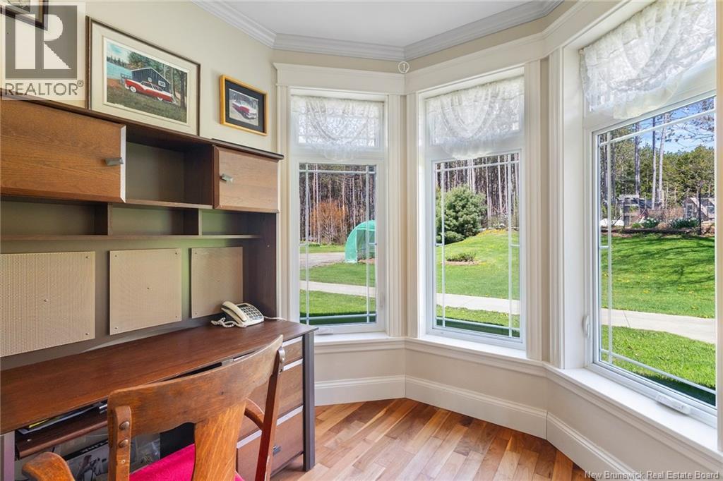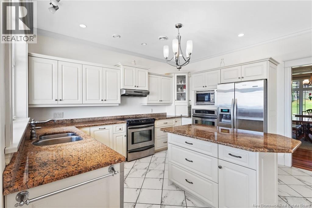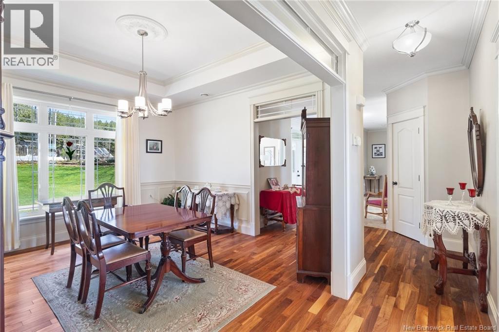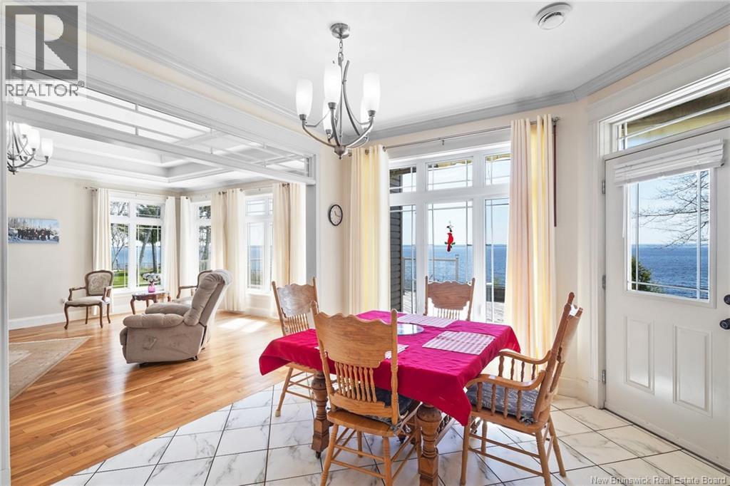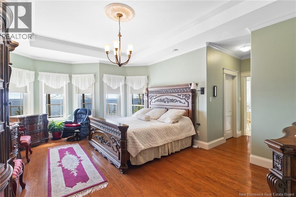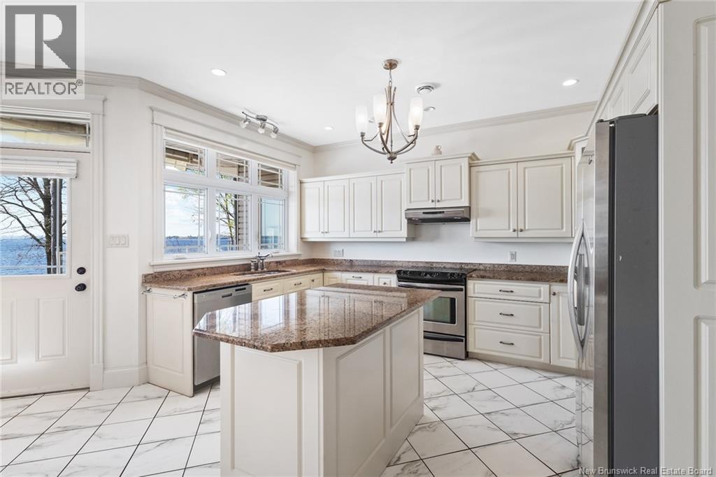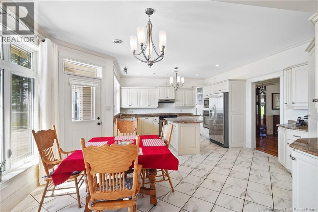 Welcome to The Pines, an extraordinary opportunity to own an executive-style home with panoramic views of Grand Lake. This property boasts 3 acres in one of New Brunswicks most desirable lakefront communities. Ownership includes membership to the exclusive 9-hole golf course and a boat slip at the private marina-the ultimate in luxury, leisure, and lifestyle. As you approach via the stately pine-lined driveway, the beauty of this property reveals itself. Step inside to soaring ceilings, expansive windows, and unobstructed water views from nearly every room. The heart of the home is a grand family room-ideal for gatherings-flanked by a chefs kitchen, formal dining room and grand foyer. Designed with comfort and functionality in mind, the home features a thoughtfully positioned office with garden views. The private master suite with a spa-like ensuite and lake views features his and hers closets. Additional bedrooms and a full bath are located on the opposite wing, ensuring space and privacy. A spacious laundry connects to the attached 3-bay garage, with new epoxy flooring. Outside, you'll find a detached garage with potential for a guest cottage conversion, as well as a clever underground storage unit for your golf cart and toys. For the green-thumbed, enjoy the mature garden featuring fruit bearing trees and perennial veggies. This property is set high and dry-safe from flooding. Whether you're seeking a year-round residence or a show stopping seasonal retreat, this is it. (id:34572)