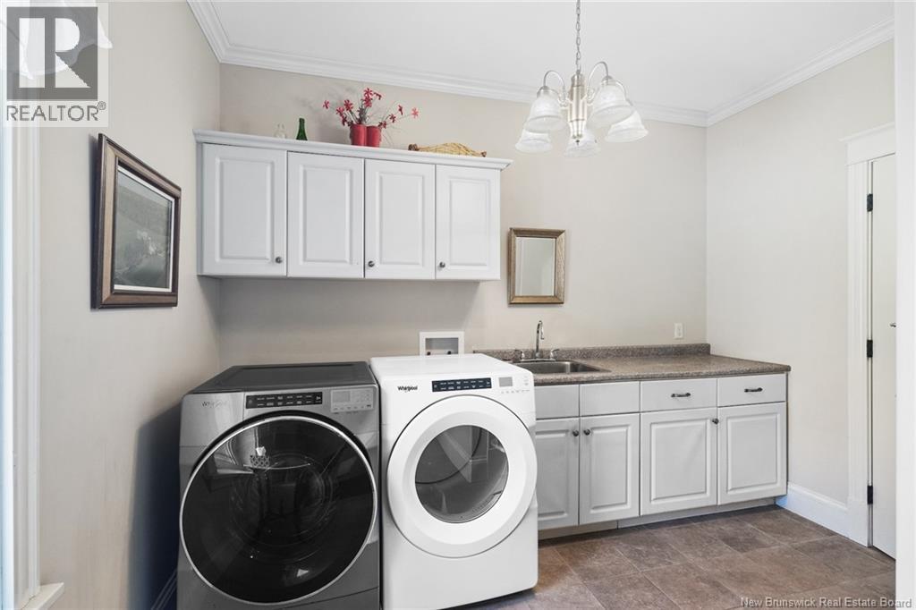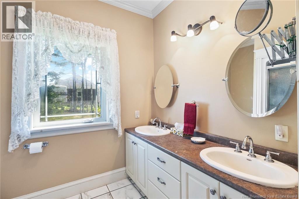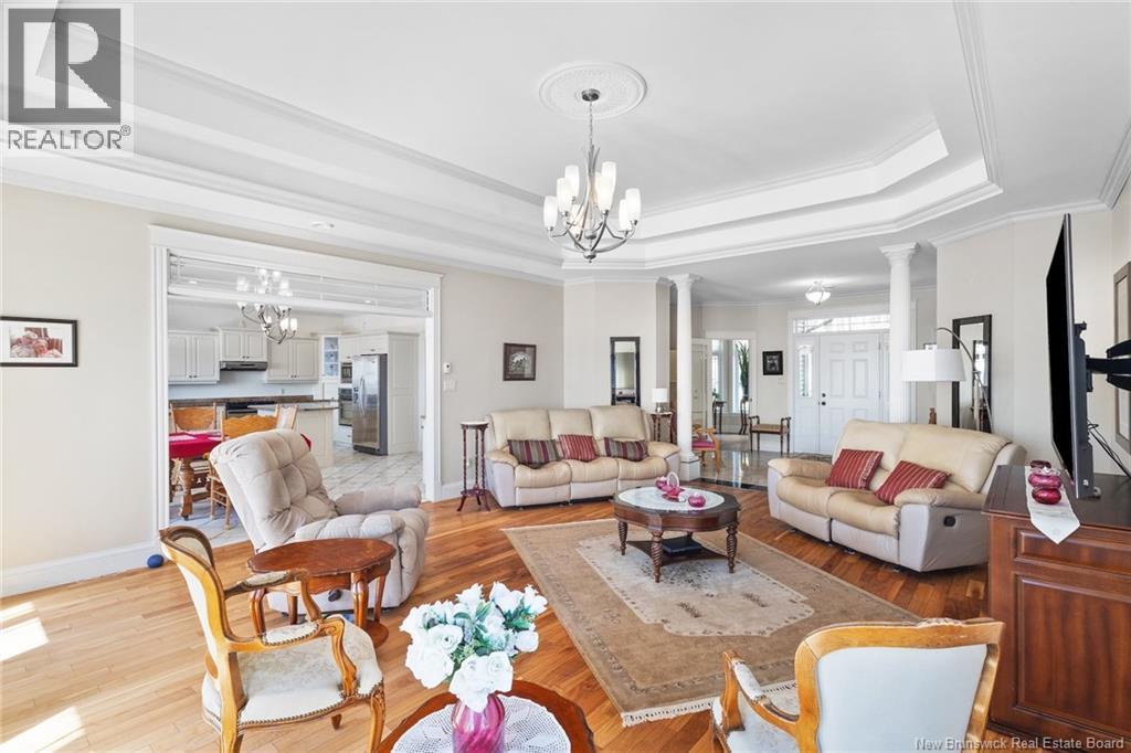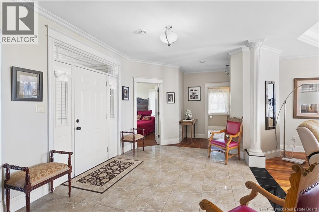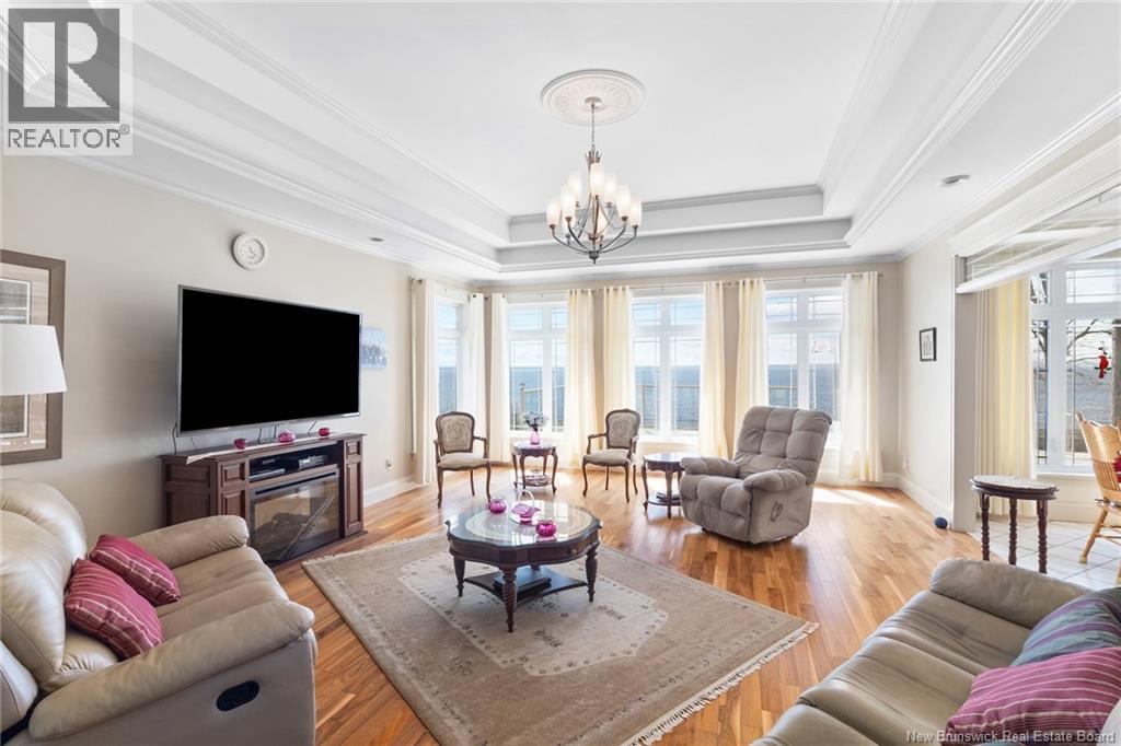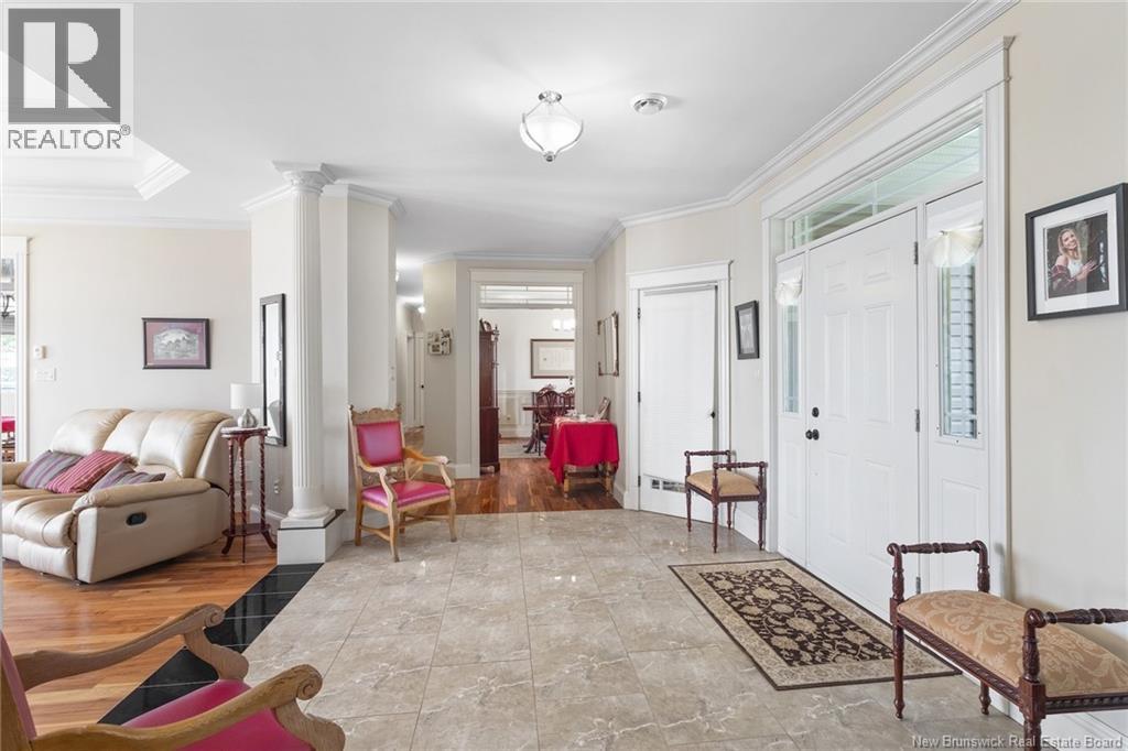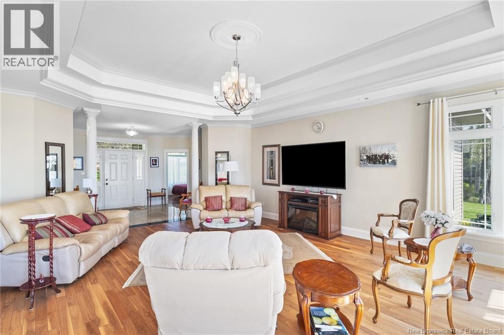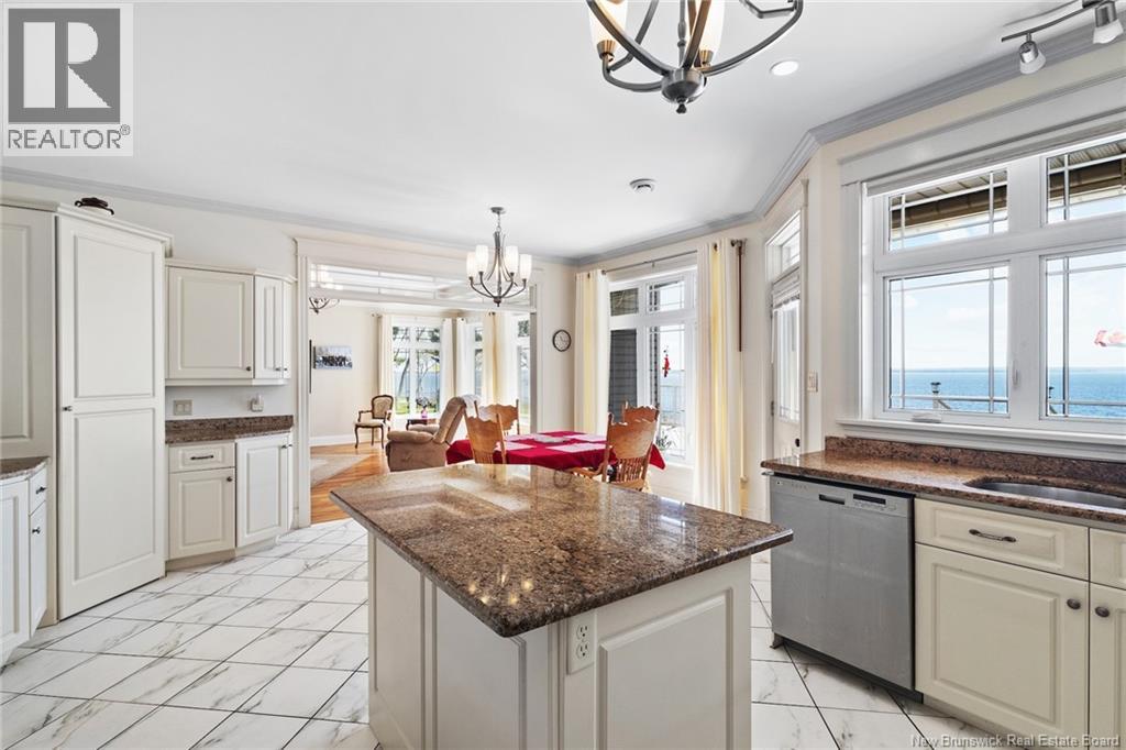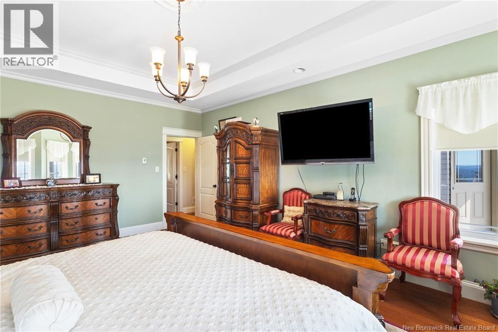 Welcome to The Pines, an extraordinary opportunity to own an executive-style home with panoramic views of Grand Lake. This property boasts 3 acres in one of New Brunswicks most desirable lakefront communities. Ownership includes membership to the exclusive 9-hole golf course and a boat slip at the private marina-the ultimate in luxury, leisure, and lifestyle. As you approach via the stately pine-lined driveway, the beauty of this property reveals itself. Step inside to soaring ceilings, expansive windows, and unobstructed water views from nearly every room. The heart of the home is a grand family room-ideal for gatherings-flanked by a chefs kitchen, formal dining room and grand foyer. Designed with comfort and functionality in mind, the home features a thoughtfully positioned office with garden views. The private master suite with a spa-like ensuite and lake views features his and hers closets. Additional bedrooms and a full bath are located on the opposite wing, ensuring space and privacy. A spacious laundry connects to the attached 3-bay garage, with new epoxy flooring. Outside, you'll find a detached garage with potential for a guest cottage conversion, as well as a clever underground storage unit for your golf cart and toys. For the green-thumbed, enjoy the mature garden featuring fruit bearing trees and perennial veggies. This property is set high and dry-safe from flooding. Whether you're seeking a year-round residence or a show stopping seasonal retreat, this is it. (id:34572)