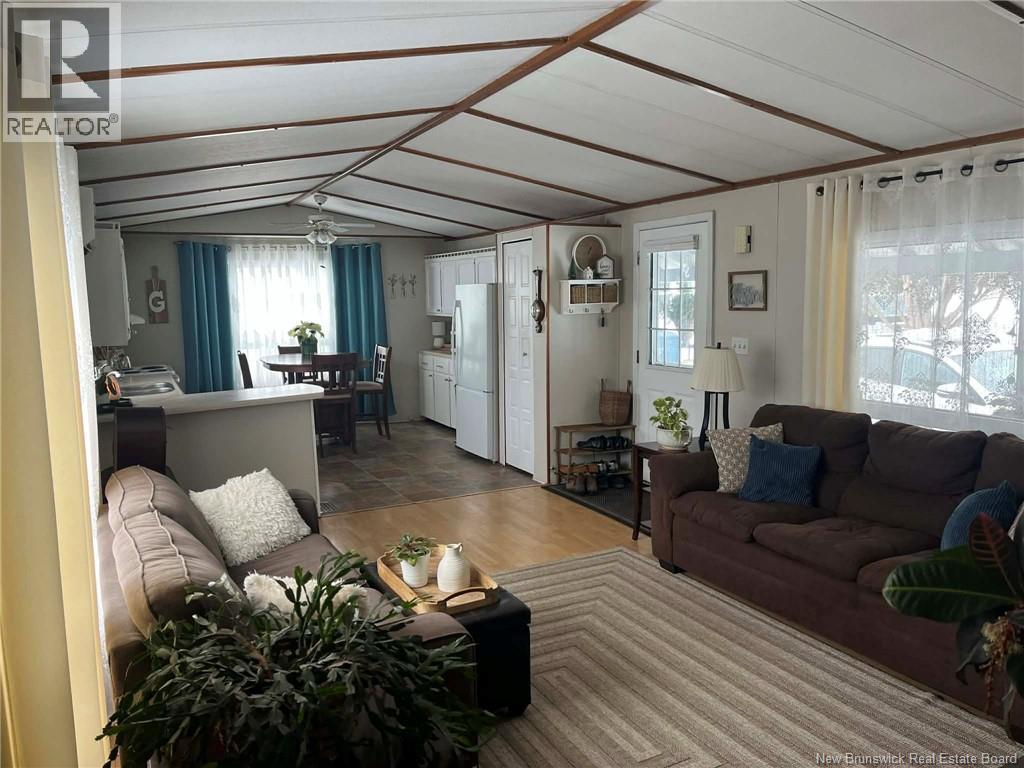 2 bedroom, one bath mini home located in the smaller Creek Park before the bridge in Sussex Corner where the lot rent is 250.00. This open concept kitchen and living room greets you as you come in the door. The eat in kitchen is on the front with loads of cabinets and counter top fir prep area. So much natural light envelopes this space and makes it very inviting. Going down the hall you have the 2nd bedroom first and then the primary is at the back of the mini home with a cheater door to the main bathroom. The enclosed deck makes for a great space to relax and enjoy the fresh air. Paying a mortgage on this property would be cheaper than renting. Buyer must be approved by park owner. (id:34572)