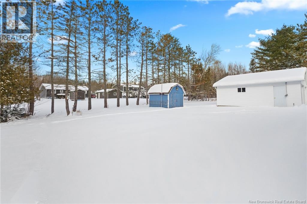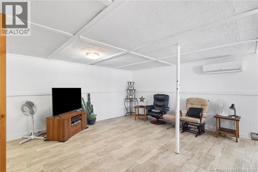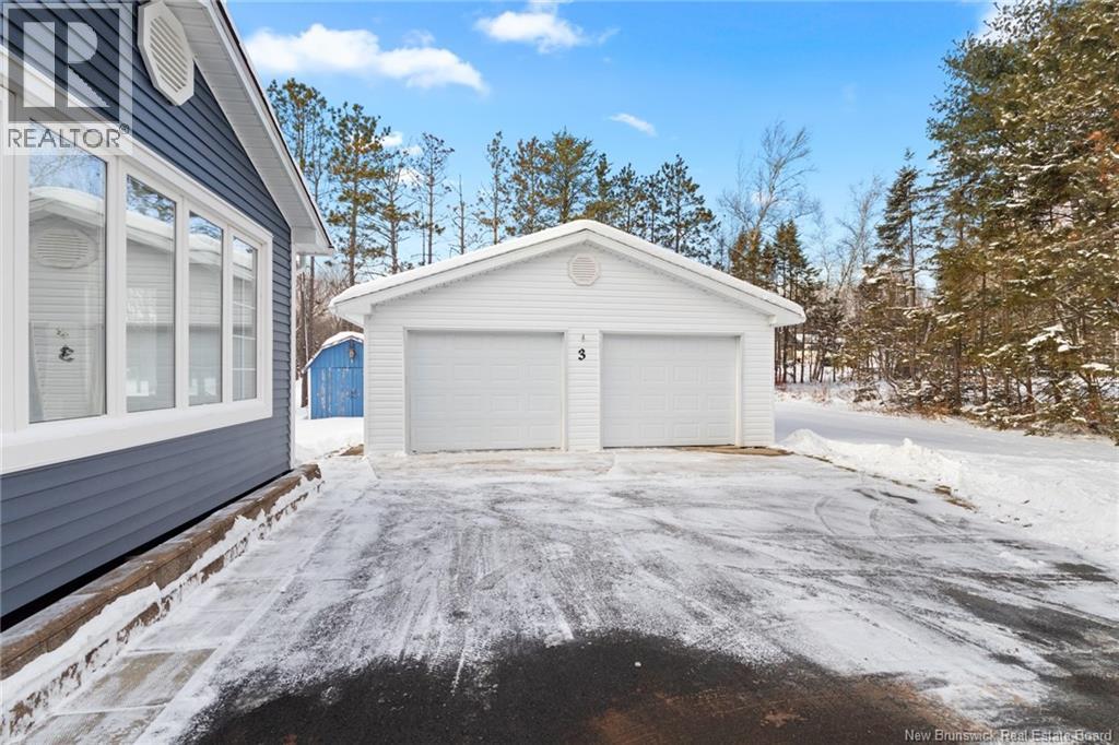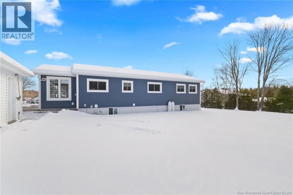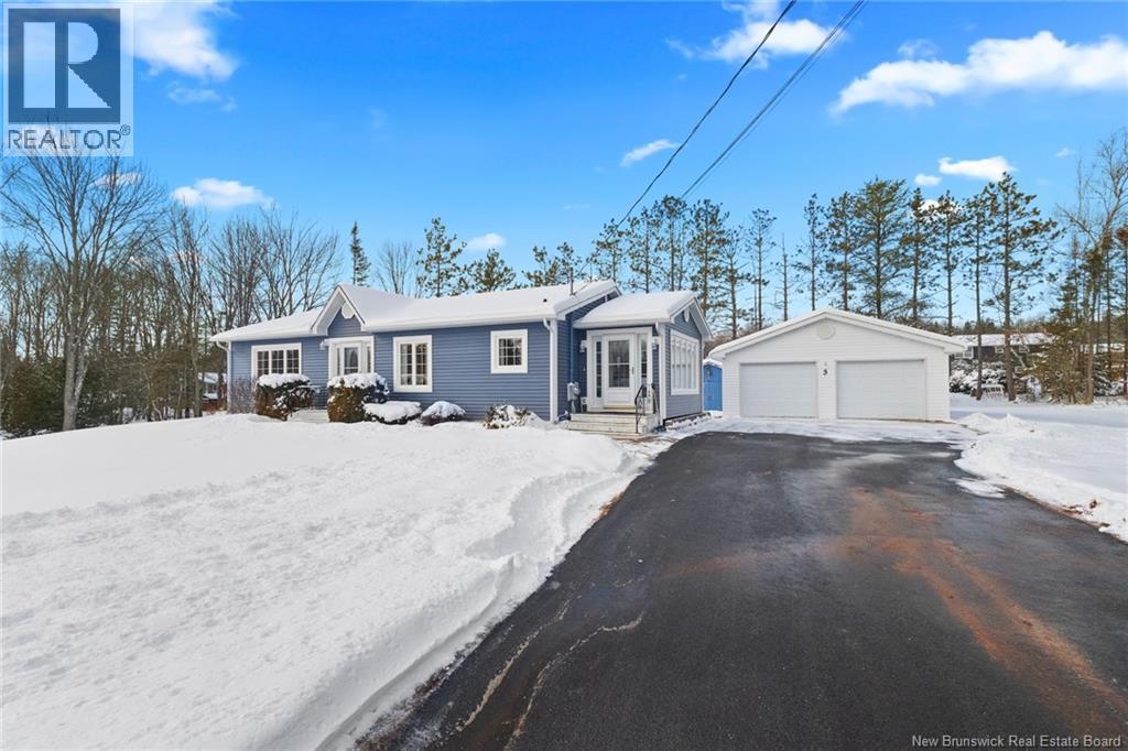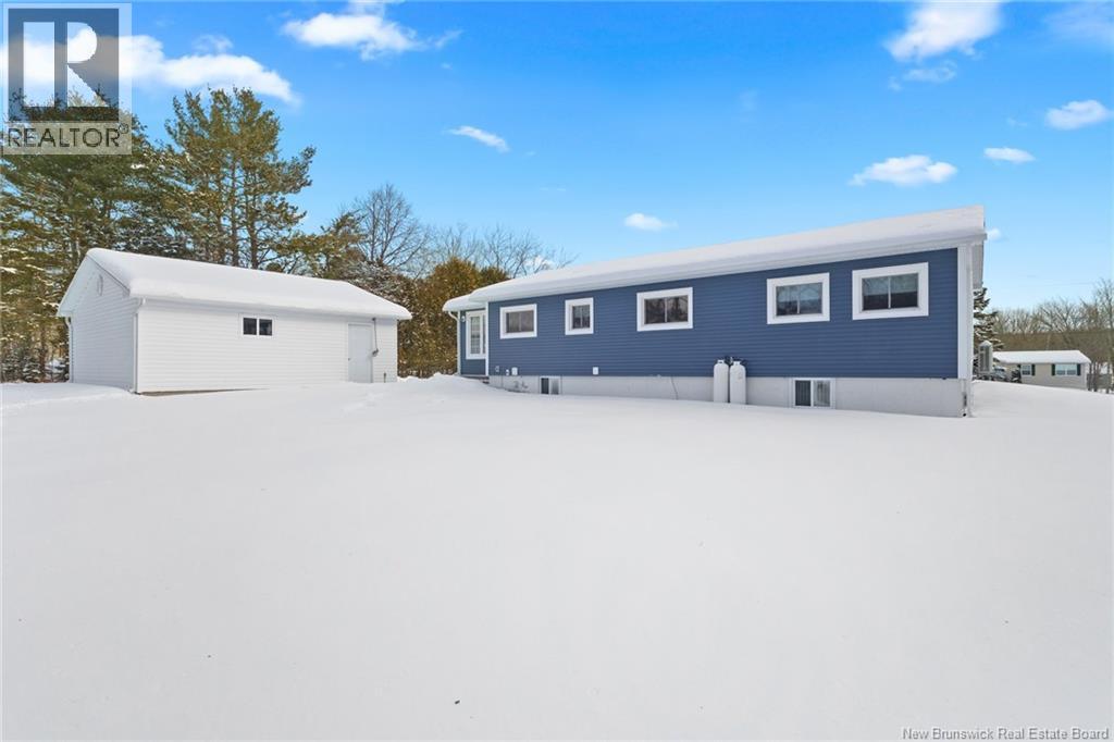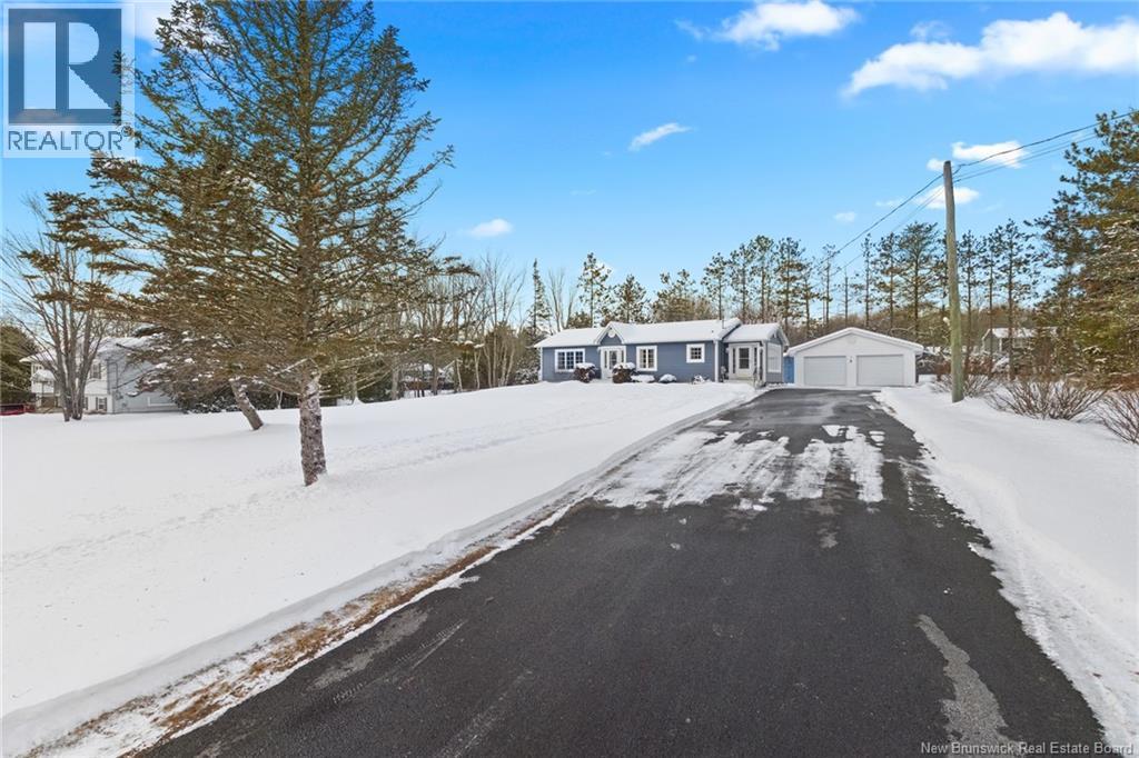 Welcome to this beautifully maintained 3-bedroom, 2-bath bungalow located in the sought-after Smith Subdivision on the edge of Oromocto. Set on a rare 1-acre lot, this property offers the unique benefit of a private well with municipal sewage. Pride of ownership is evident throughout, with the home having been meticulously cared for and thoughtfully updated with vinyl siding and windows. The main level features three bedrooms and a full bath, a bright eat-in kitchen with an abundance of beautiful cabinetry, and a welcoming living room with well-kept hardwood floors. A bonus sunroom with large windows provides a perfect space to relax and enjoy the surrounding property. The lower level offers a spacious family room with a cozy propane stove, a second full bathroom, a large laundry area complete with laundry tub and counter space, and plenty of storage. Additional highlights include a double detached garage, ductless heat pumps on both levels, central vacuum, water conditioner, generator panel, and ample storage throughout. A rare opportunity to own a move-in-ready home on a generous lot in a desirable location. (id:34572)