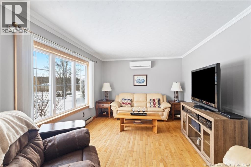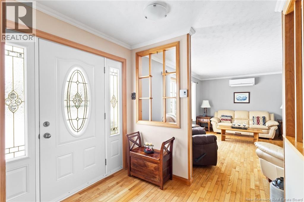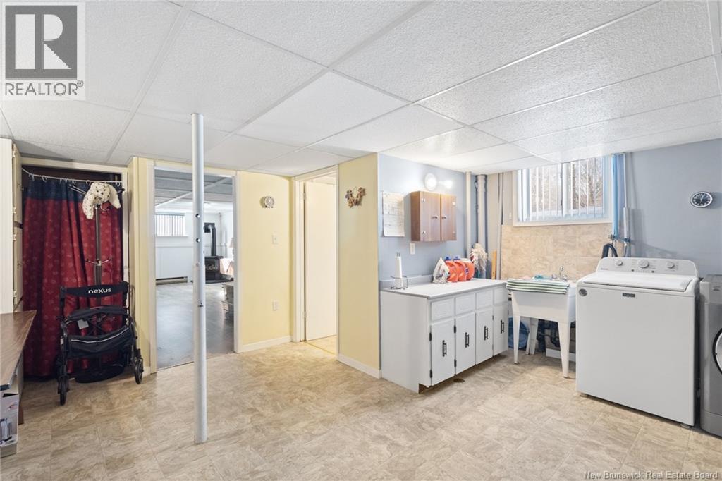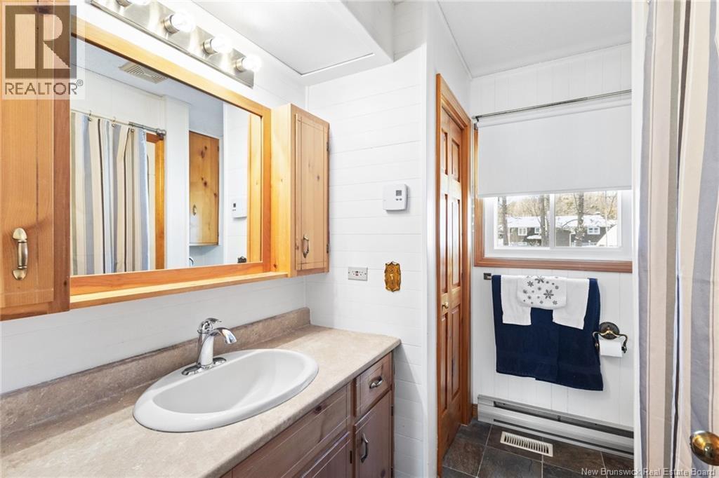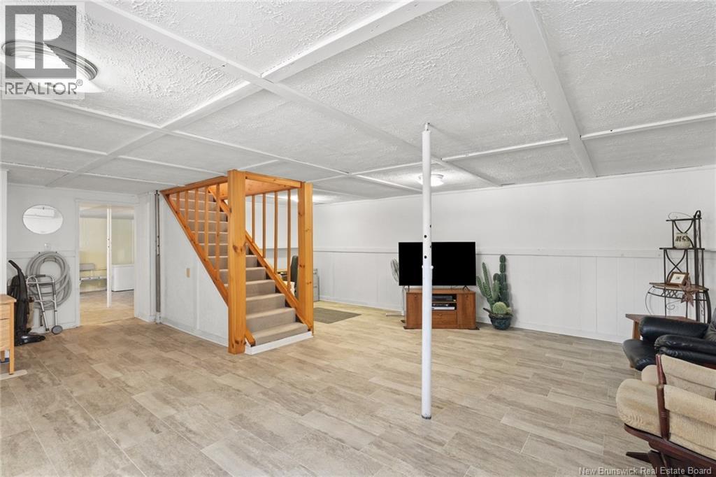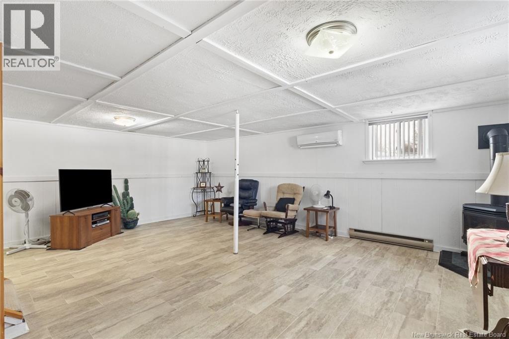 Welcome to this beautifully maintained 3-bedroom, 2-bath bungalow located in the sought-after Smith Subdivision on the edge of Oromocto. Set on a rare 1-acre lot, this property offers the unique benefit of a private well with municipal sewage. Pride of ownership is evident throughout, with the home having been meticulously cared for and thoughtfully updated with vinyl siding and windows. The main level features three bedrooms and a full bath, a bright eat-in kitchen with an abundance of beautiful cabinetry, and a welcoming living room with well-kept hardwood floors. A bonus sunroom with large windows provides a perfect space to relax and enjoy the surrounding property. The lower level offers a spacious family room with a cozy propane stove, a second full bathroom, a large laundry area complete with laundry tub and counter space, and plenty of storage. Additional highlights include a double detached garage, ductless heat pumps on both levels, central vacuum, water conditioner, generator panel, and ample storage throughout. A rare opportunity to own a move-in-ready home on a generous lot in a desirable location. (id:34572)