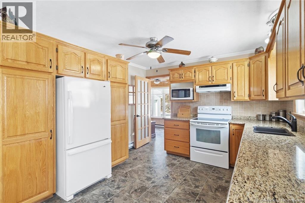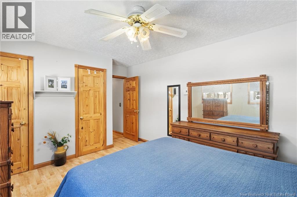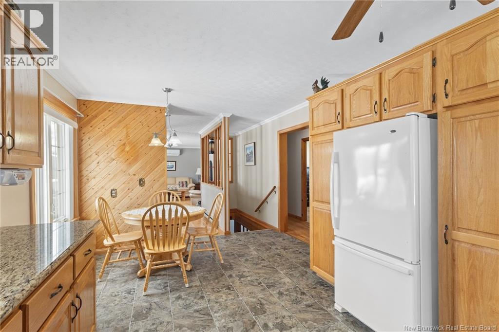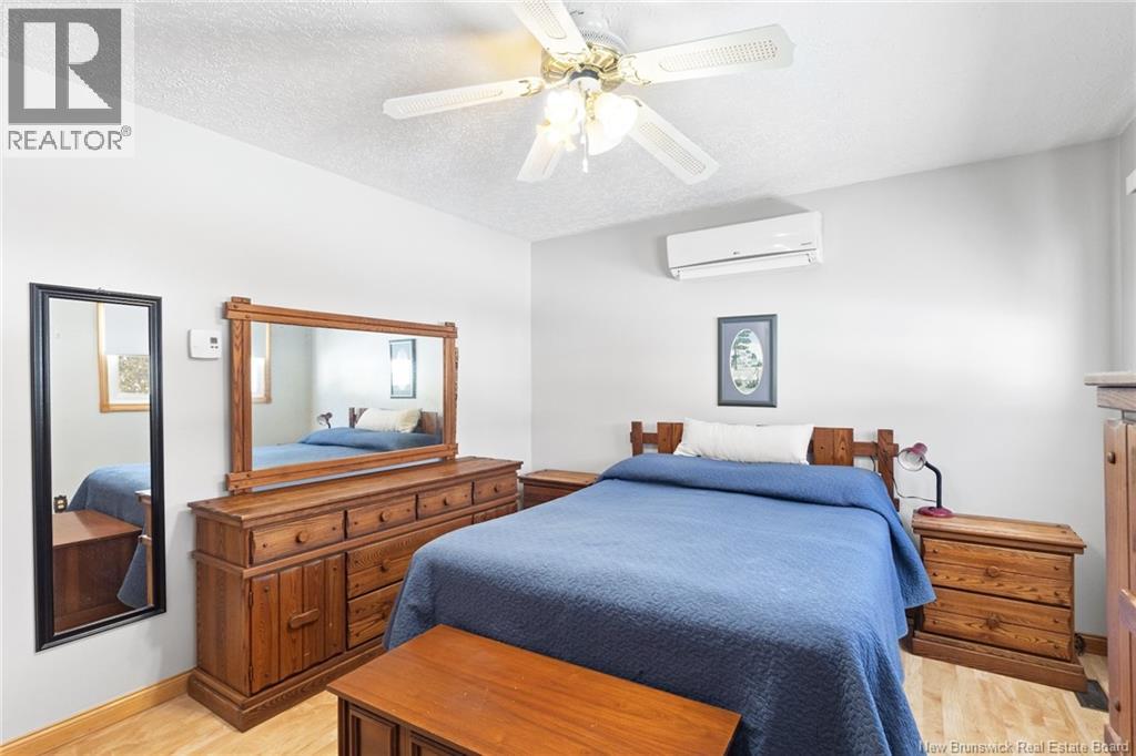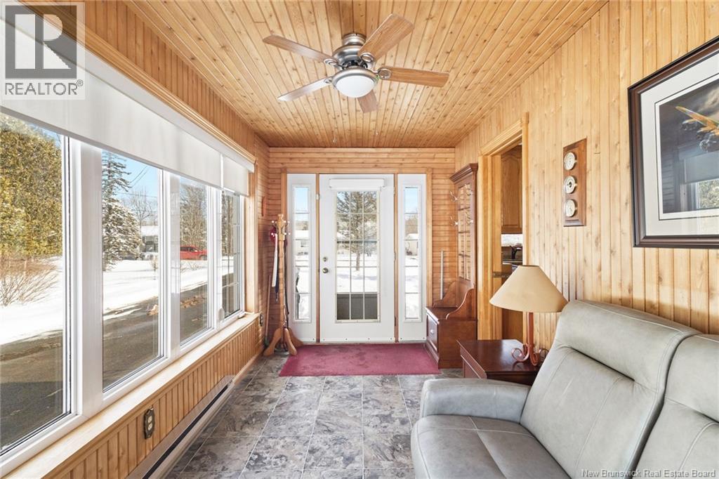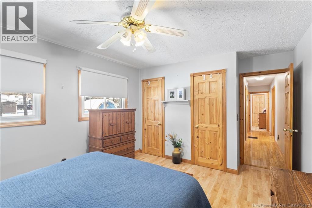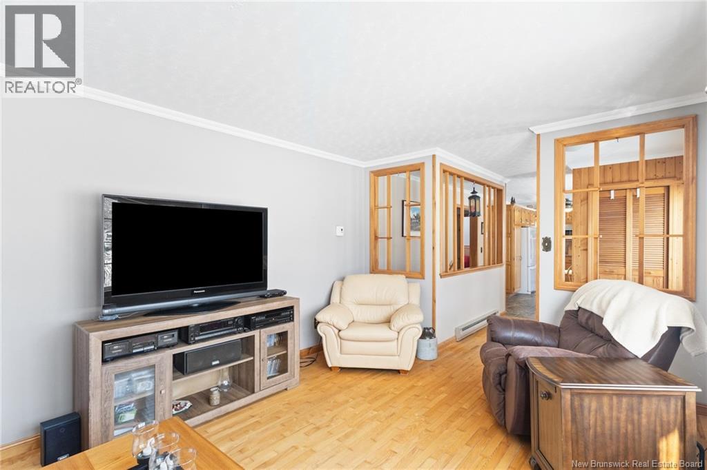 Welcome to this beautifully maintained 3-bedroom, 2-bath bungalow located in the sought-after Smith Subdivision on the edge of Oromocto. Set on a rare 1-acre lot, this property offers the unique benefit of a private well with municipal sewage. Pride of ownership is evident throughout, with the home having been meticulously cared for and thoughtfully updated with vinyl siding and windows. The main level features three bedrooms and a full bath, a bright eat-in kitchen with an abundance of beautiful cabinetry, and a welcoming living room with well-kept hardwood floors. A bonus sunroom with large windows provides a perfect space to relax and enjoy the surrounding property. The lower level offers a spacious family room with a cozy propane stove, a second full bathroom, a large laundry area complete with laundry tub and counter space, and plenty of storage. Additional highlights include a double detached garage, ductless heat pumps on both levels, central vacuum, water conditioner, generator panel, and ample storage throughout. A rare opportunity to own a move-in-ready home on a generous lot in a desirable location. (id:34572)