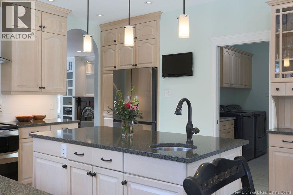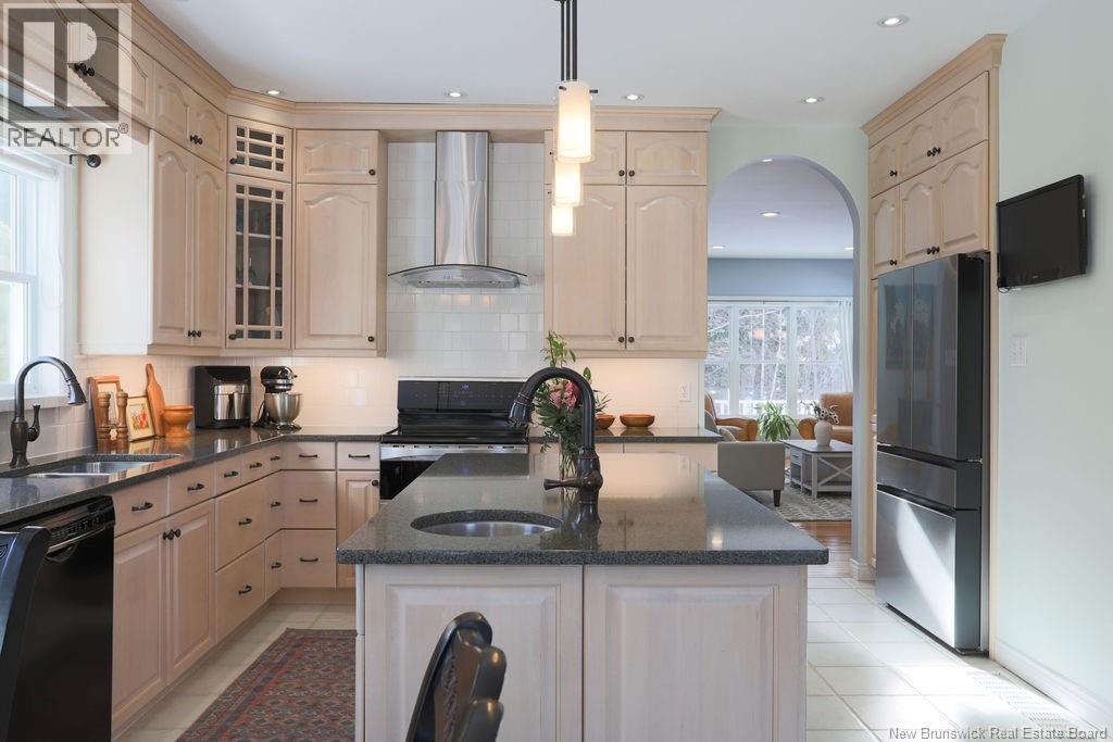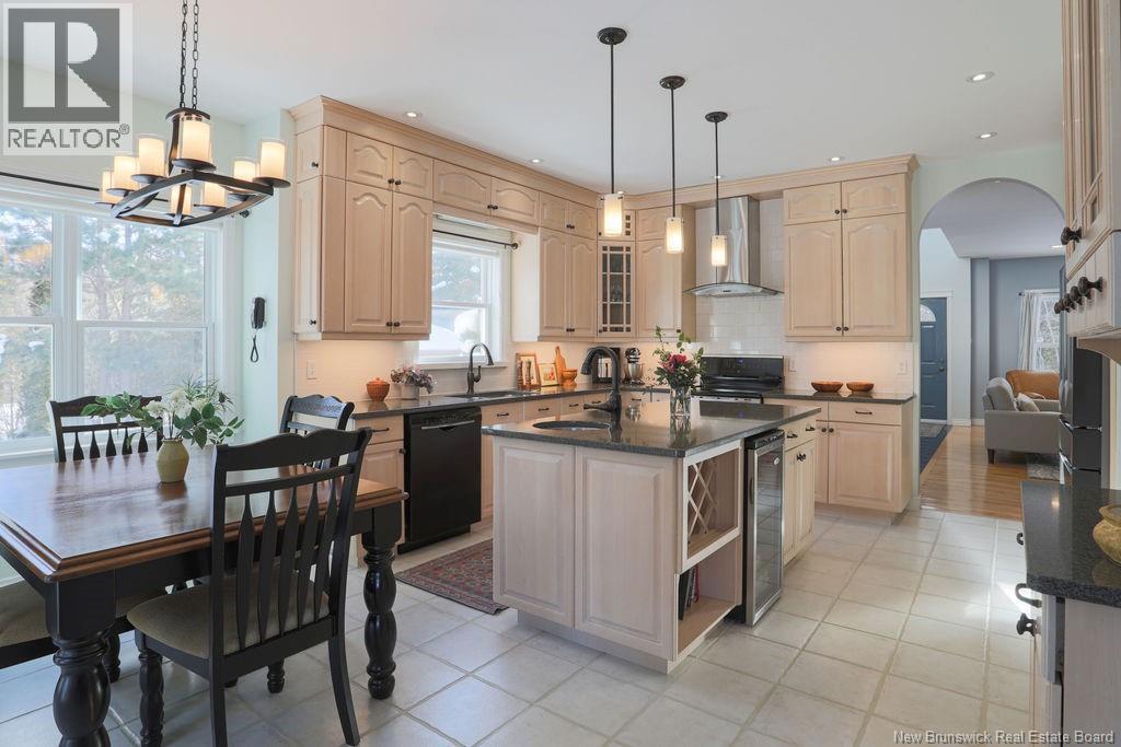 Immaculate hardly begins to describe this remarkable 2-storey central and private Rothesay home. Lovingly maintained by its original owner, the moment you step inside, theres an immediate sense of calm - everything is exactly where it should be. Approached via a winding, lane-like driveway unique to this area, the main level welcomes you with 9 ceilings, in-floor heat, and elegant arched entrances. Light fills the living and dining spaces, where custom built-ins frame everyday moments and special gatherings. The hearty family and TV room sits just off the kitchen, with generous built-ins and a thoughtfully integrated home office desk - perfect for movie nights, homework, or quiet workdays. The mudroom, tucked-off the garage, includes washer, dryer, and sink, making after-school and sports days seamless. Up the winding staircase are 3 inviting bedrooms, including a primary suite with a spacious ensuite featuring a deep soaker tub, separate shower, and private toilet room. The partially finished basement adds personality, including a raised dog bath for tidy furry family members. Ample natural light highlights the homes spotless condition and timeless finishes. Set in an outstanding Rothesay location, the home connects directly to Arthur Miller grass and turf fields, with a pickleball court, wine bar, café, several schools, and playgrounds just steps away. This one-owner home in a prized location is where the calm, comfort, and rhythms of daily life come together. (id:34572)
