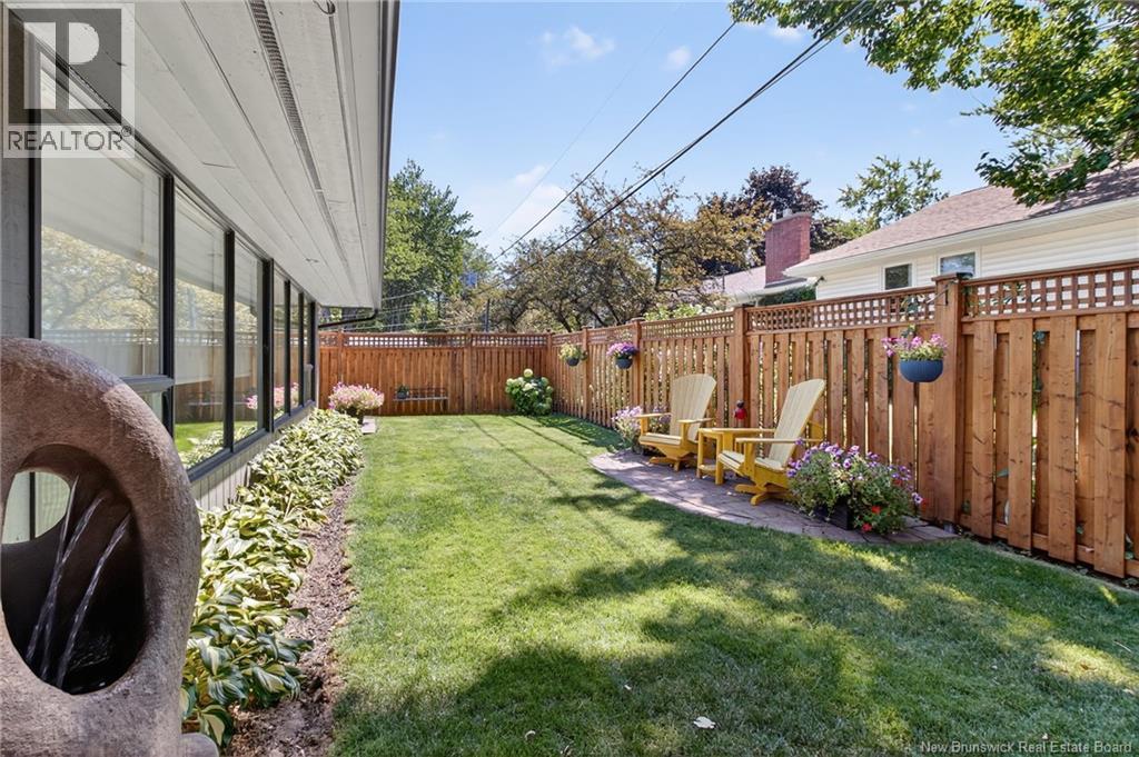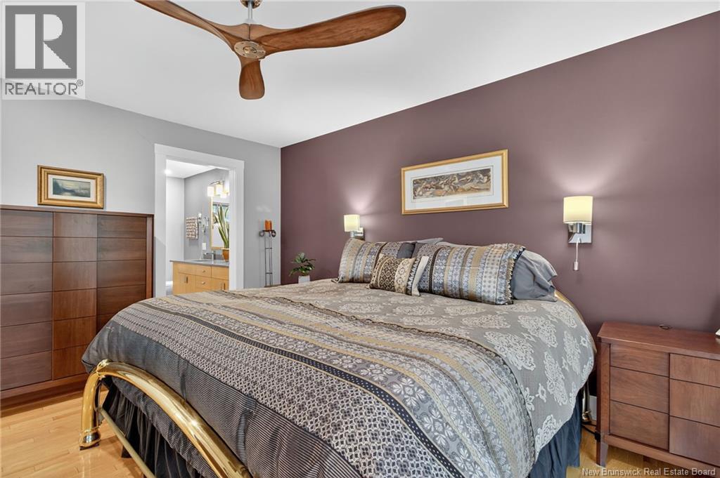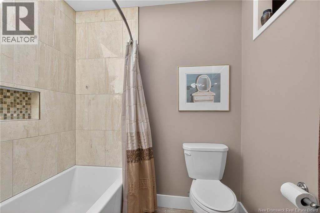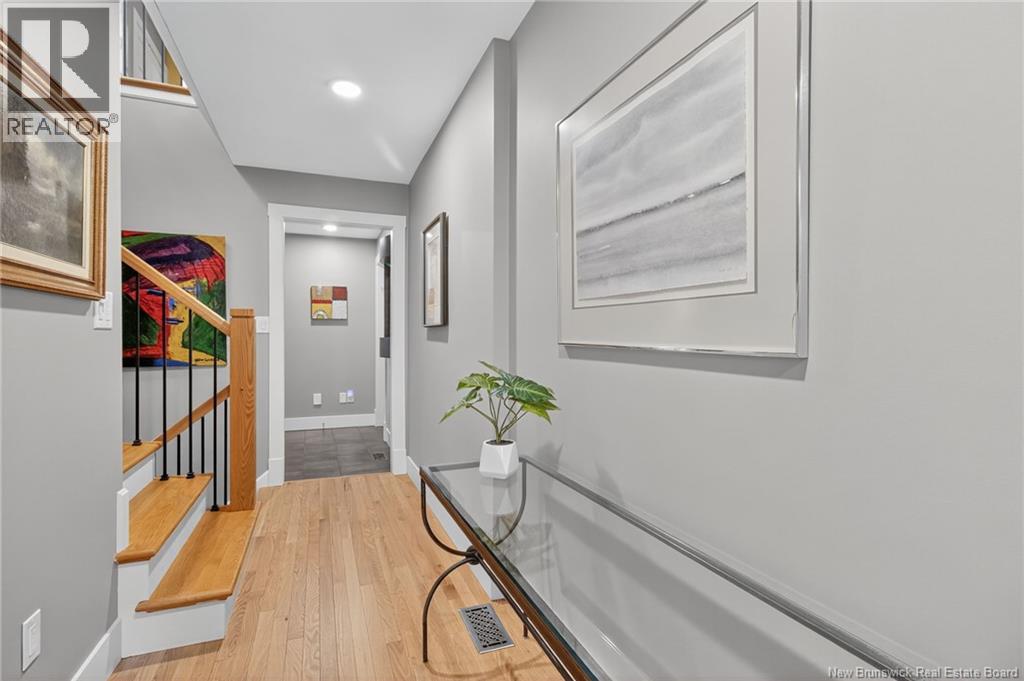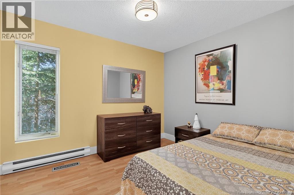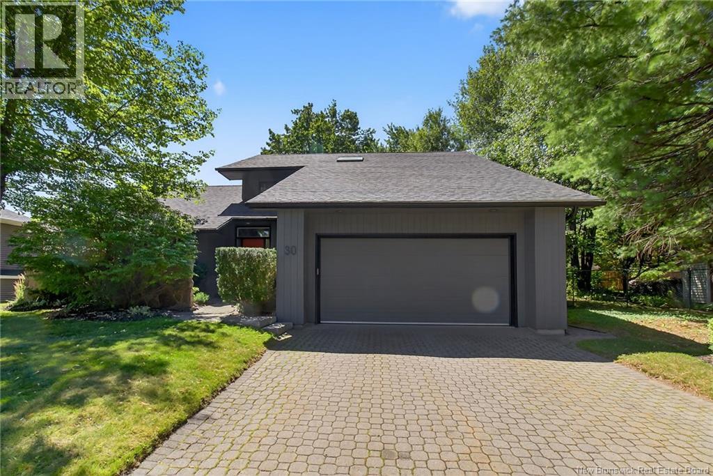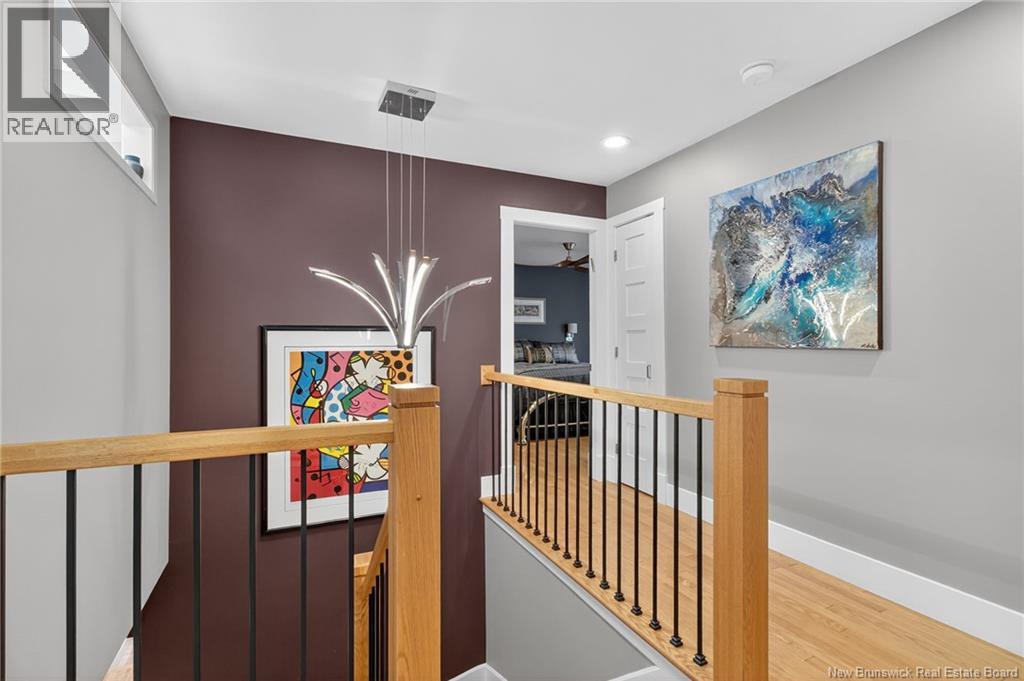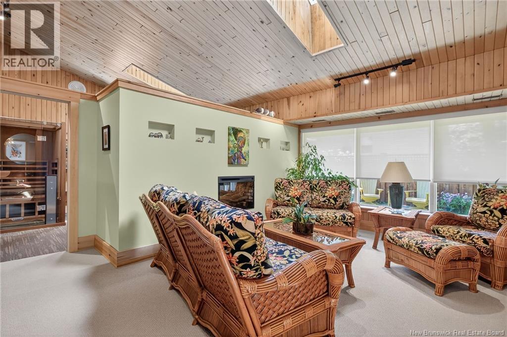 Welcome to this contemporary 3-bedroom home in Centennial Place, blending modern comfort with natural surroundings. Mature trees & lush perennials add to its great curb appeal. Step inside to a spacious, inviting foyer. When entering the sunken living room, the natural light flowing in, the striking stone wood-burning fireplace & vaulted pine ceiling set the tone for warmth & character. Pocket doors lead to a private den/office with optional patio access to a stone terrace, ideal for quiet moments. The kitchen is both stylish & functional, featuring two-tone cabinetry, quartz counters, centre island, built-in appliances, including a trash compactor, pantry & oversized patio doors leading to a stylish, private deck. A bright sunroom offers panoramic views of the backyard oasis. Fitness room, dining room, 2pc bath & laundry complete the main level. Upstairs, the primary suite features a 5pc ensuite with soaker tub, rain shower - plus a spacious walk-in closet. 2 additional bedrooms share a 4pc family bath. The finished lower level extends your living space with a large family room, hobby room & storage. Additional highlights include central air, central & convenient location - being only 5 min from downtown, Riverview, Trinity Shopping & highways. Heated floors in kitchen & ensuite bath & central vac. A true blend of style, comfort & privacy in one of Monctons most sought-after neighbourhoods. Don't delay, schedule your private showing today. (id:34572)
