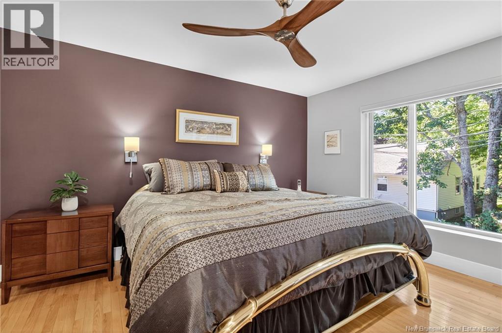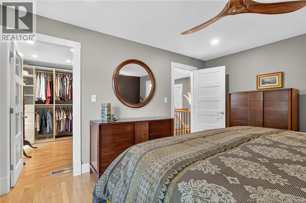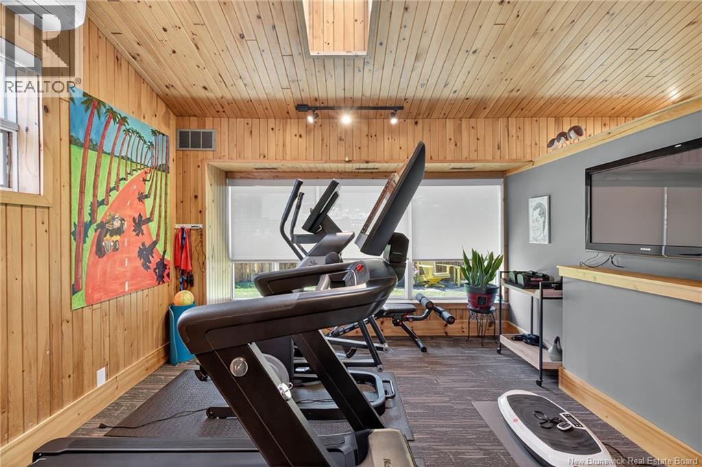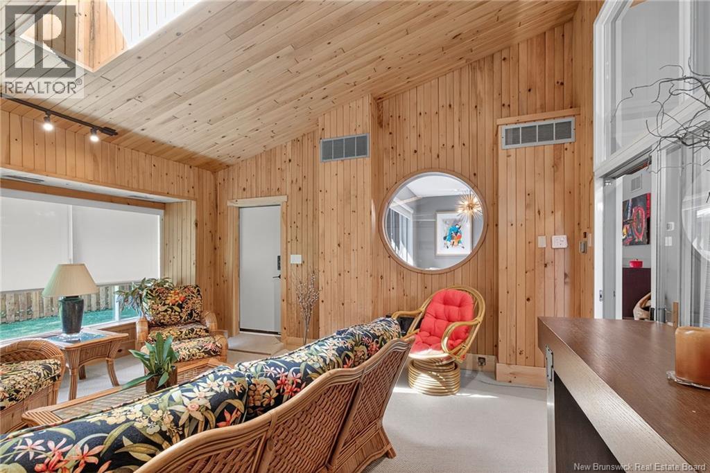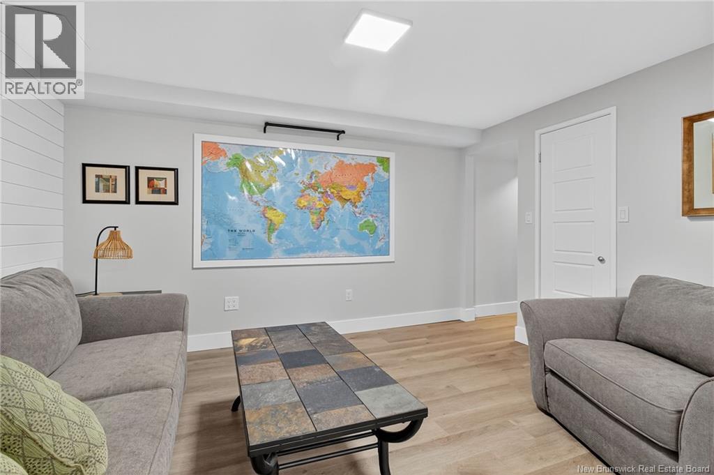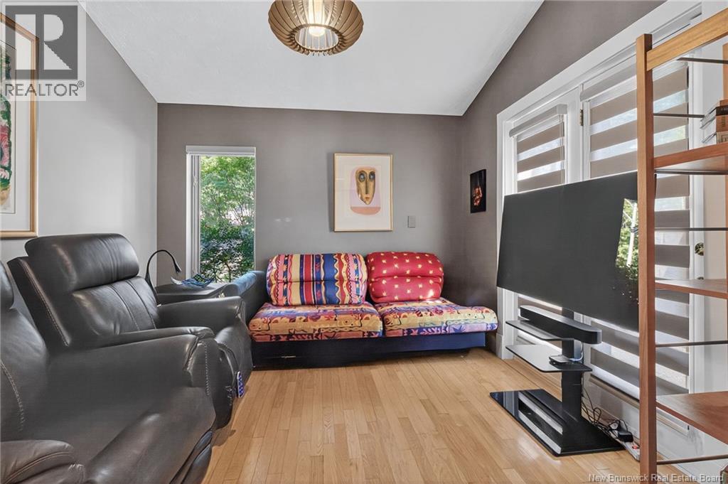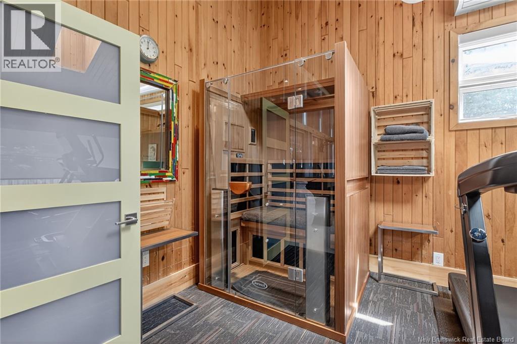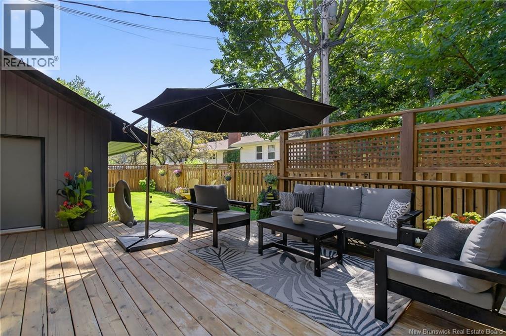 Welcome to this contemporary 3-bedroom home in Centennial Place, blending modern comfort with natural surroundings. Mature trees & lush perennials add to its great curb appeal. Step inside to a spacious, inviting foyer. When entering the sunken living room, the natural light flowing in, the striking stone wood-burning fireplace & vaulted pine ceiling set the tone for warmth & character. Pocket doors lead to a private den/office with optional patio access to a stone terrace, ideal for quiet moments. The kitchen is both stylish & functional, featuring two-tone cabinetry, quartz counters, centre island, built-in appliances, including a trash compactor, pantry & oversized patio doors leading to a stylish, private deck. A bright sunroom offers panoramic views of the backyard oasis. Fitness room, dining room, 2pc bath & laundry complete the main level. Upstairs, the primary suite features a 5pc ensuite with soaker tub, rain shower - plus a spacious walk-in closet. 2 additional bedrooms share a 4pc family bath. The finished lower level extends your living space with a large family room, hobby room & storage. Additional highlights include central air, central & convenient location - being only 5 min from downtown, Riverview, Trinity Shopping & highways. Heated floors in kitchen & ensuite bath & central vac. A true blend of style, comfort & privacy in one of Monctons most sought-after neighbourhoods. Don't delay, schedule your private showing today. (id:34572)
