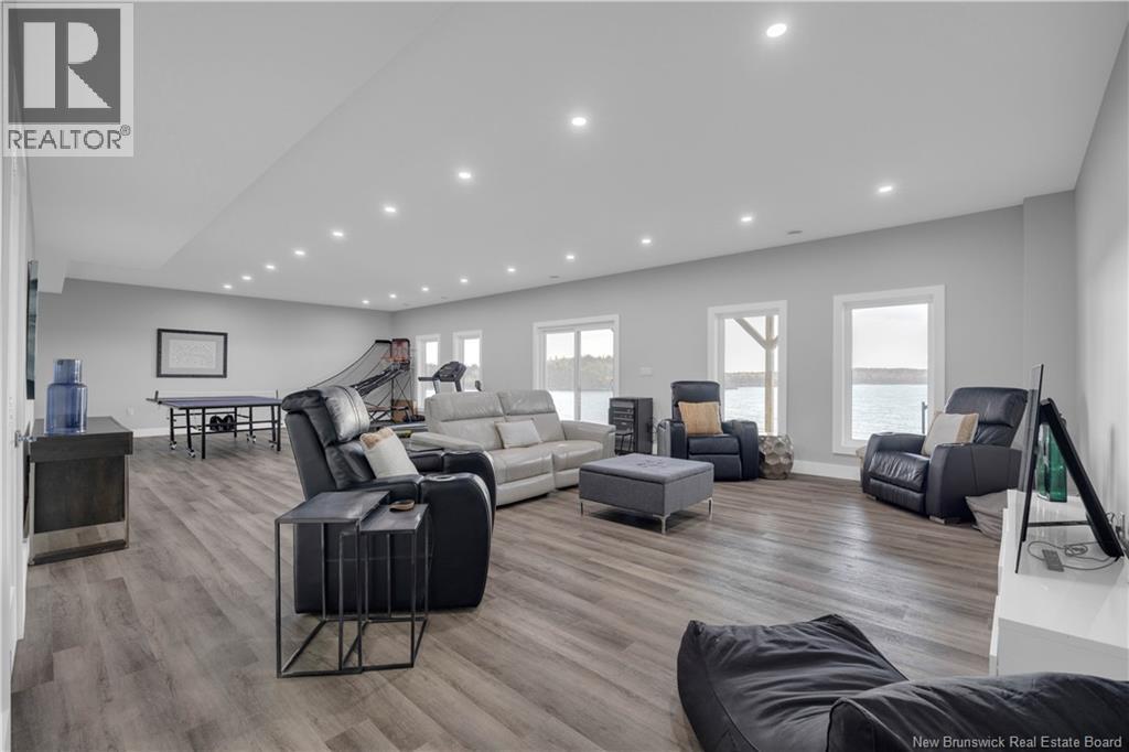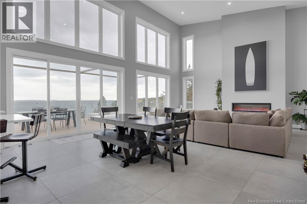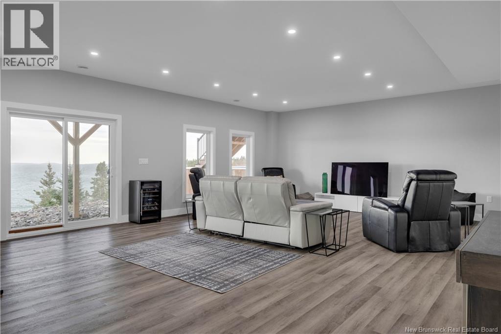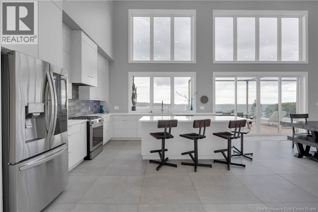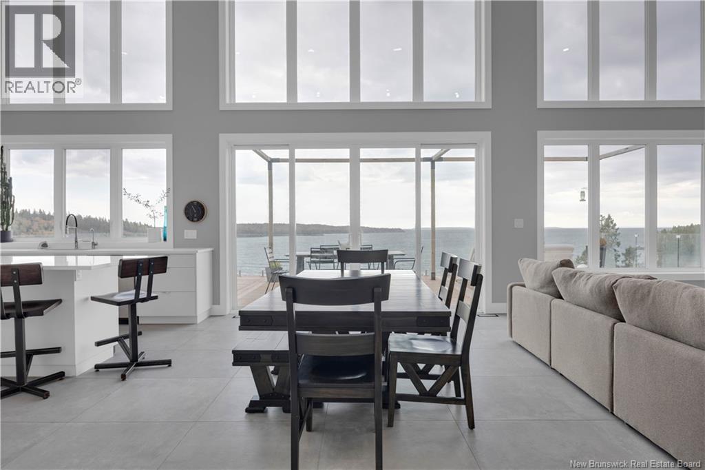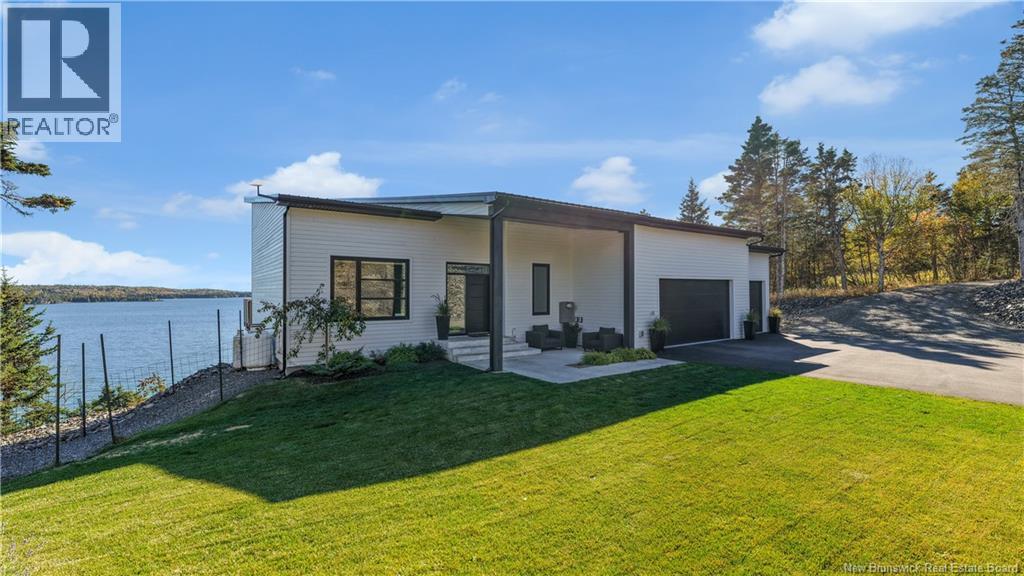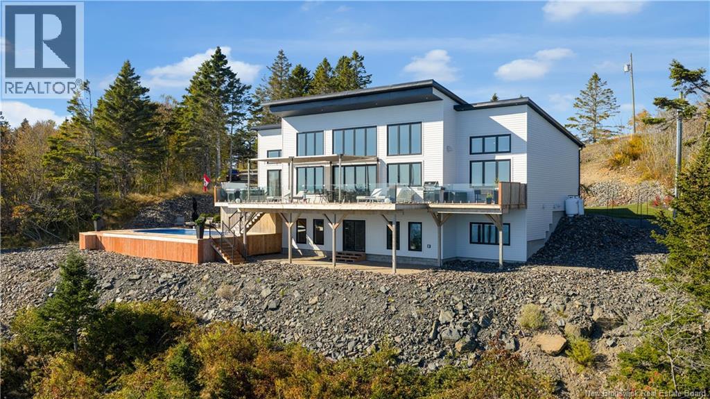 Experience luxury coastal living in this stunning oceanfront executive bungalow set on 5.75 acres of breathtaking shoreline. Step through the foyer into a bright, open-concept living space featuring cathedral ceilings and two stories of windows framing panoramic ocean views. The sleek white kitchen with a large island flows seamlessly into the dining area and living room, perfect for entertaining. The primary suite offers a spa-inspired ensuite and walk-in closet, while two additional bedrooms, including one with a unique loft space, a family bathroom, and main-level laundry complete the main floor. The walkout basement expands your living space with a huge family room, fourth bedroom, third full bathroom, two versatile bonus rooms ideal for an office or studio, and generous storage. On the expansive back deck enjoy watching whales, porpoise, seals, and bald eagles as you take in the ever-changing coastal scenery. A 2+ car attached completes this extraordinary oceanfront retreat. Located in the picturesque coastal community of Beaver Harbour, NB, this home offers the perfect blend of tranquility, natural beauty, and convenient access to nearby amenities and coastal attractions. (id:34572)